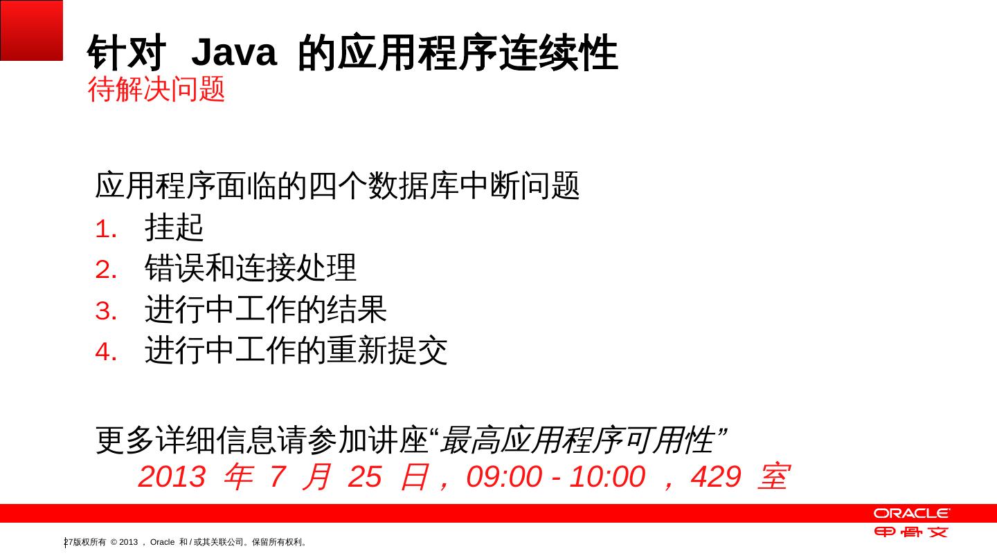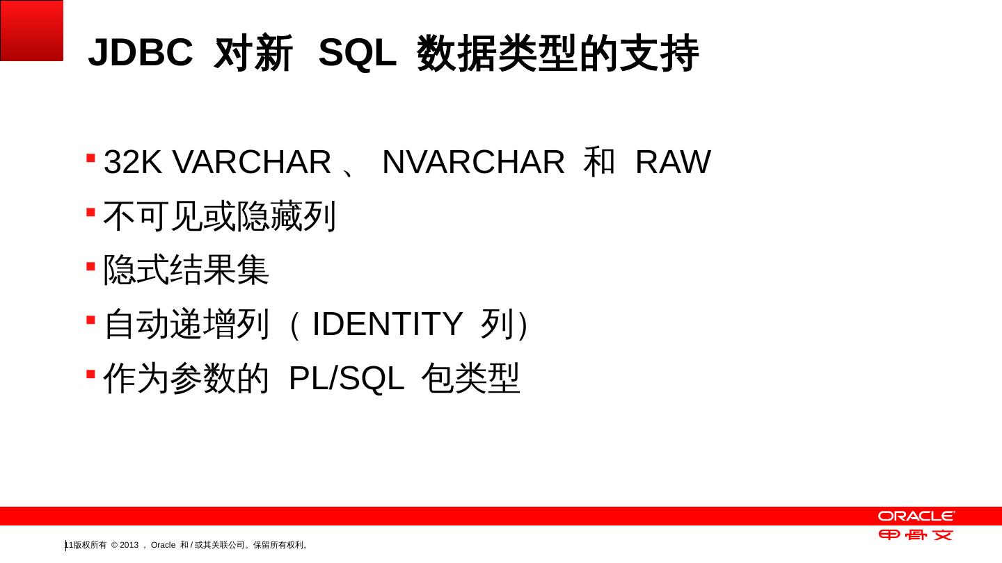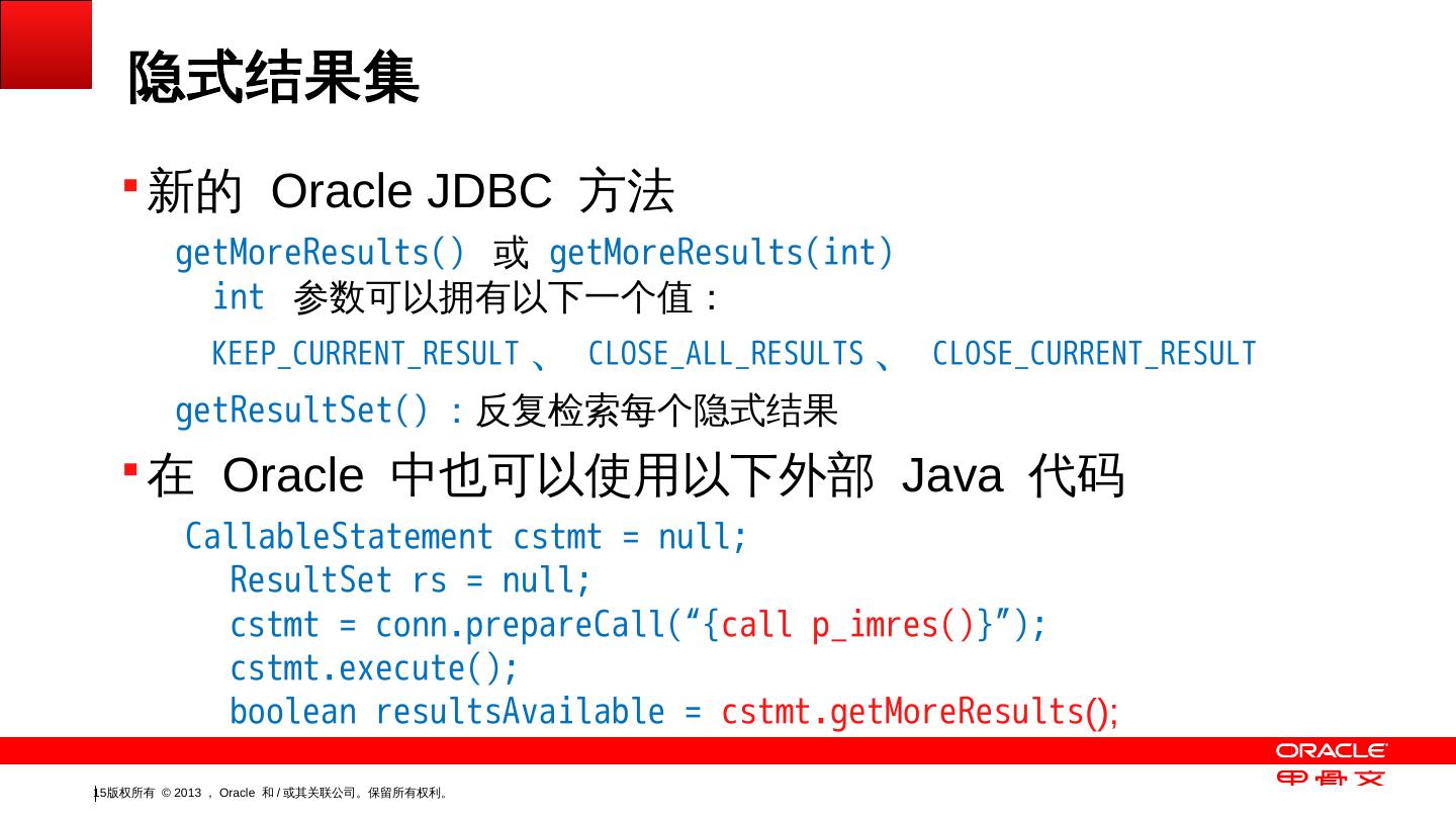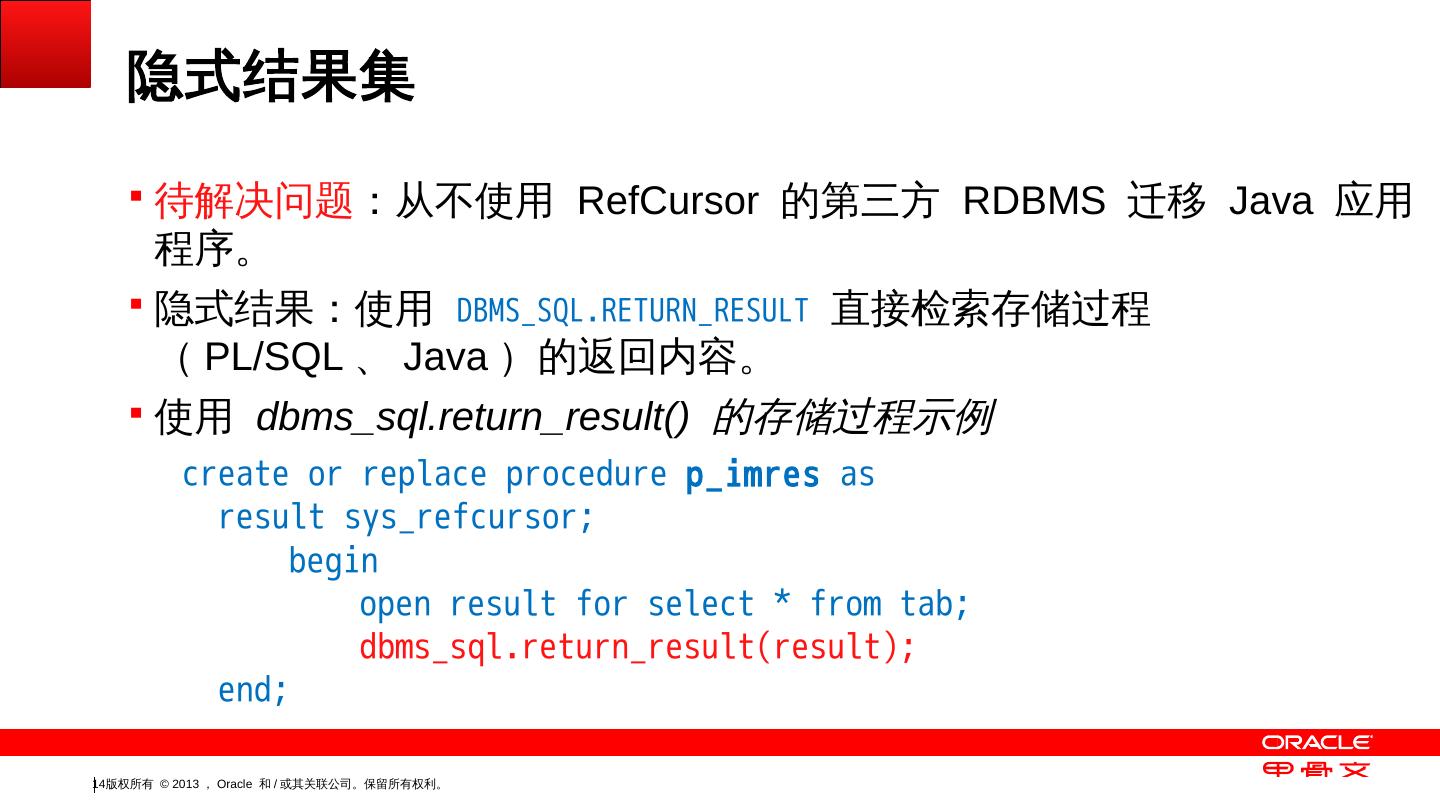 此处所述有关Oracle 产品的任何特性或功能的开发、发布以及相应的演讲议题均 .... 待解决问题:在不创建PLSQL 包装器的情况下以Java 数组形式访问PL/SQL 类型 ...