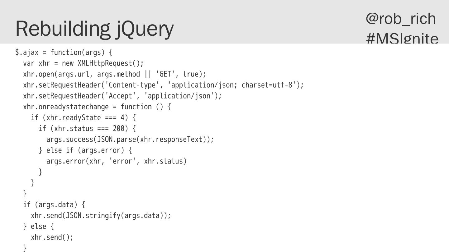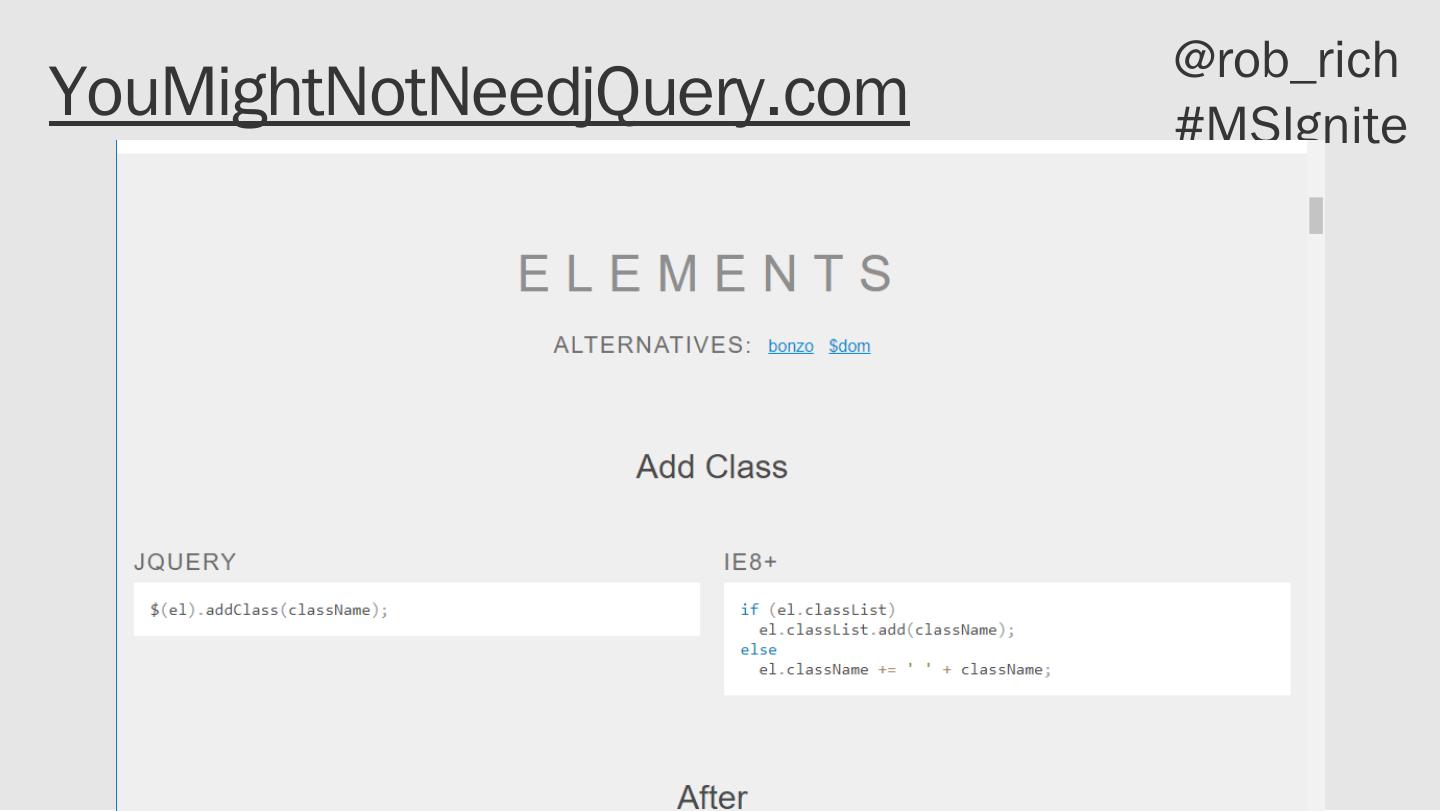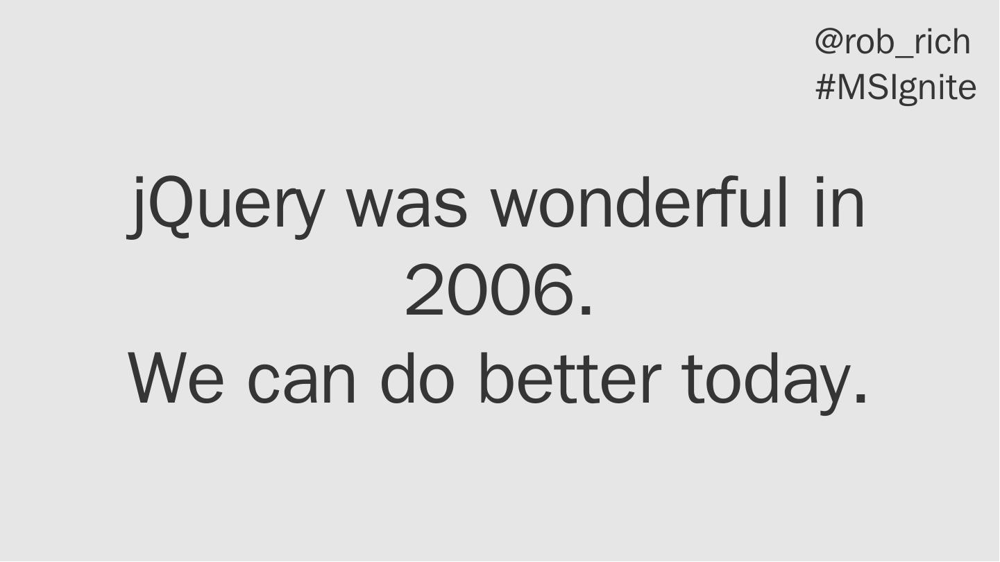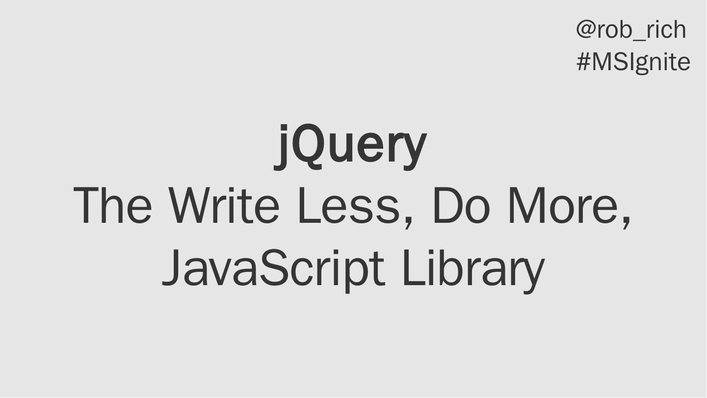 @rob_rich. #MSIgnite. Post jQuery. Rob Richardson. https://robrich.org/. @rob_rich. @rob_rich. #MSIgnite. About Rob Richardson. @rob_rich. #MSIgnite. jQuery