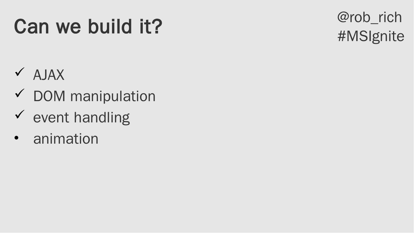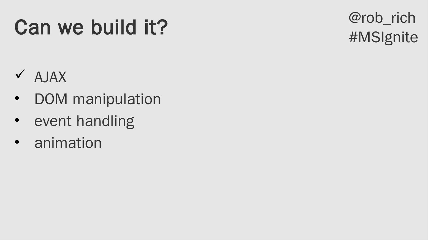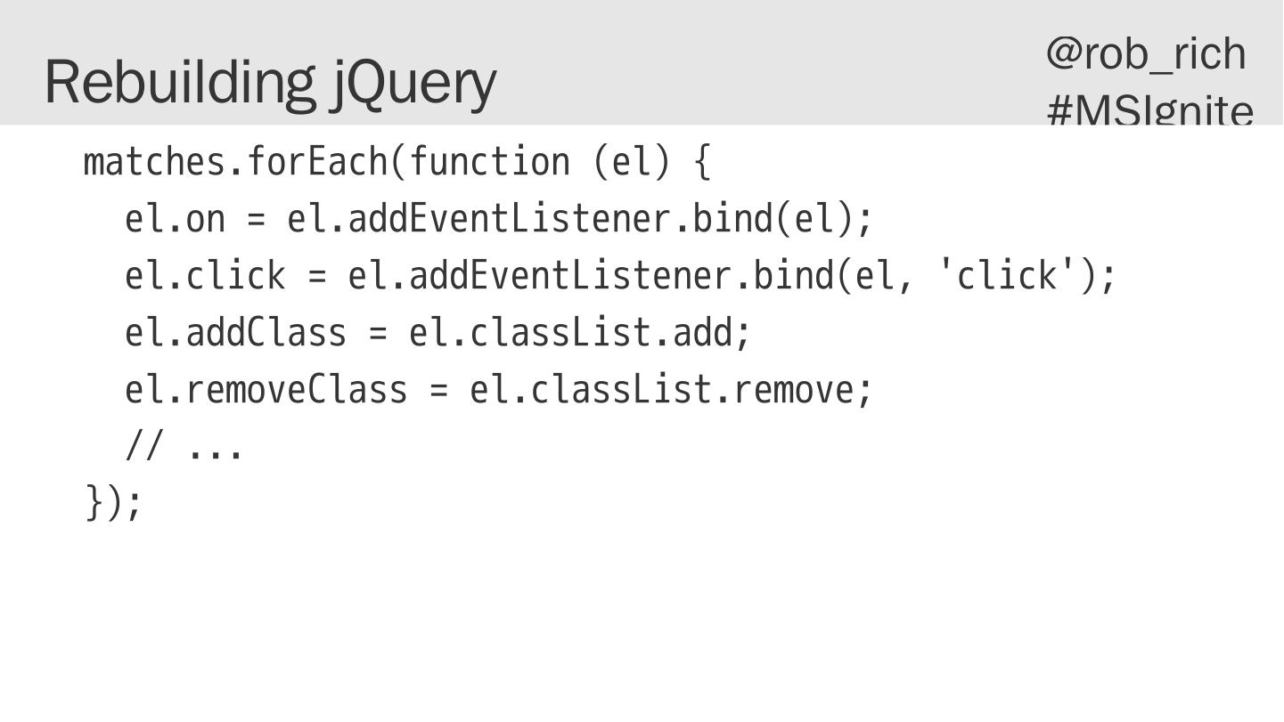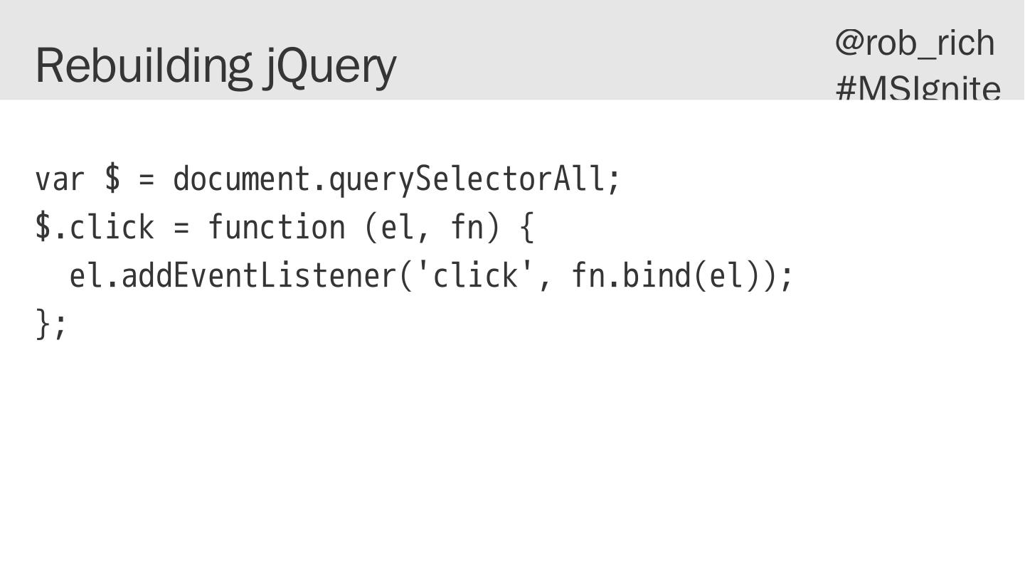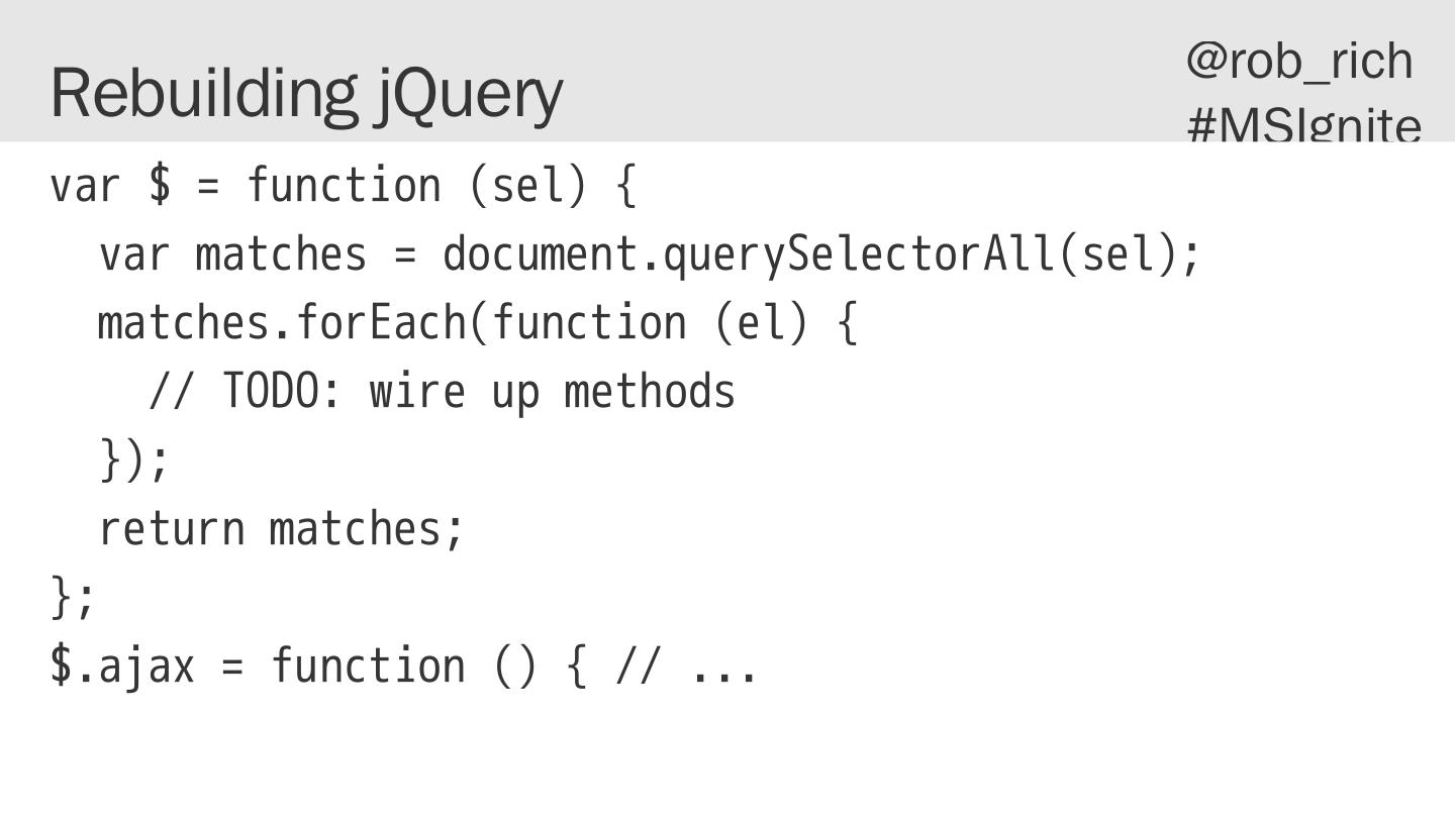 @rob_rich. #MSIgnite. Post jQuery. Rob Richardson. https://robrich.org/. @rob_rich. @rob_rich. #MSIgnite. About Rob Richardson. @rob_rich. #MSIgnite. jQuery