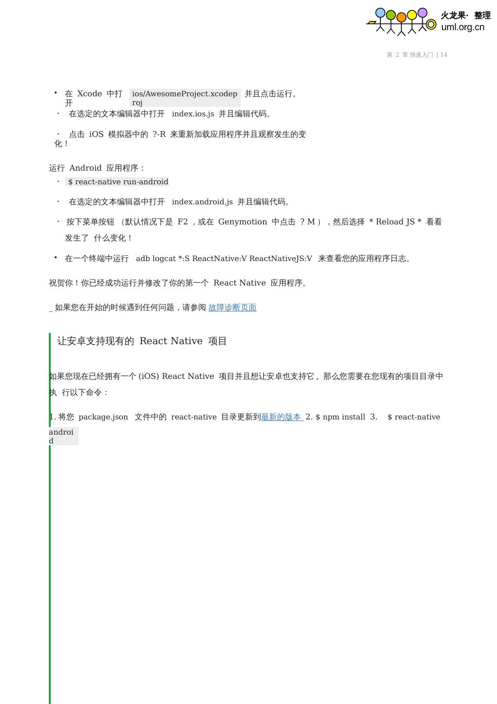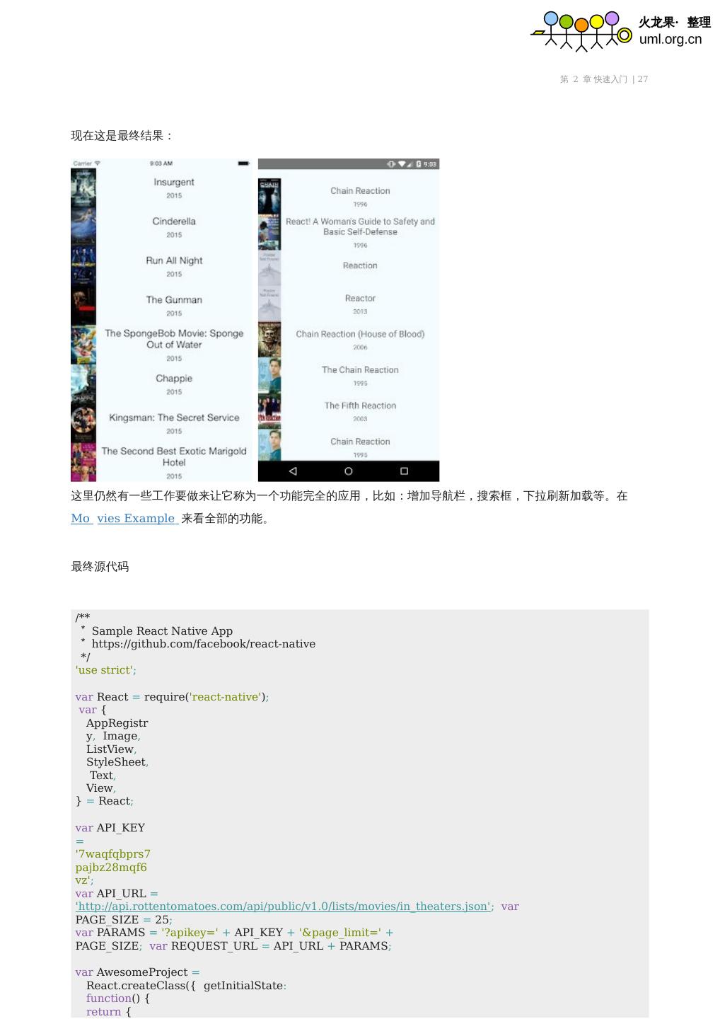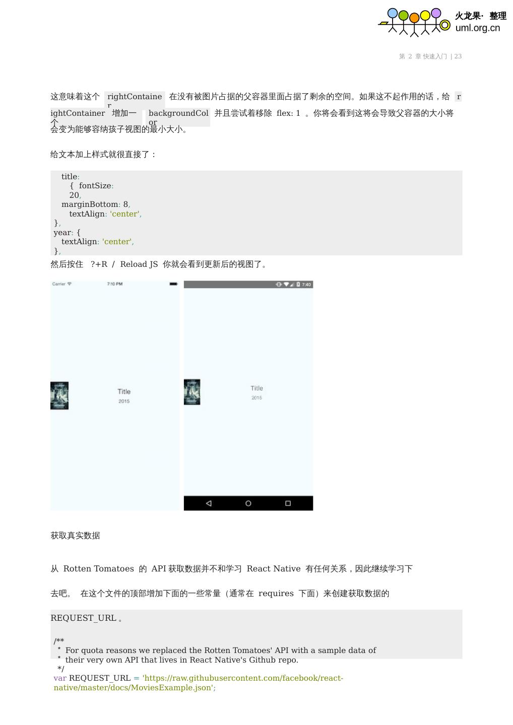 R 来看你的更改,而不用在Xcode 里面重新编译。 在Android 端,在AwesomeProject 里面运行react-native run-android 来在你的模拟器设备上面安装生成 的应用, ...