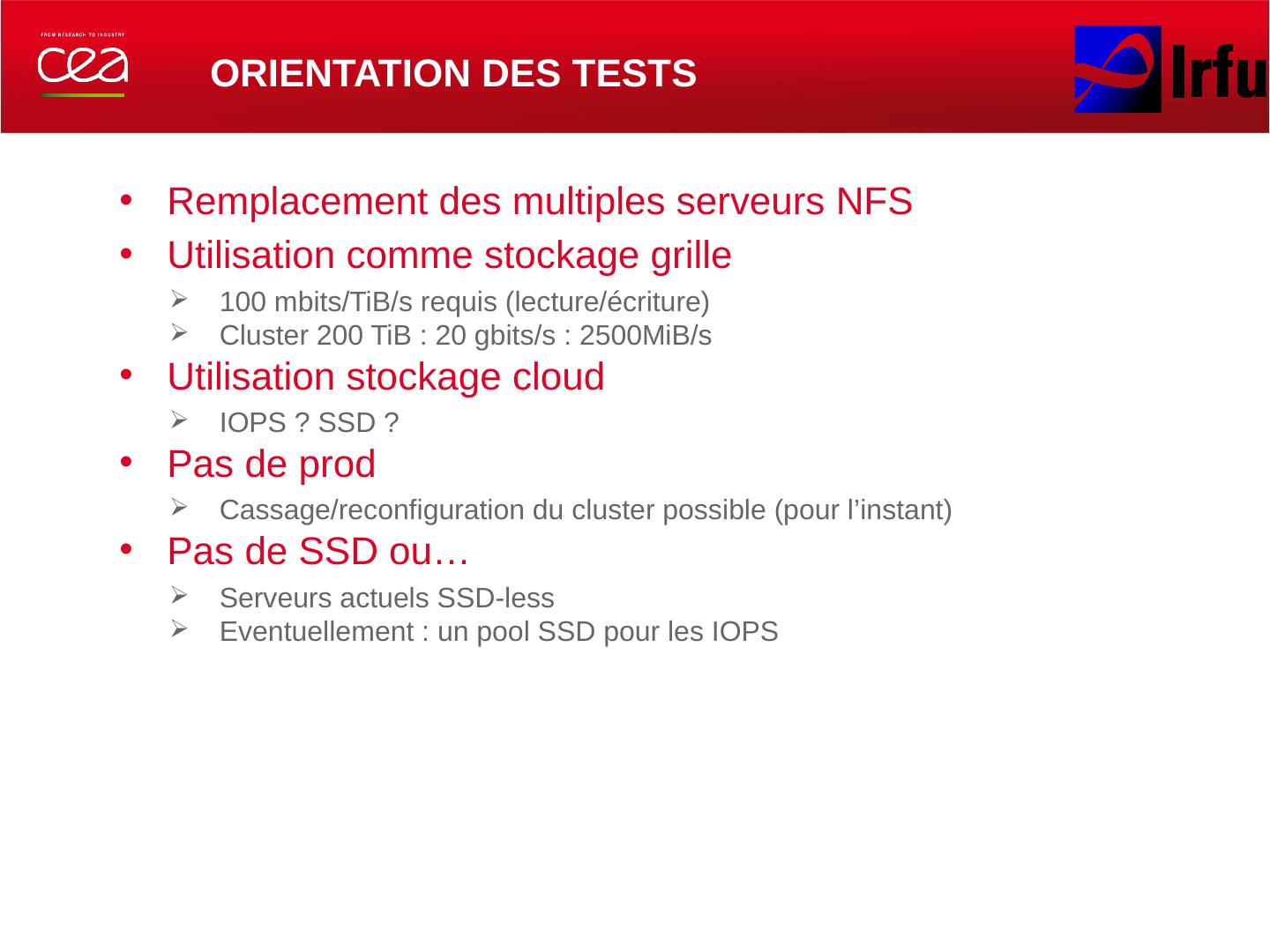 Utiliser le système de fichier cephfs; Pour fournir un espace de stockage pour la sauvegarde des portables à partir de servers recyclés; Passage DPM sur CEPH ...