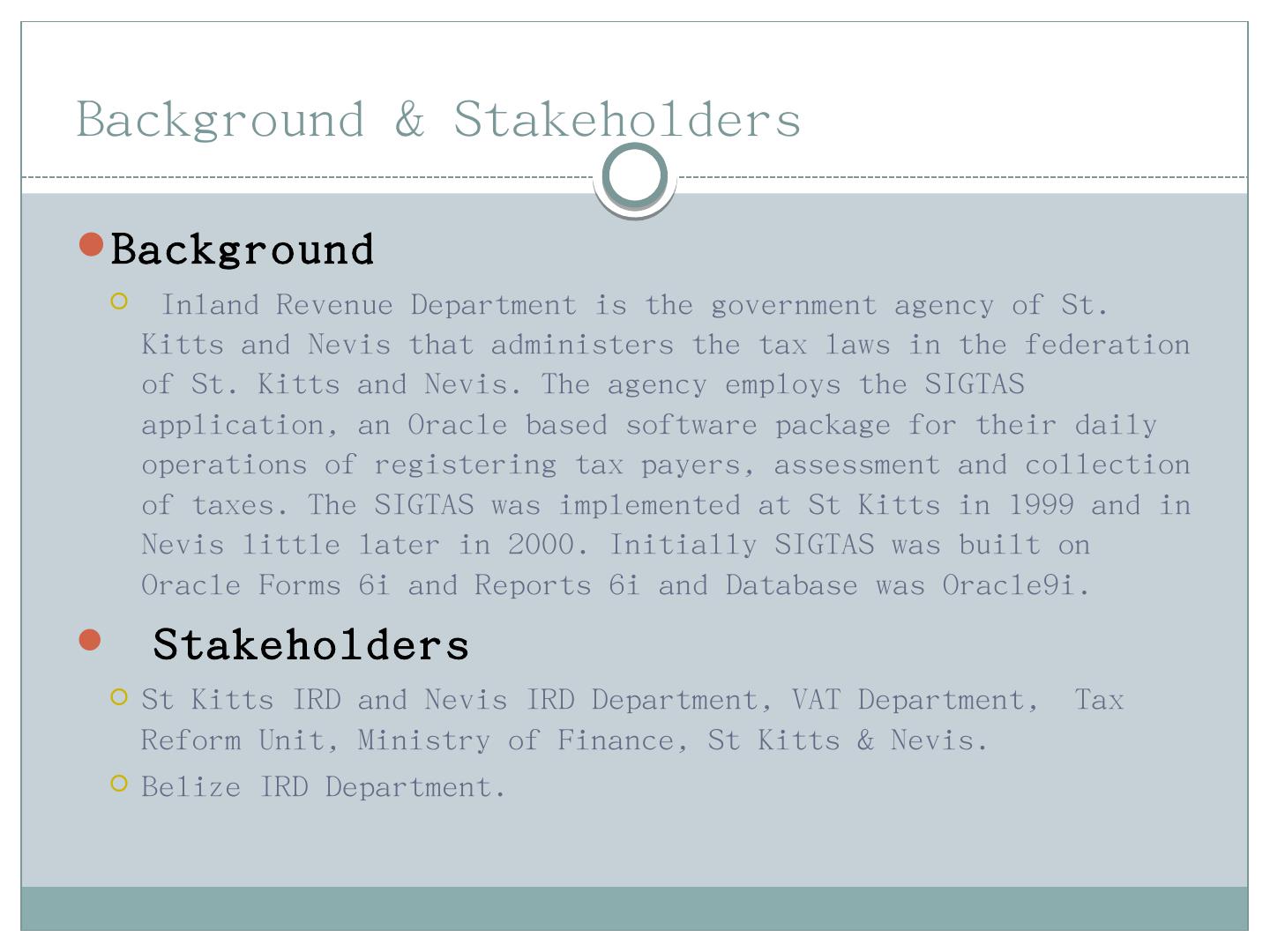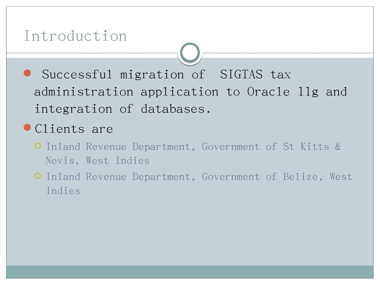 Successful migration of SIGTAS tax administration application to Oracle 11g and integration of databases. Clients are. Inland Revenue Department, Government ...