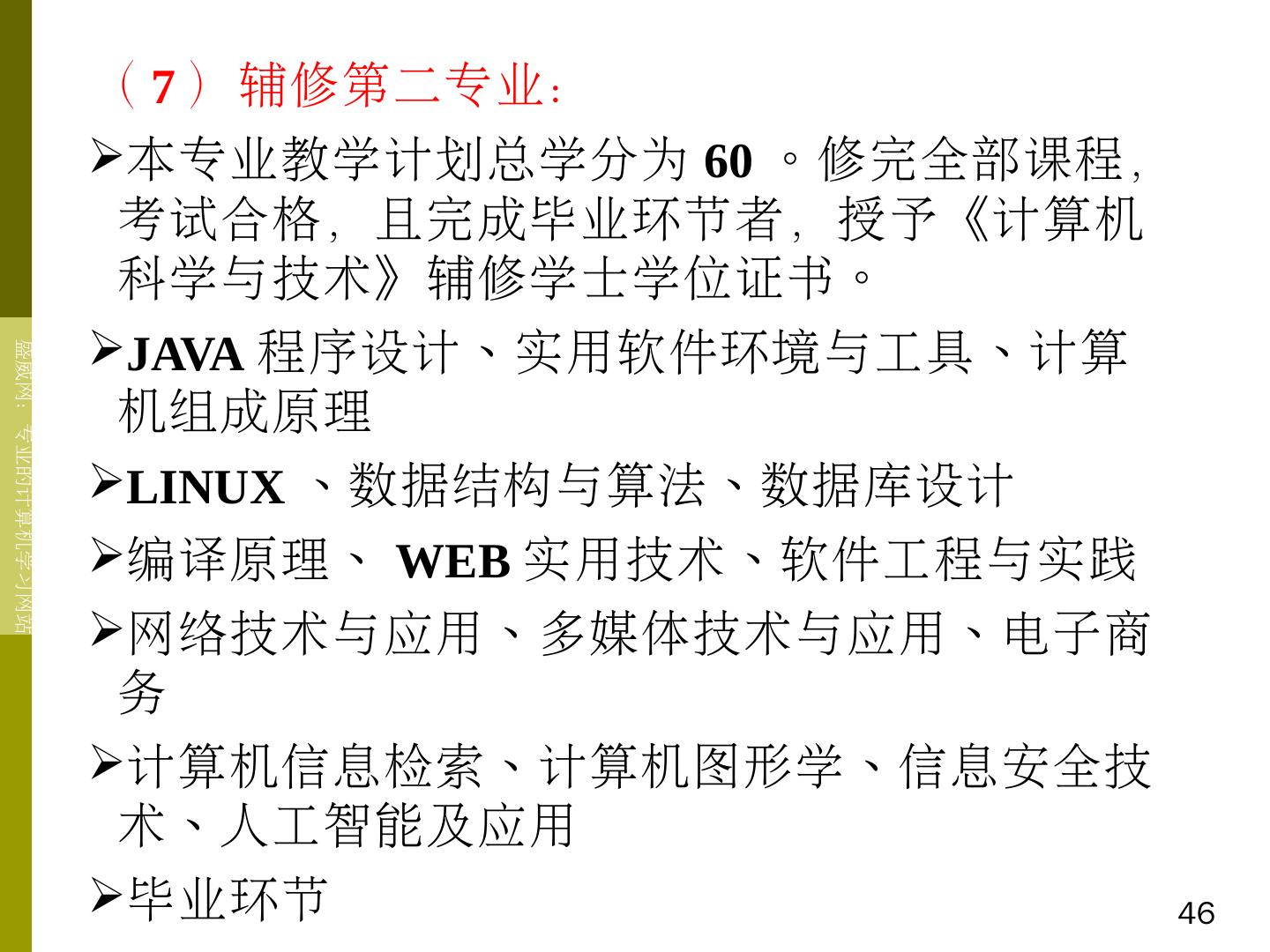 JAVA程序设计、实用软件环境与工具、计算机组成原理; LINUX、数据结构与算法、数据库设计; 编译原理、WEB实用技术、软件工程与实践; 网络技术与应用、多媒体 ...