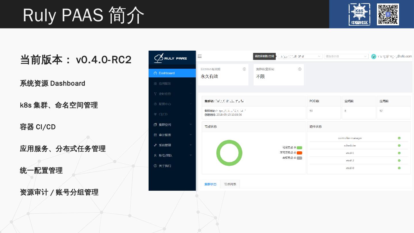 ofo容器云平台-Ruly PAAS简介. 及业务容器化实践. 王强. Ruly PAAS简介. CI/CD流程. 资源审计. 高级功能. 容器及基础设施优化. 业务容器化案例. Ruly PAAS简介.