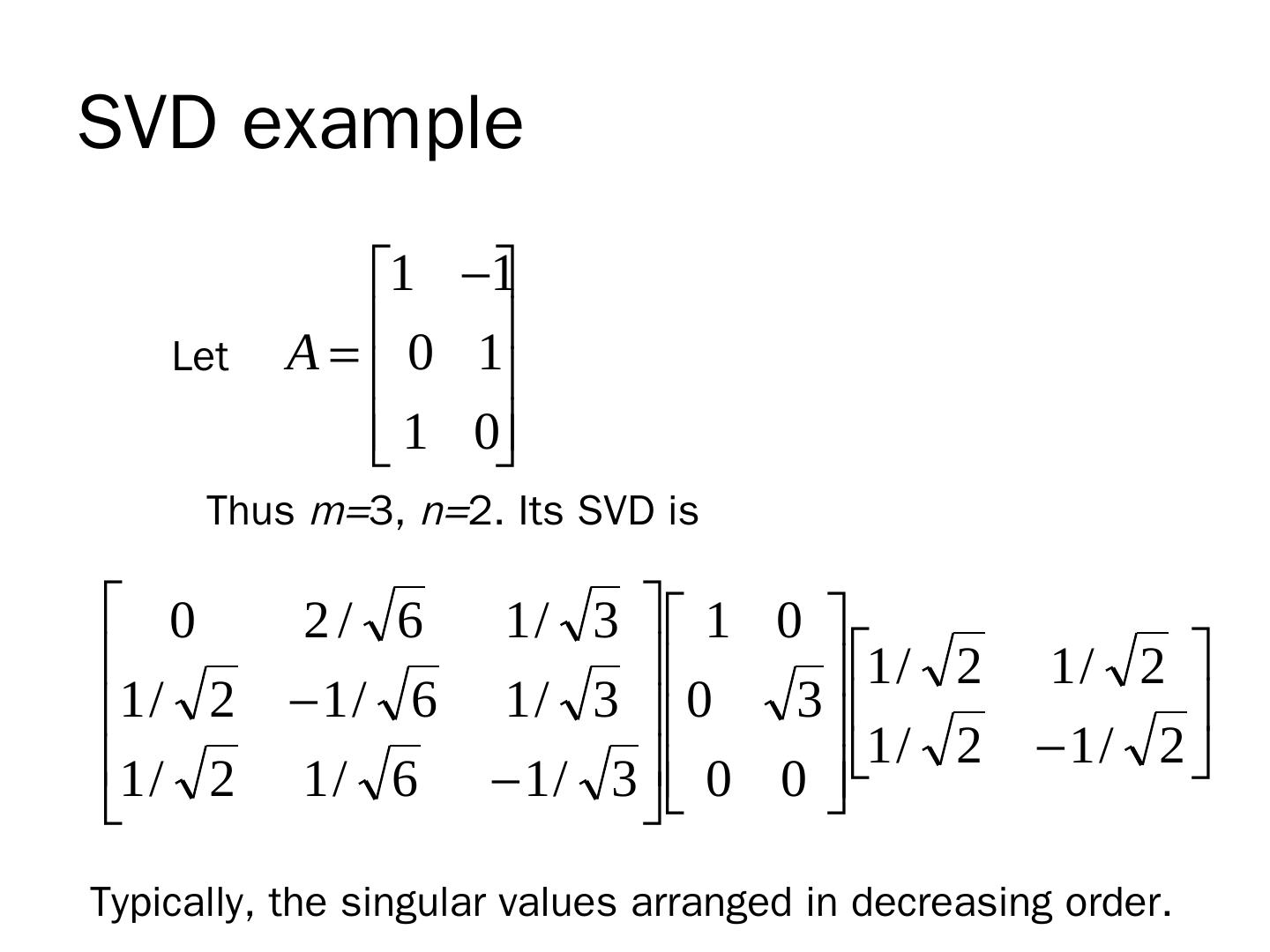 Singular Value Decomposition (SVD). T-11 Computer Vision. University of Ioannina. Christophoros Nikou. Singular Value Decomposition. m m. m n. V is n n.