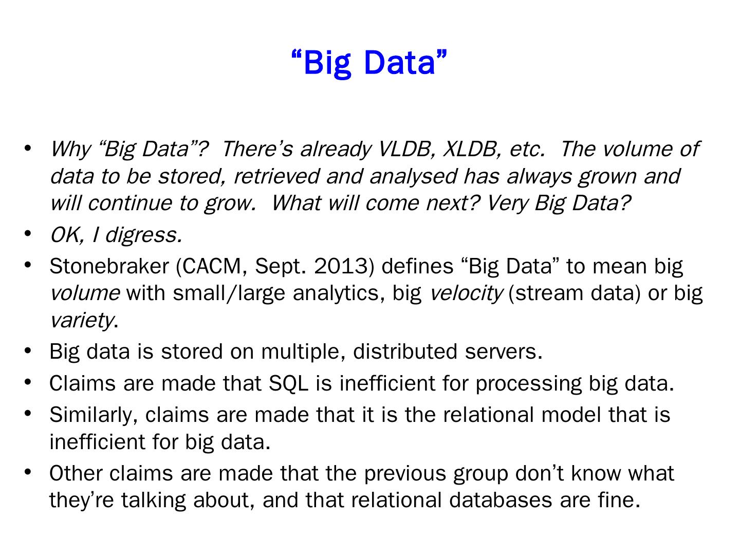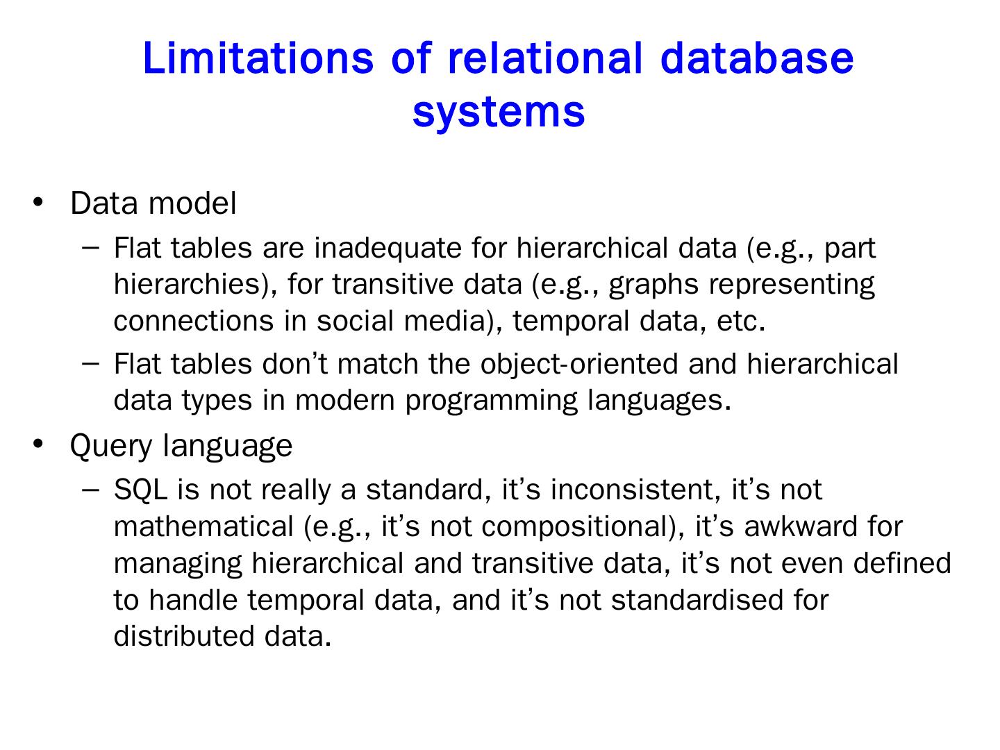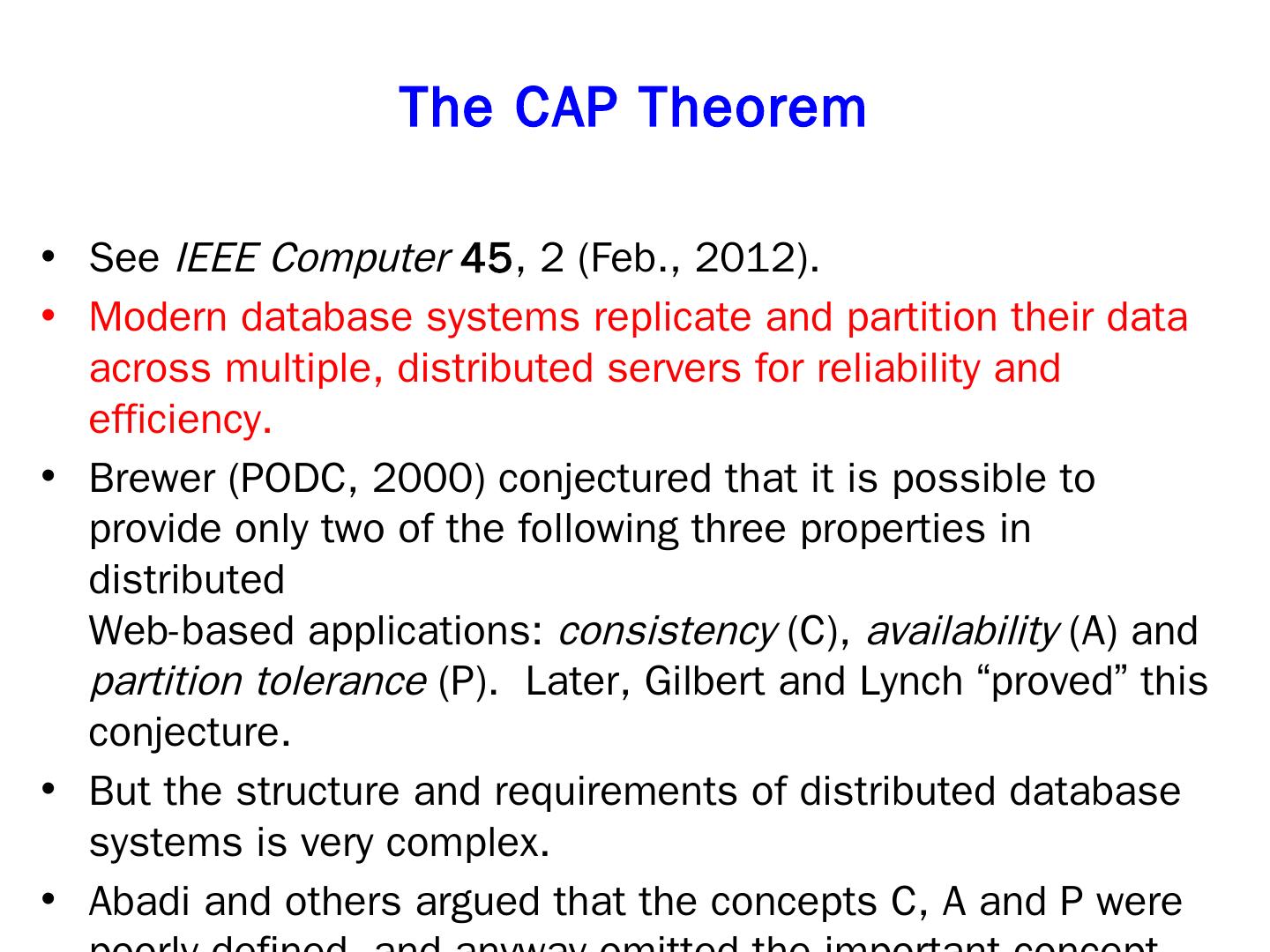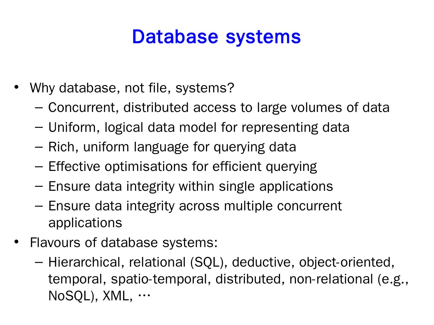 Database systems; Relational (SQL) database systems; Limitations of relational database systems; The CAP Theorem; Demands of “big data”; NoSQL database ...