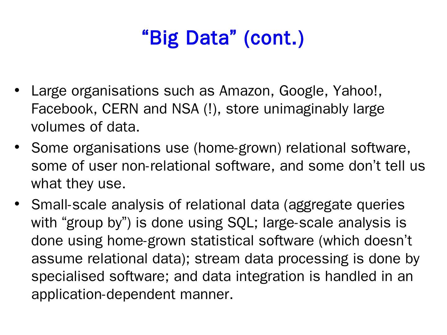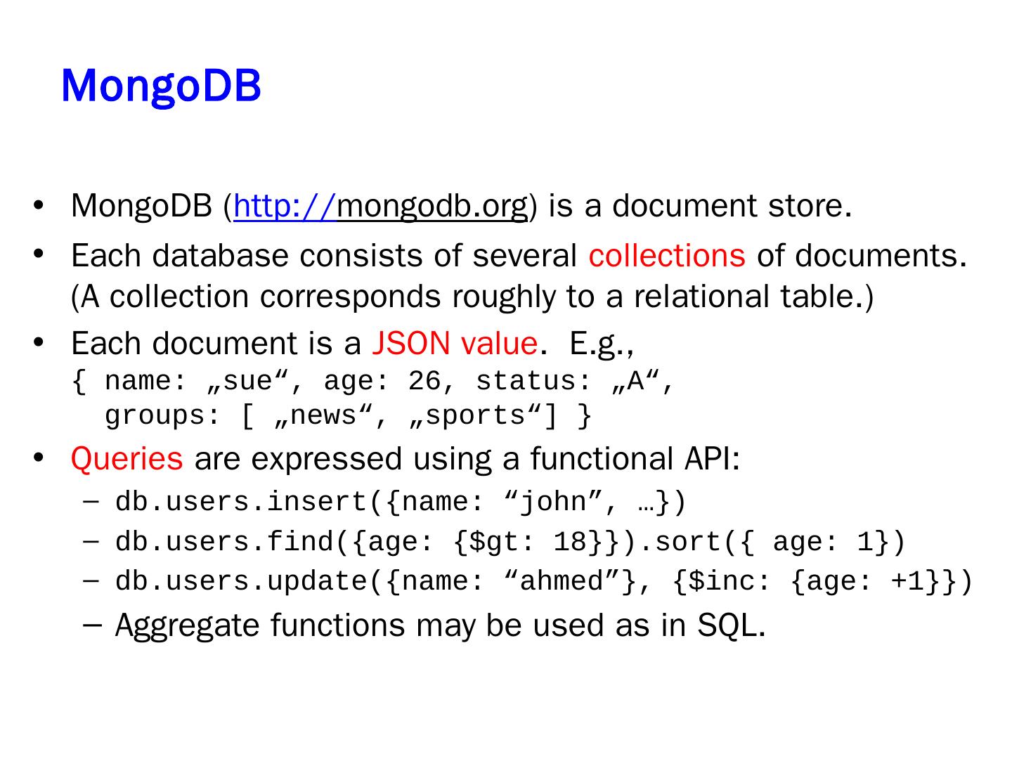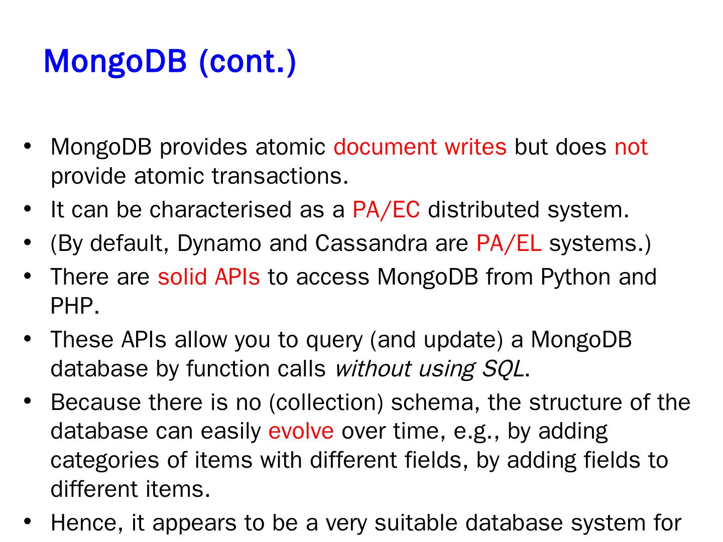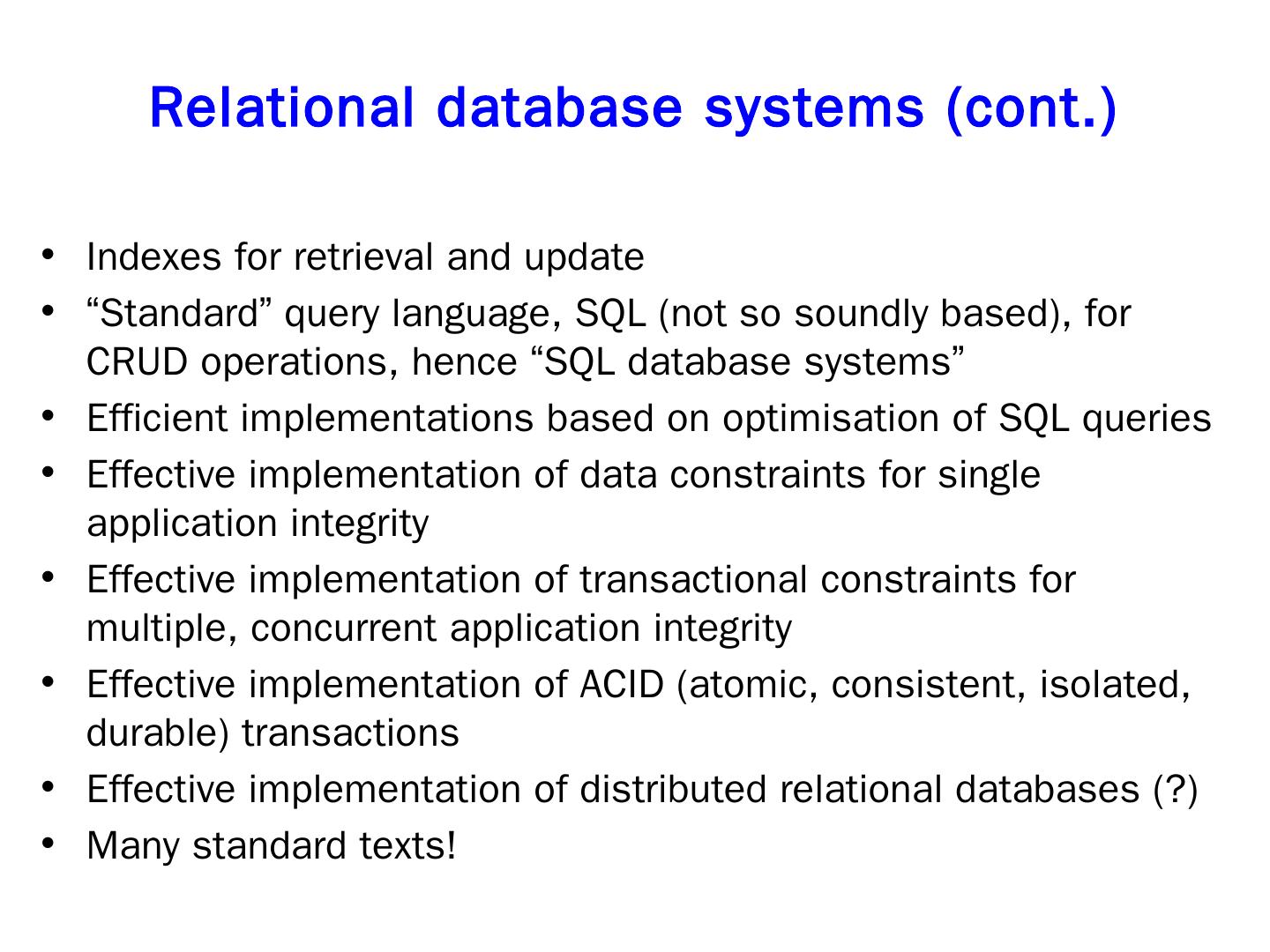 Database systems; Relational (SQL) database systems; Limitations of relational database systems; The CAP Theorem; Demands of “big data”; NoSQL database ...