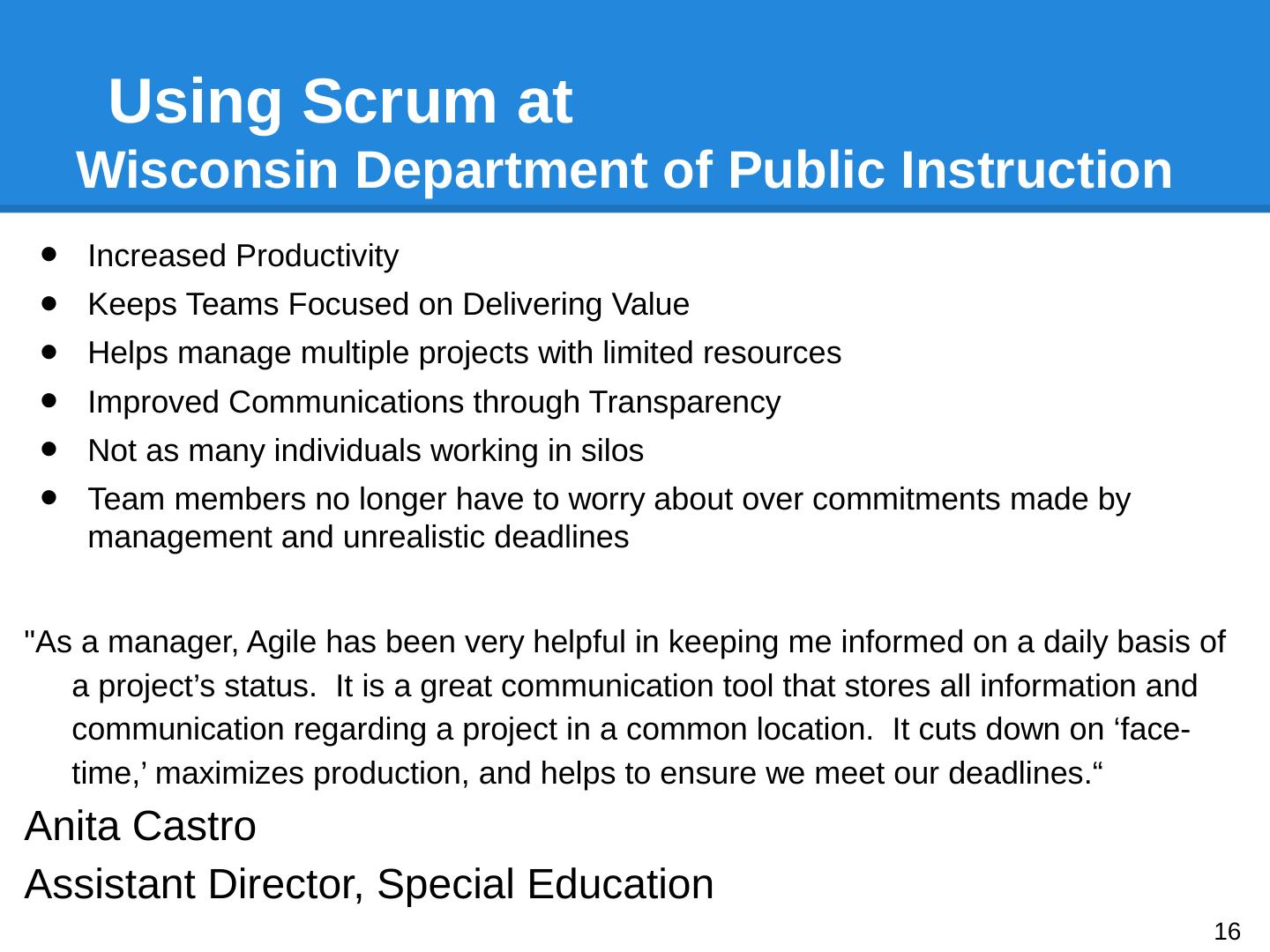 Using Scrum. Dan Retzlaff. Management Information Chief - Applications Development. Wisconsin Department of Public Instruction.