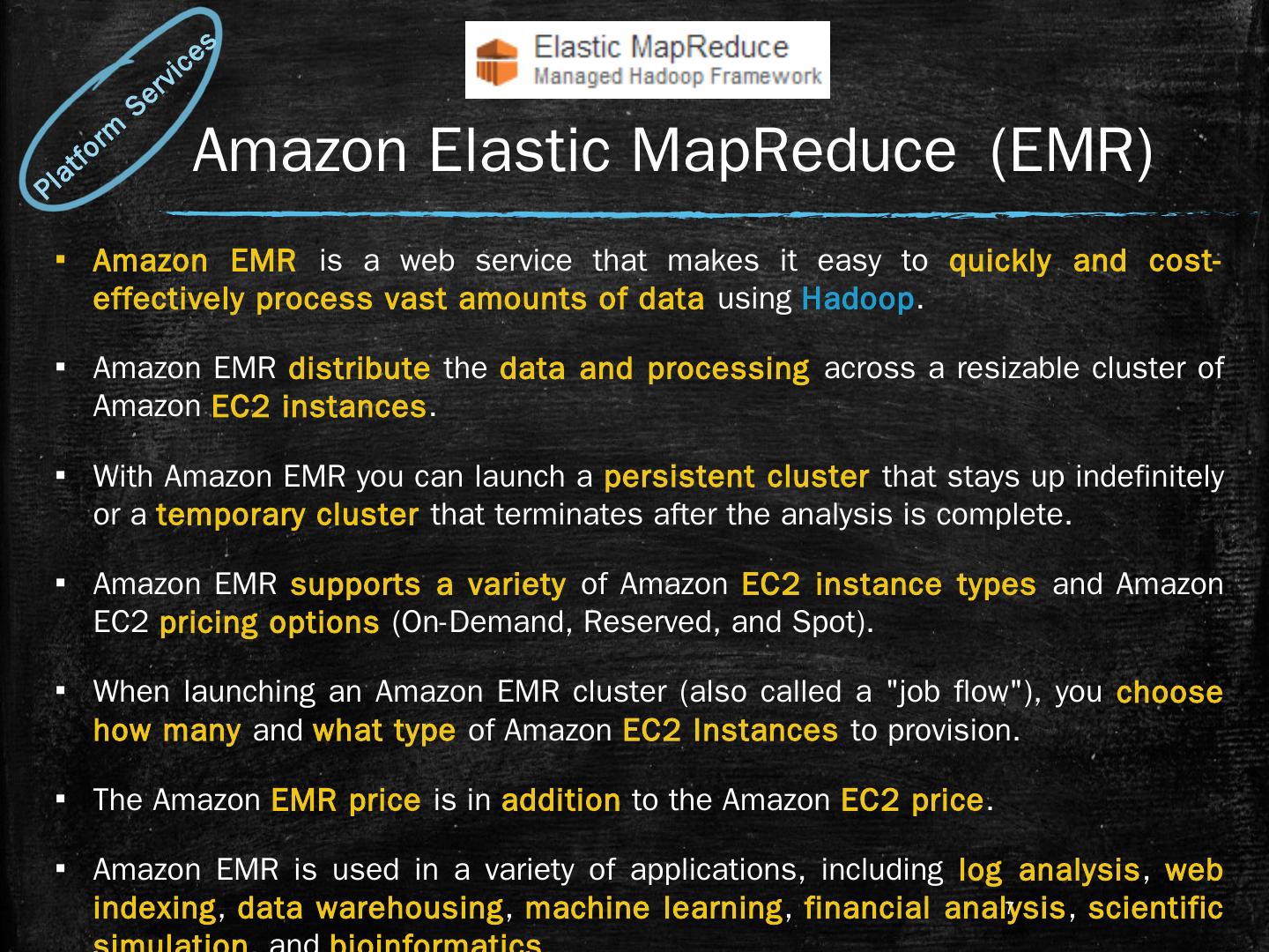Amazon S3 provides a simple web services interface that can be used to store ... Amazon EMR distribute the data and processing across a resizable cluster of ...