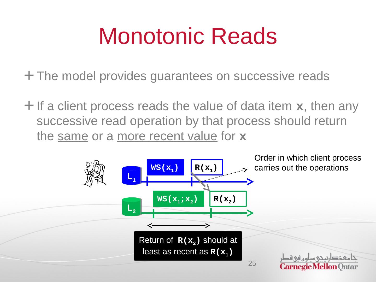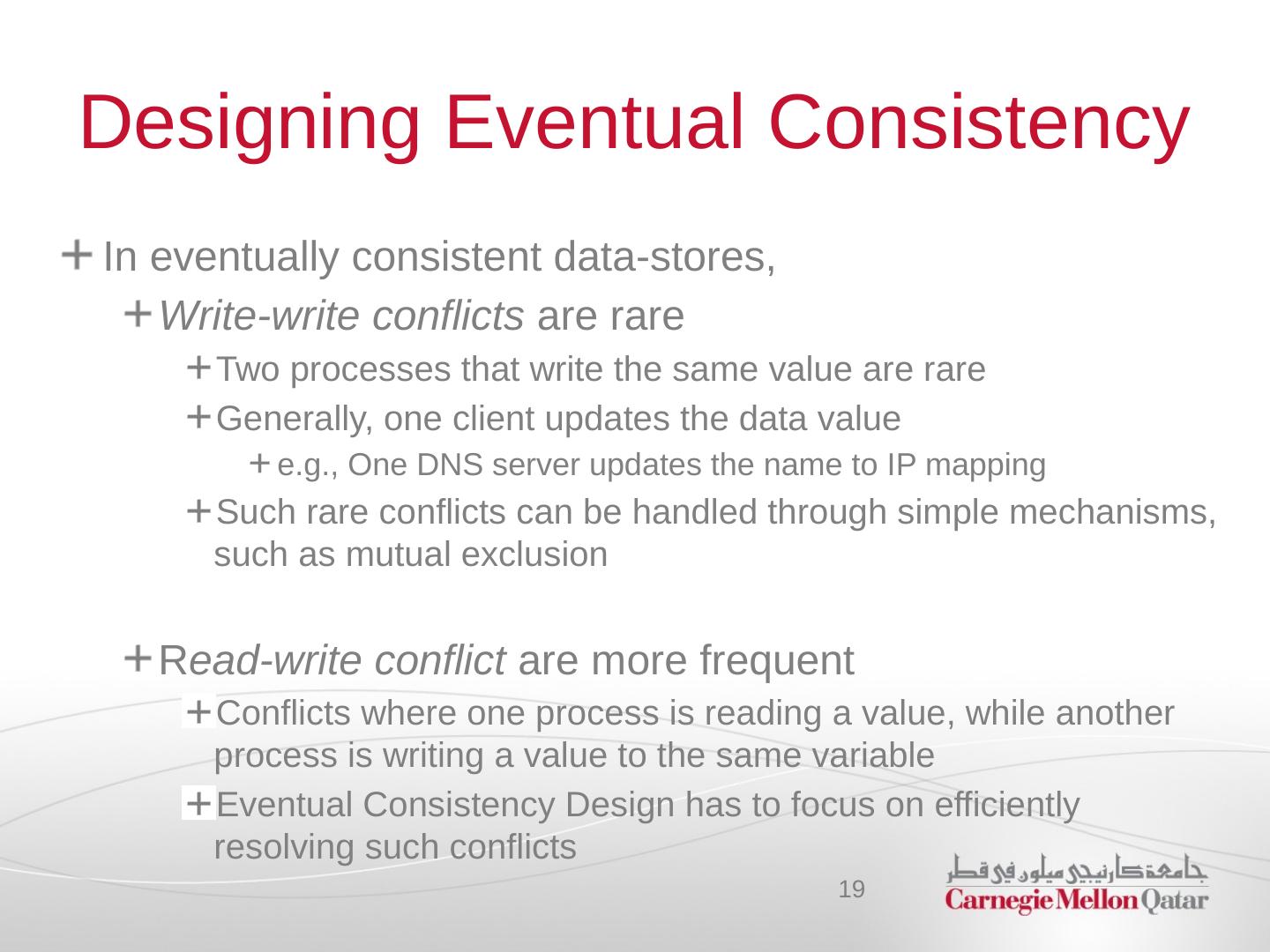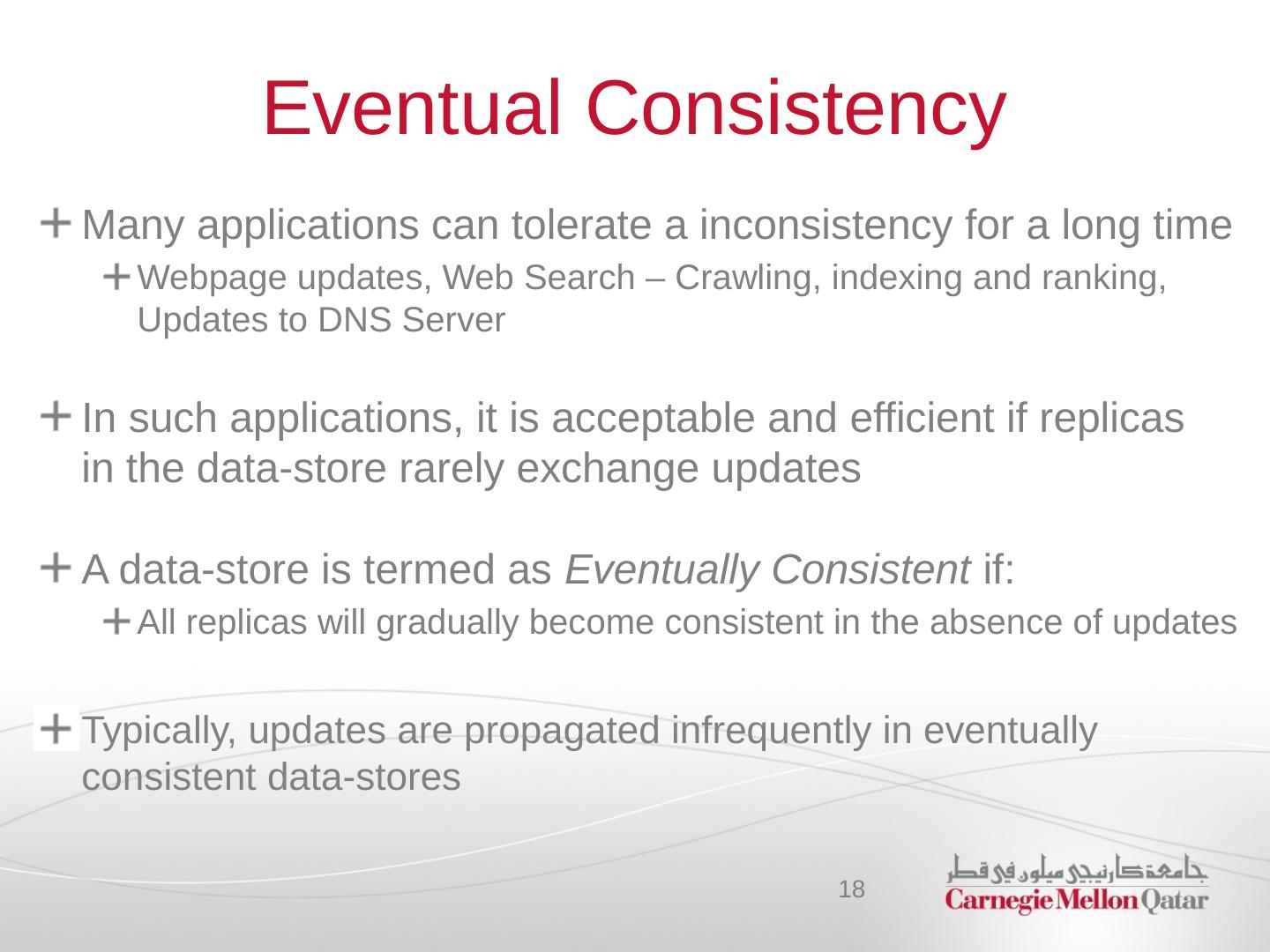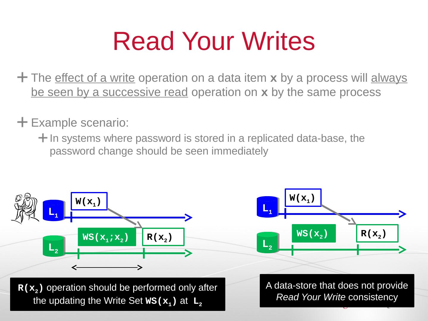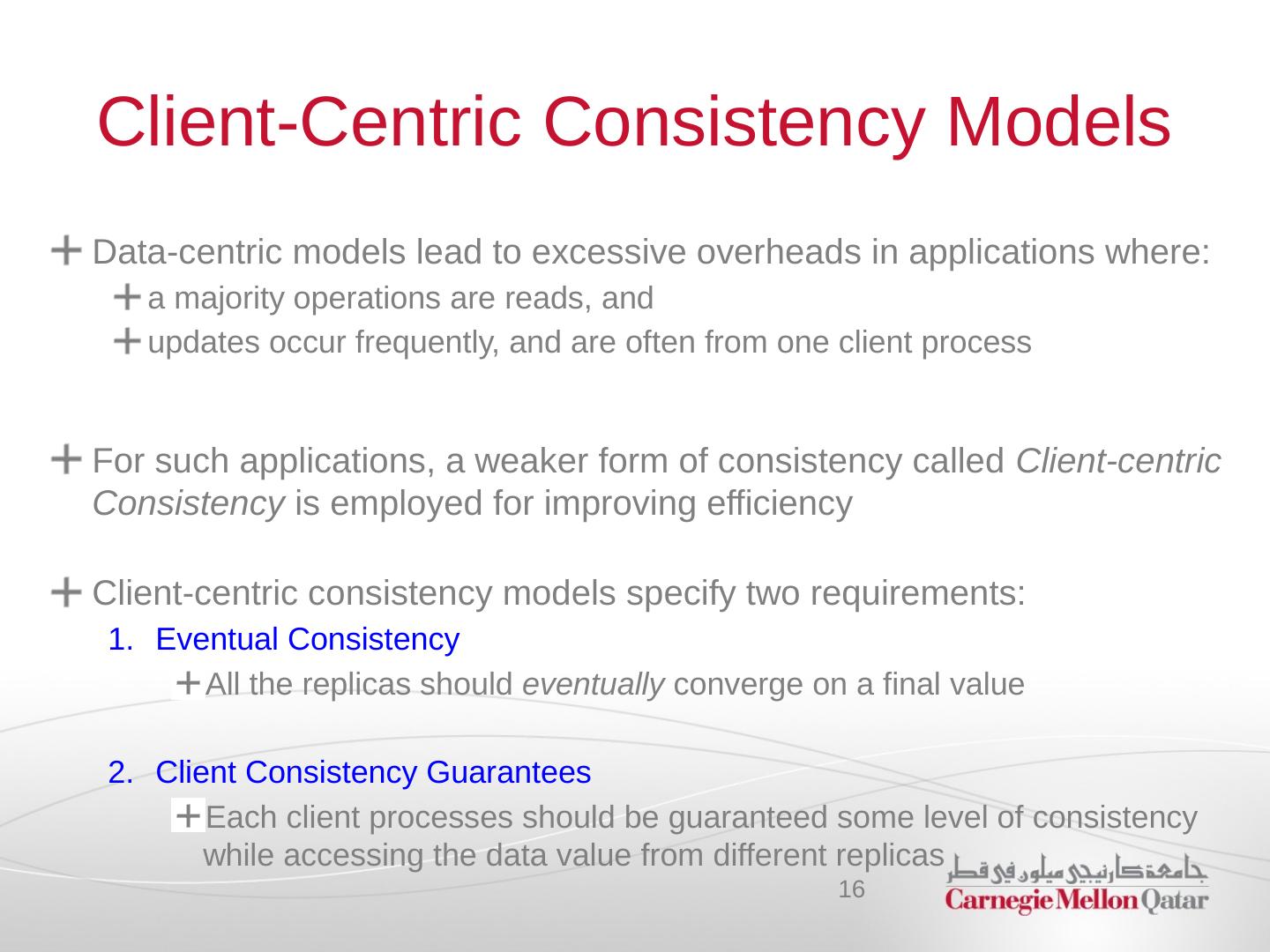 Introduction and Data-Centric Consistency Models .... Eventual Consistency is not good-enough when the client process accesses data from ...