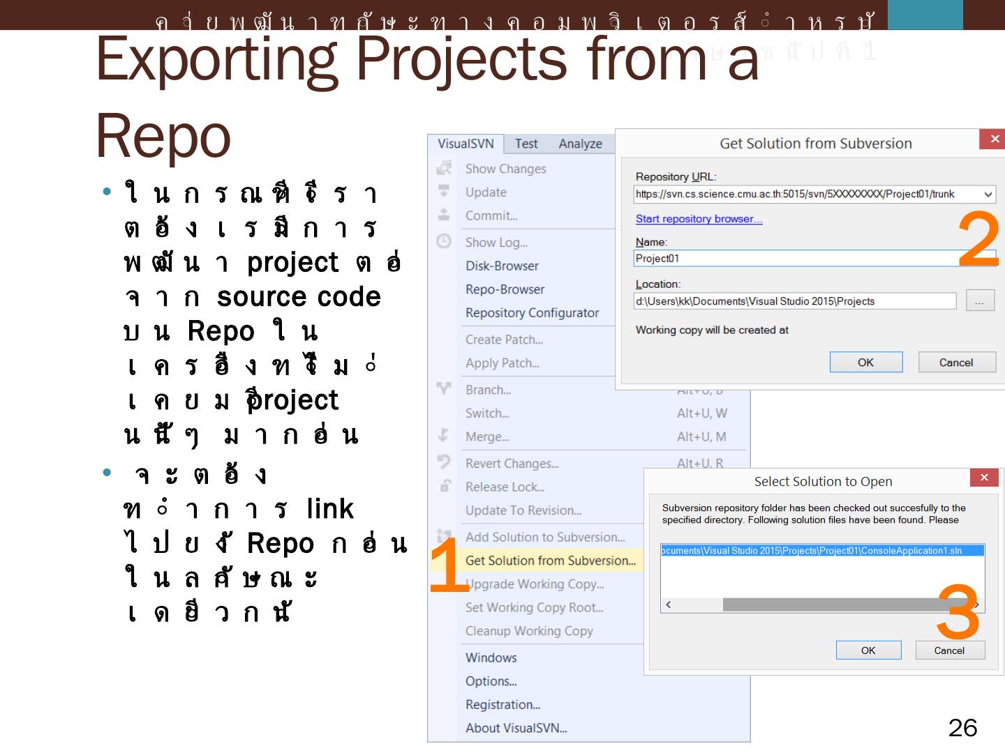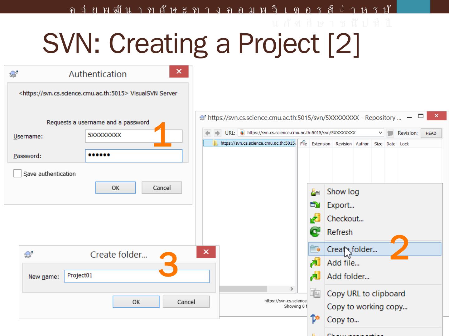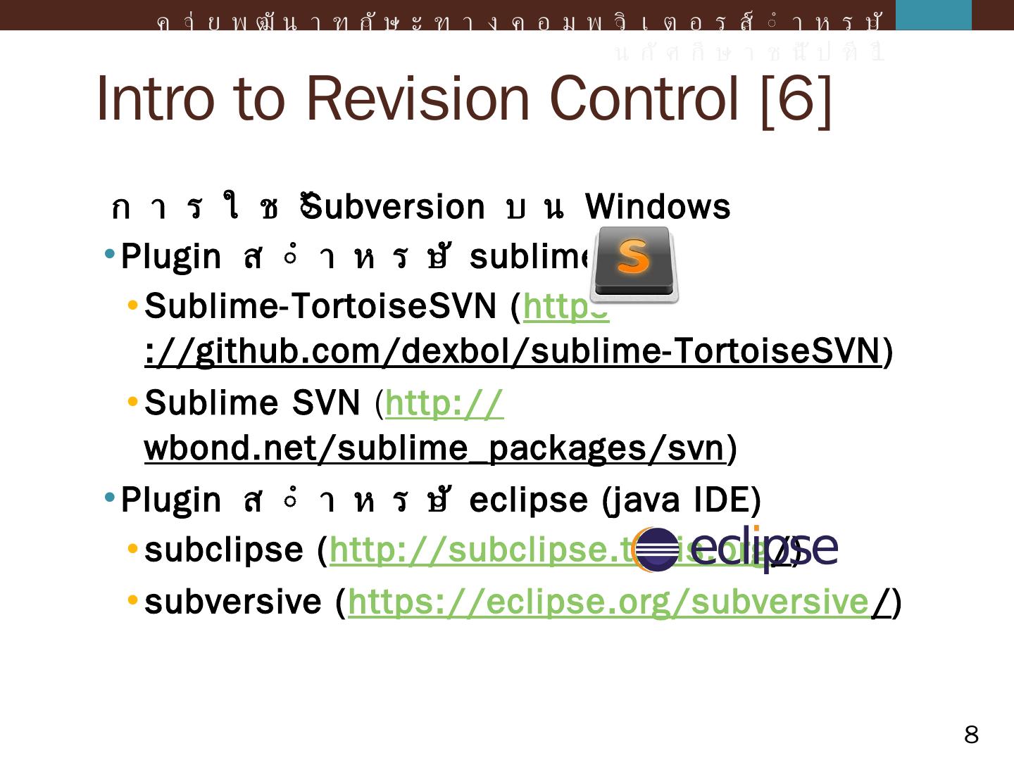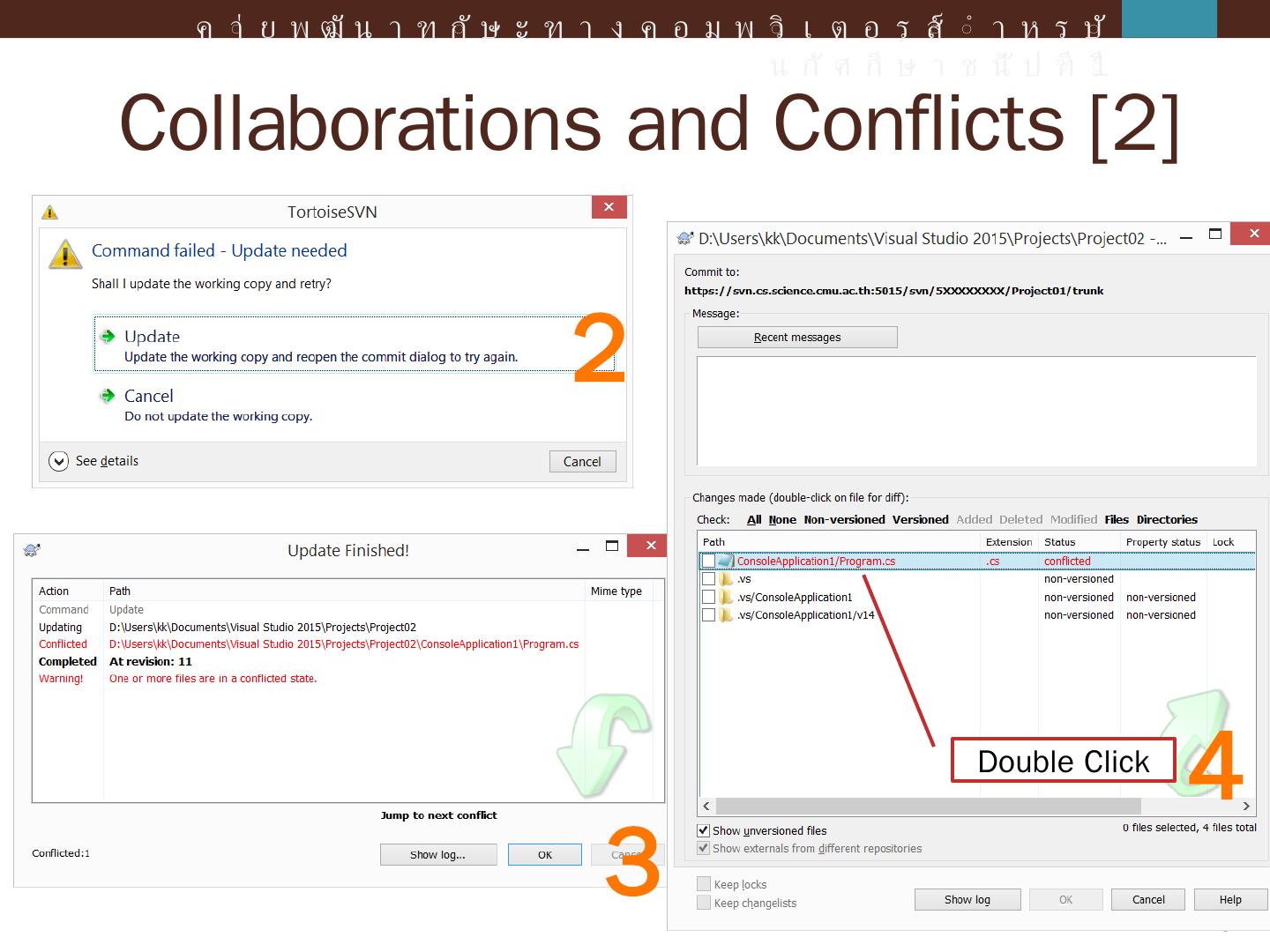 ค่ายพัฒนาทักษะทางคอมพิวเตอร์สำหรับนักศึกษาชั้นปีที่ 1. Agenda. Intro to Revision Control and SVN; Introduction; Console Application; Windows Form Application ...
