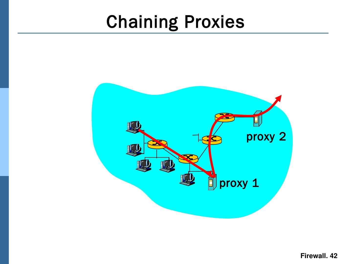 25 .Firewalls Technologies Traditional packet filters filters often combined with router, creating a firewall widely available in routers, linux Application gateways often implemented with SOCKS today Stateful Inspection filters maintains connection state