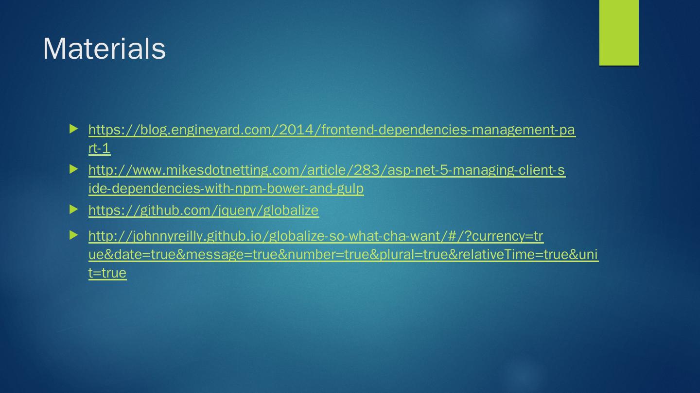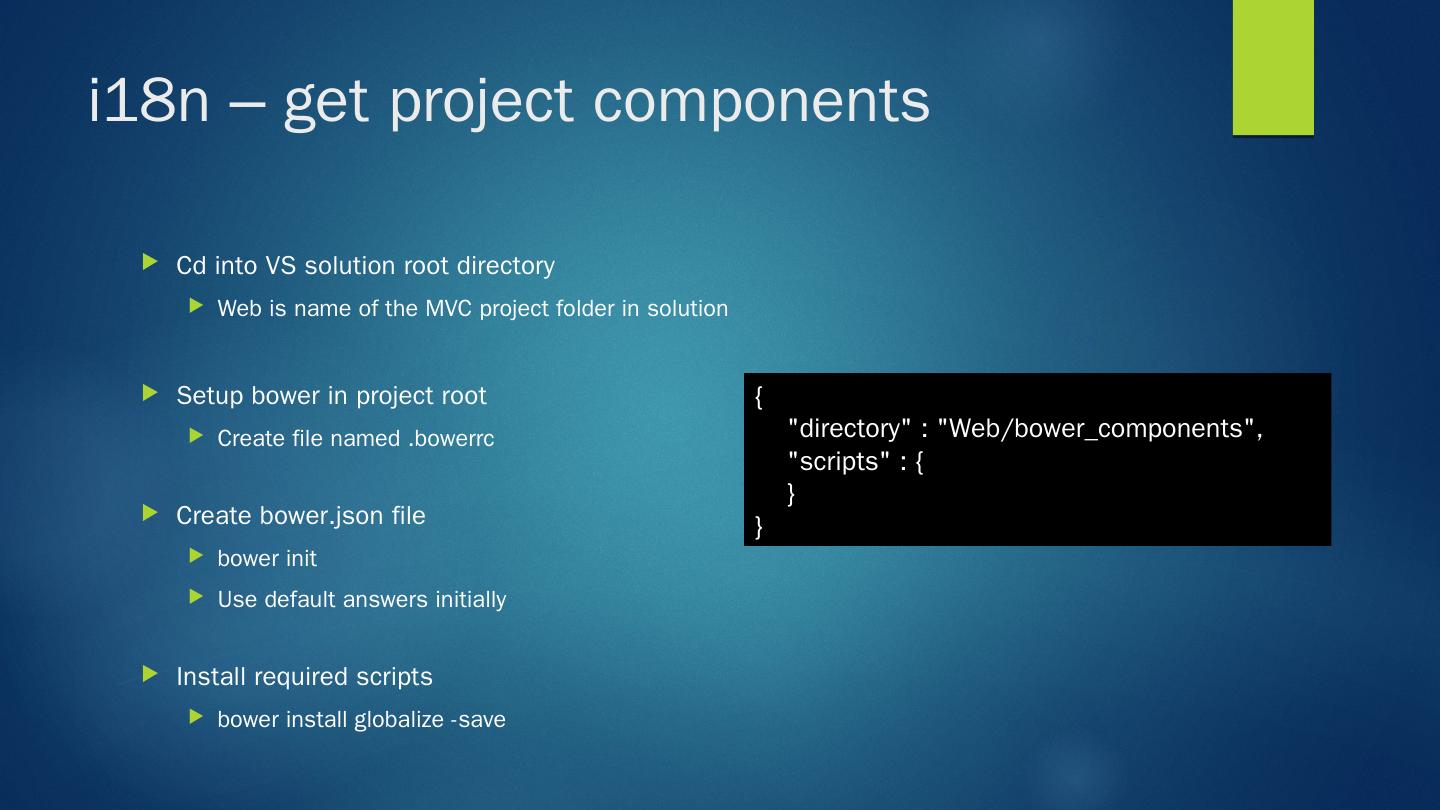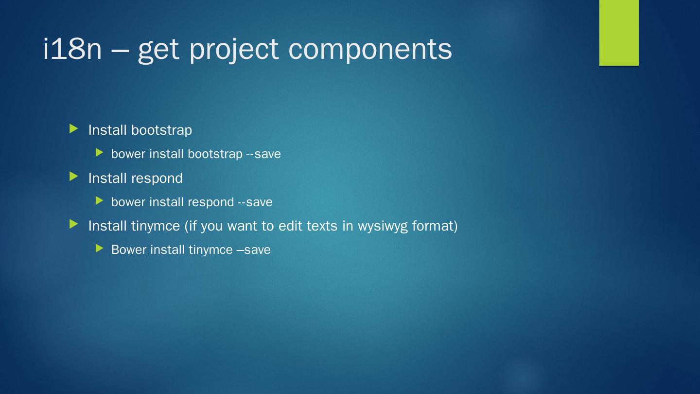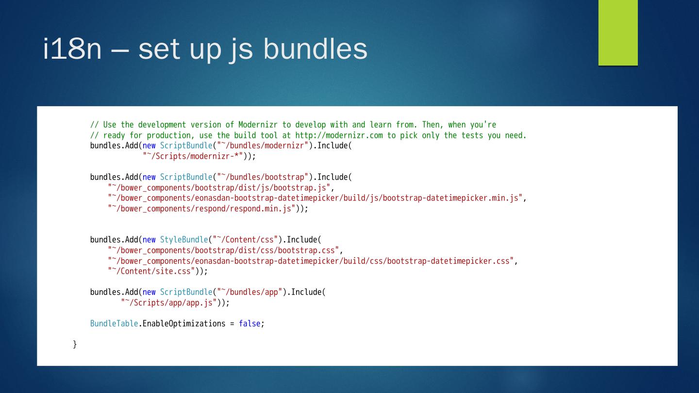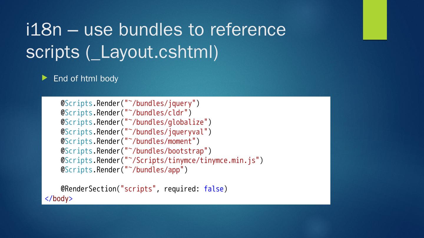 Bower install tinymce –save. I18n – custom scripts. Jquery.validate.globalize does not support time and datetime validation. https://github.com/akaver/ASP.