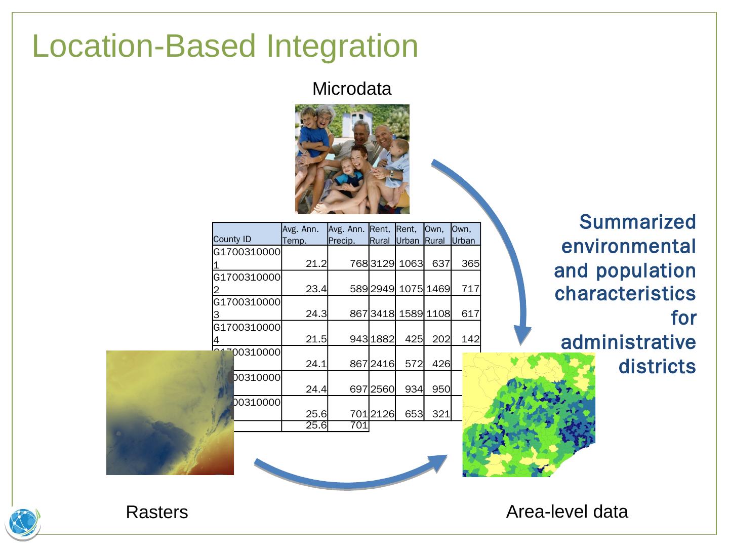 Generates area-level data from microdata using geographic level codes. National, First Level (e.g. State), Second Level (e.g. County). Parquet on Apache Spark.