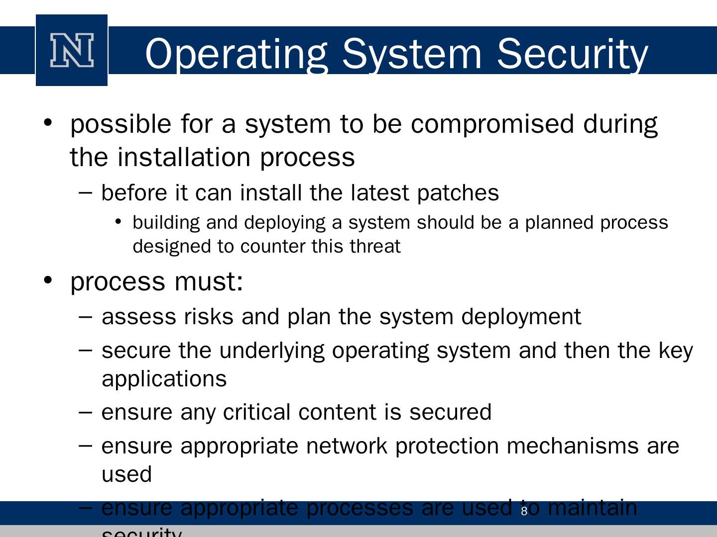 Operating System Security. modified from slides of Lawrie Brown and Ian Goldberg. Operating System. An OS allows different users to access different resources ...