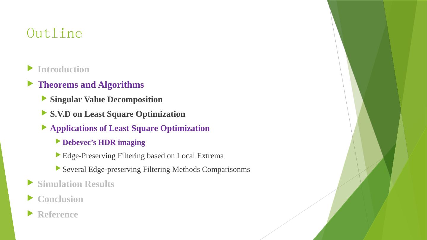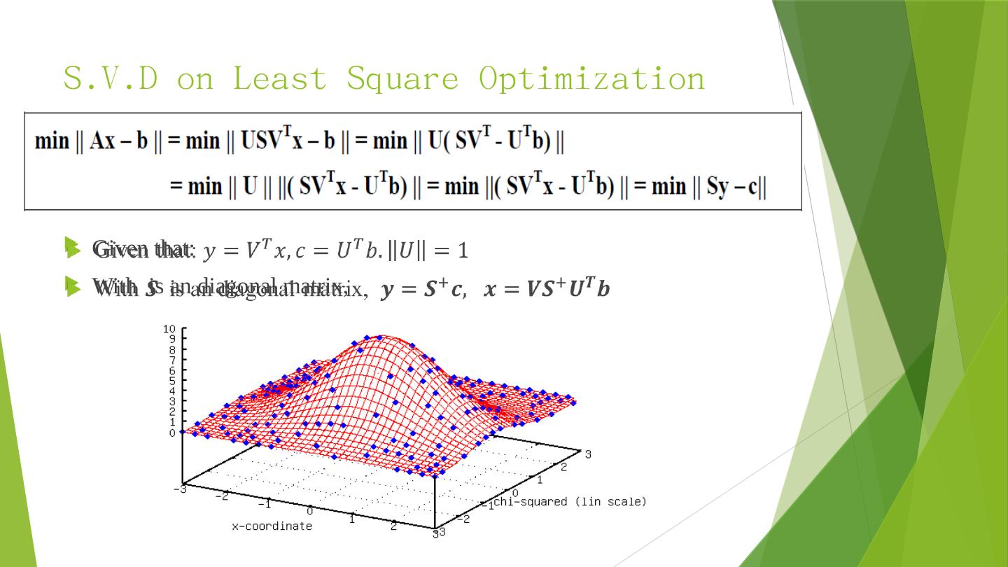Singular Value Decomposition on solving Least Square optimization and Implementation. 陳宏毅. Outline. Introduction; Theorems and Algorithms. Singular ...