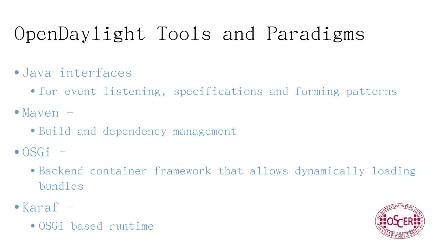 OSGi -. Backend container framework that allows dynamically loading bundles. Karaf -. OSGi based runtime. What is an Application ...