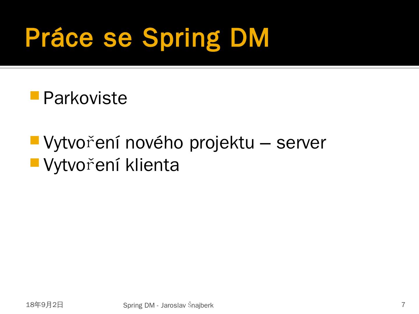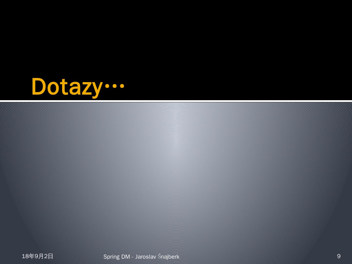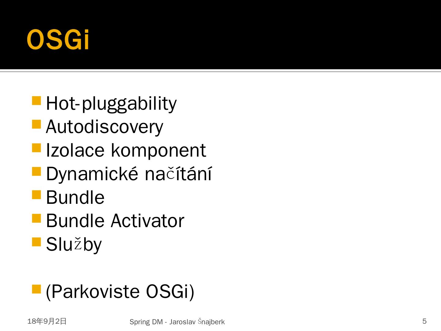 Spring; OSGi; Spring DM. 1/1/97. 2. Spring DM - Jaroslav *najberk. 1/1/97. 3. Spring DM - Jaroslav Šnajberk. Spring. Konfigurace; Centralizace; Dependency ...
