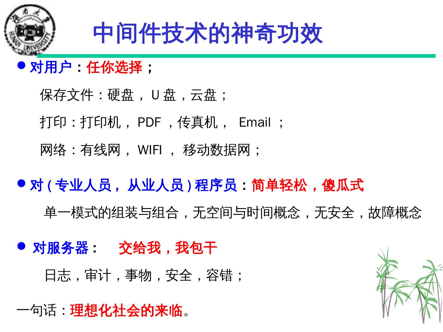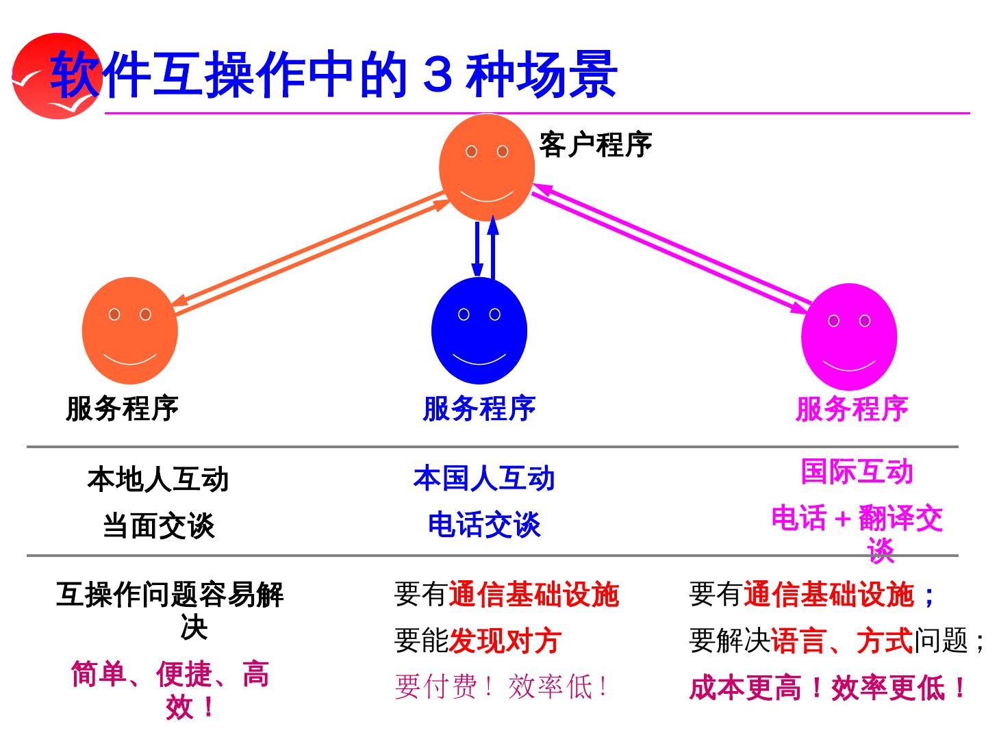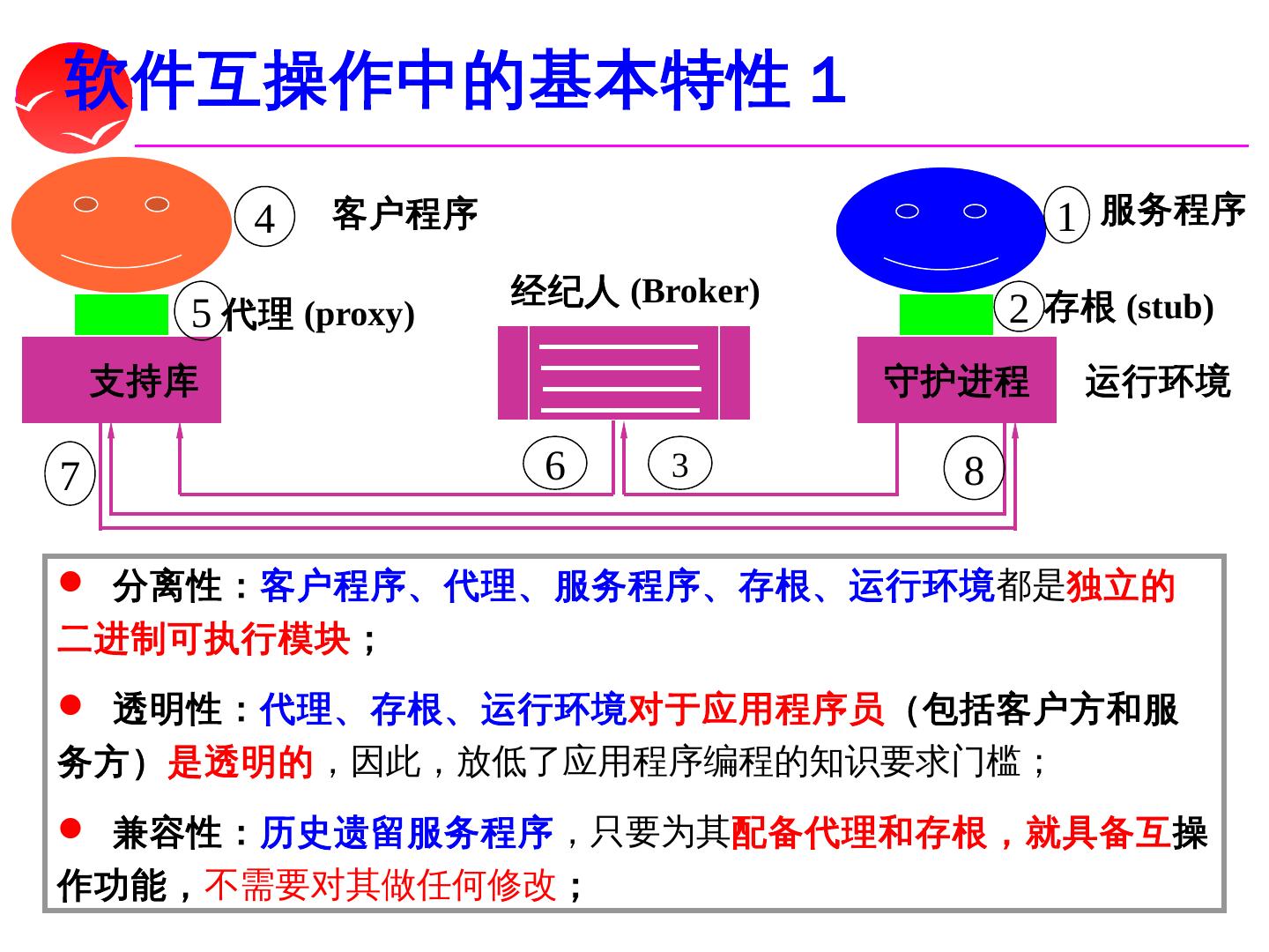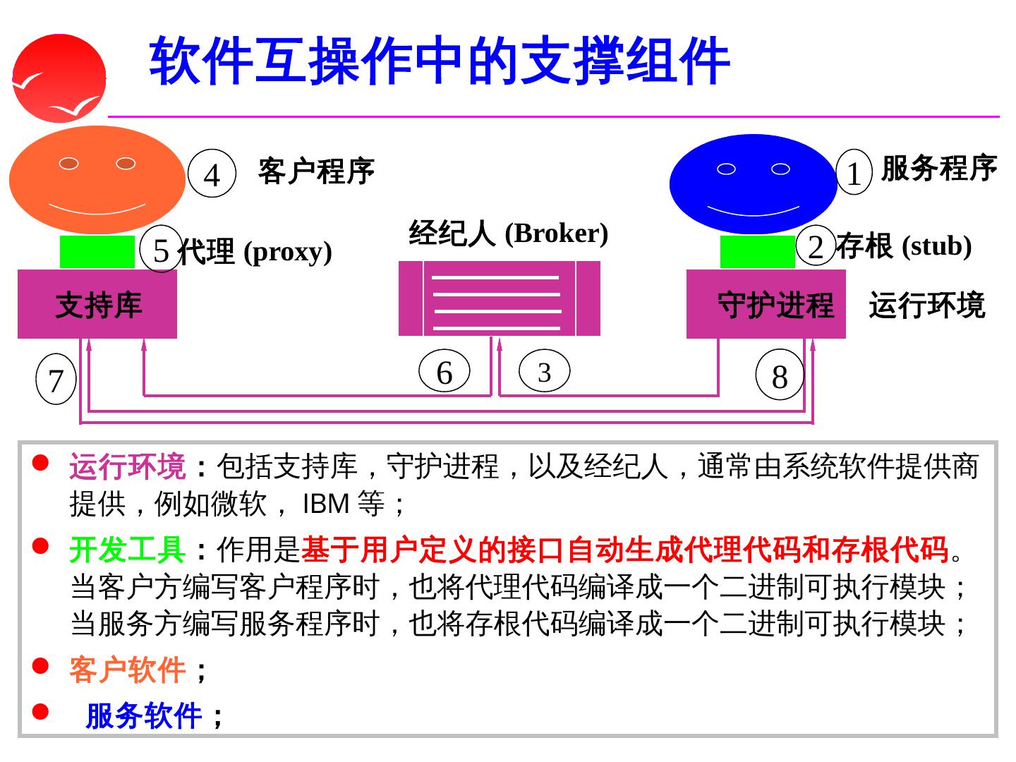 IDE/Framework. MFC/OWL). 语言/IDE/Framework. Java/.NET. Modeling/软件工程. 高级语言. 2006. Eclipse .... 软件互操作中的基本特性1. 分离性:客户程序、代理、 ...