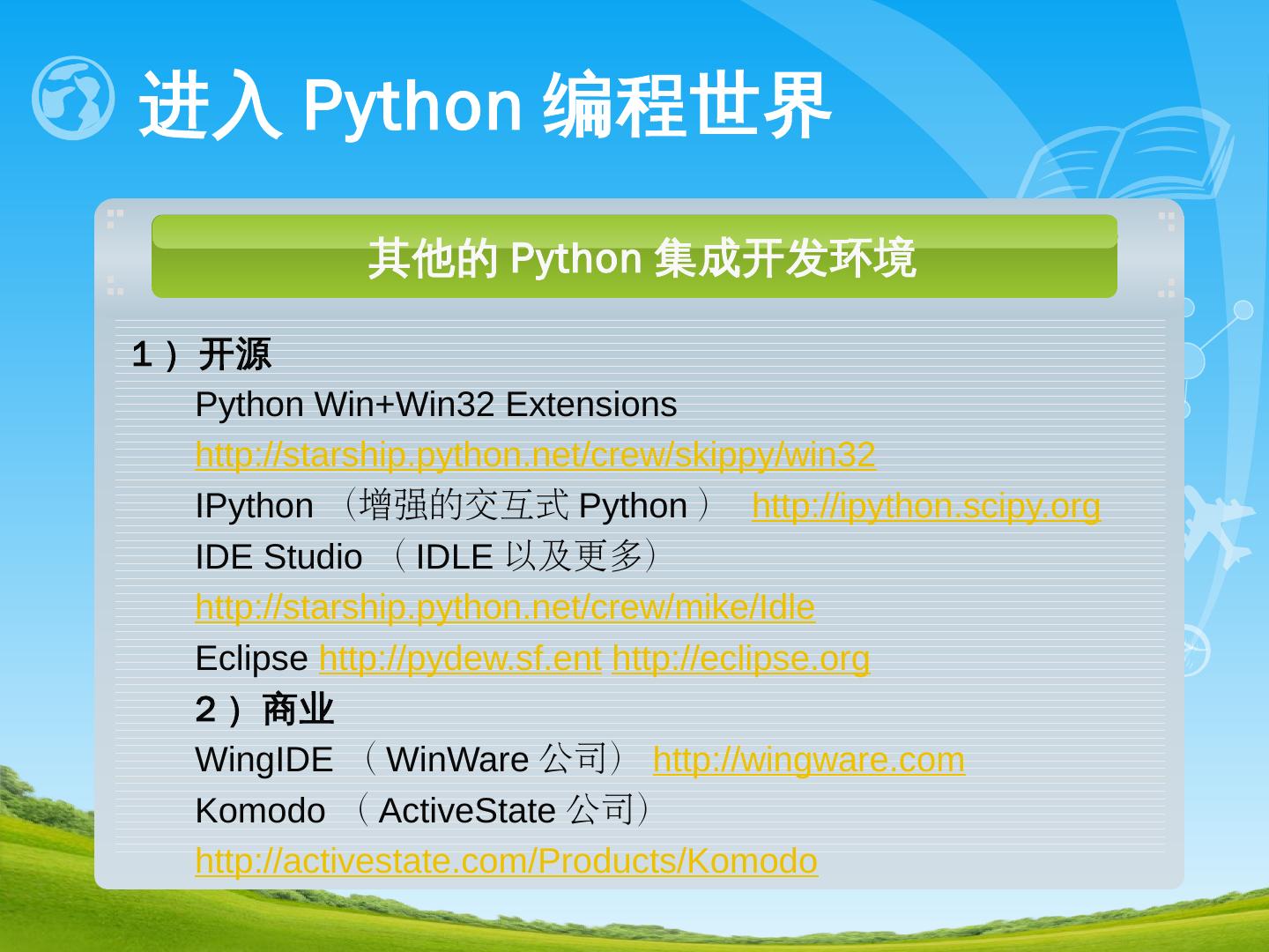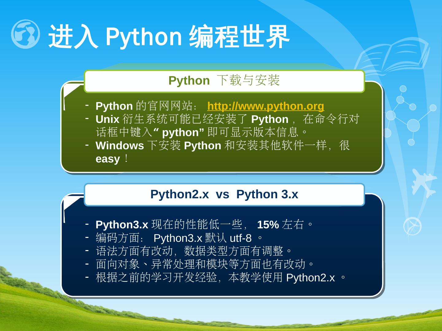 它有高效率的高层数据结构,能够简单、有效地实现面向对象编程。 Python语法简洁,支持 ... Windows下安装Python和安装其他软件一样,很easy! Python3.x现在的 ...