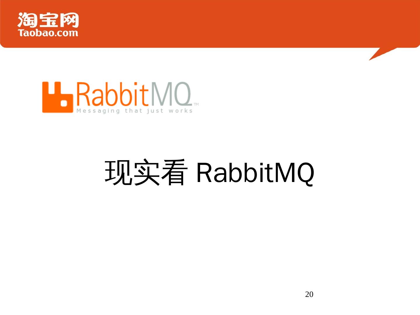 我为什么要选择RabbitMQ. 淘宝核心系统资深专家 余锋http://yufeng.info. @淘宝褚霸. 2012-08-10. 十万英尺高度看RabbitMQ. 2. MQ在云计算的地位. 3. RabbitMQ ...
