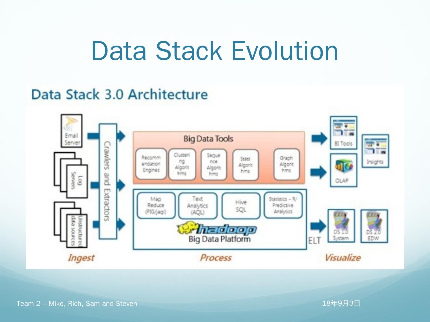 At this level you have structured data in an RDBMS, NoSQL, Hbase, or Impala; unstructured data in Hadoop MapReduce; streaming data from the web, social ...