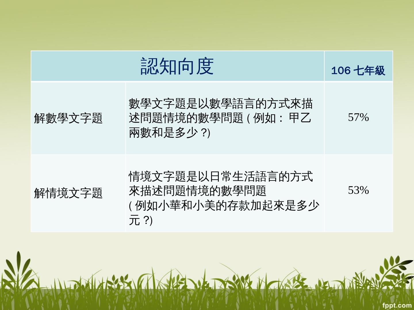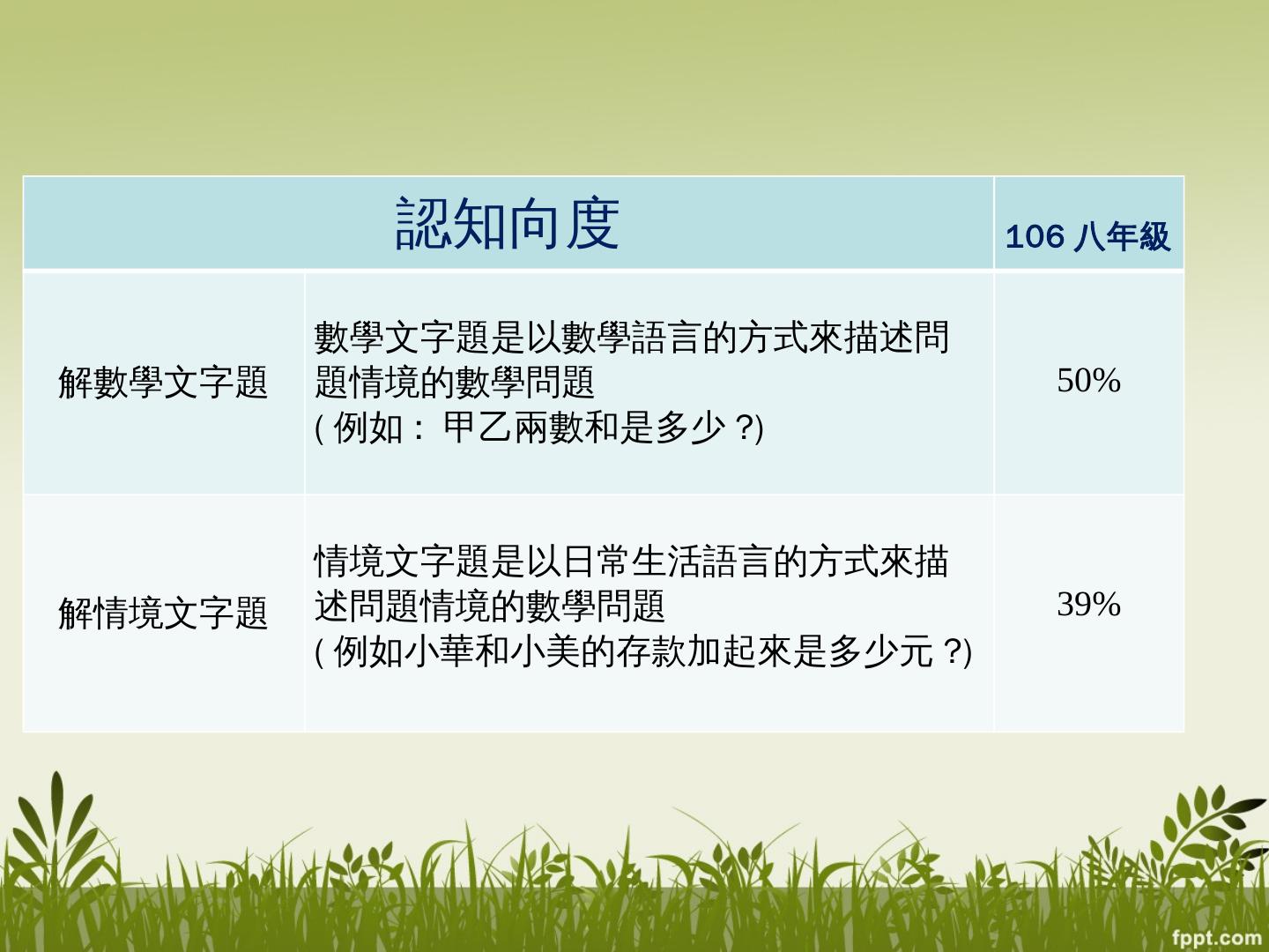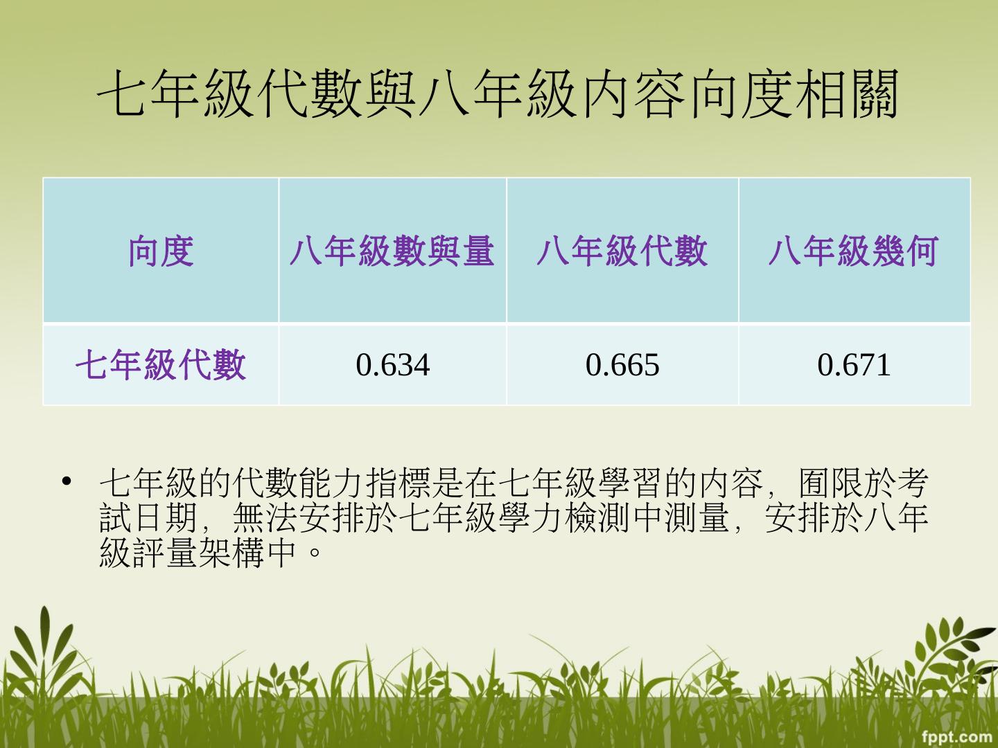 7-n-08能理解數線,數線上兩點的距離公式,及能藉數線上數的位置驗證數的大小關係。 52% ... 7-a-01能熟練符號的意義,及其代數運算。 49%. 7-a-02能用符號算式 ...