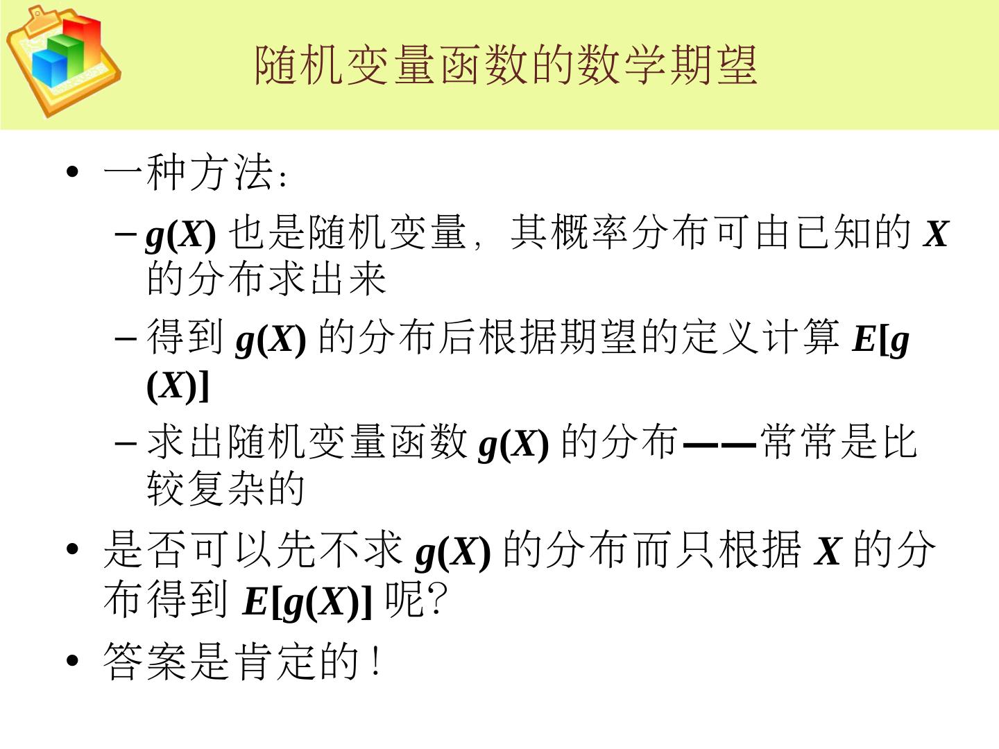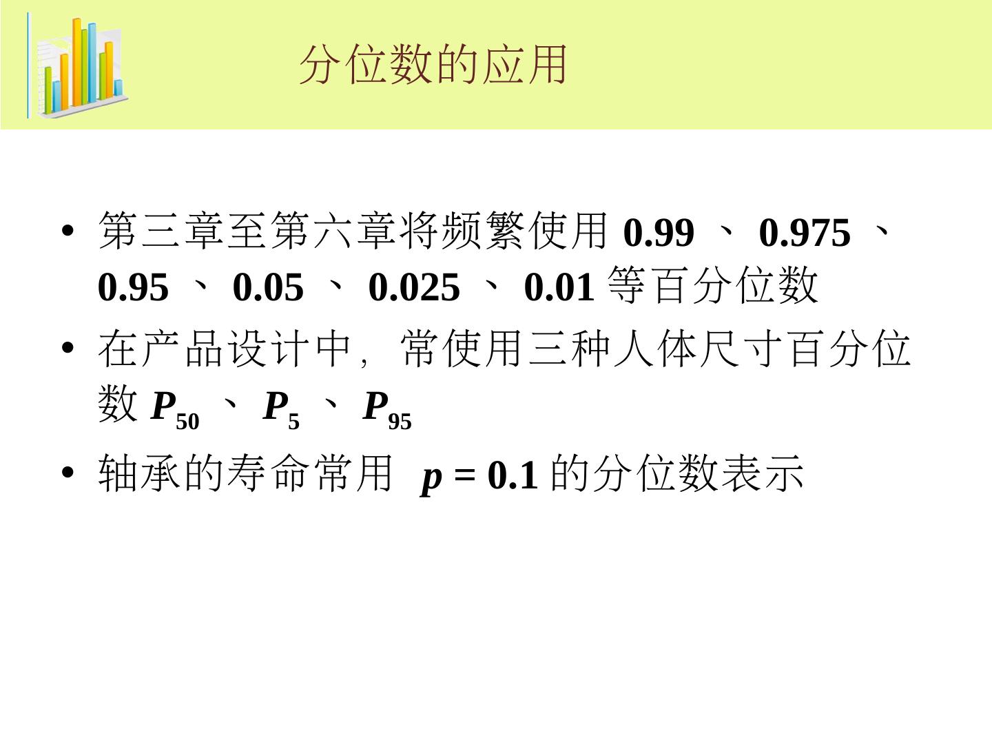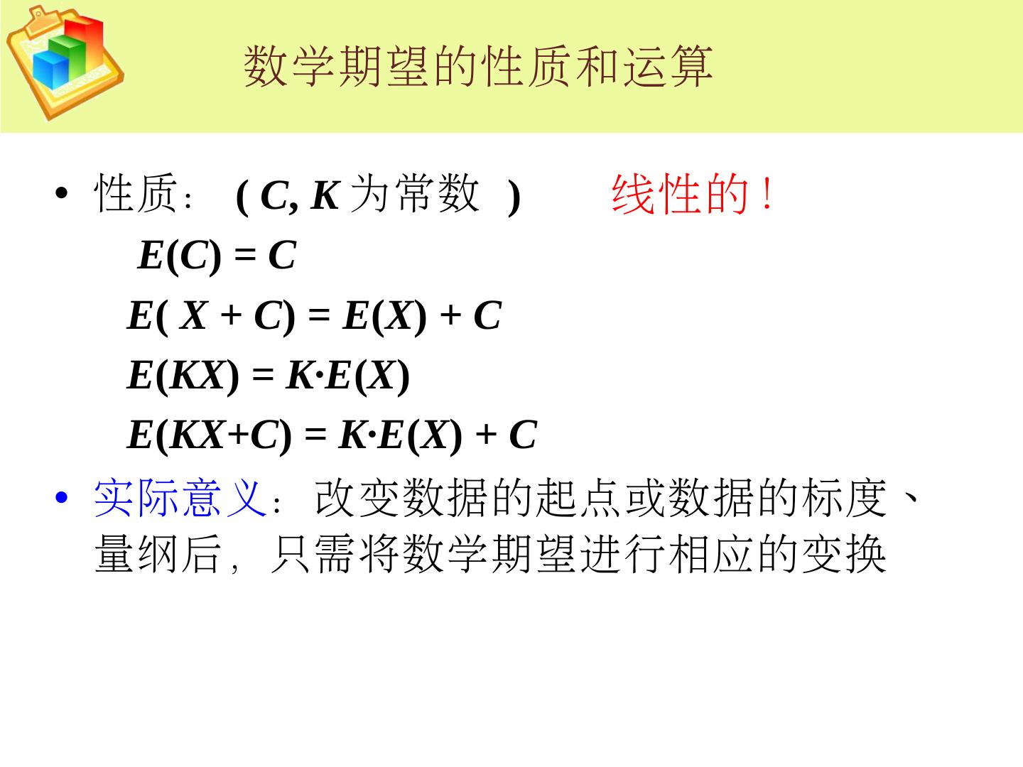 随机变量的可能值按其相应概率的加权平均数——随机变量总体的数学期望 .... 的近似,并可导出其它重要分布; 第三章有关“统计推断”的大部分内容是基于正态分布的.