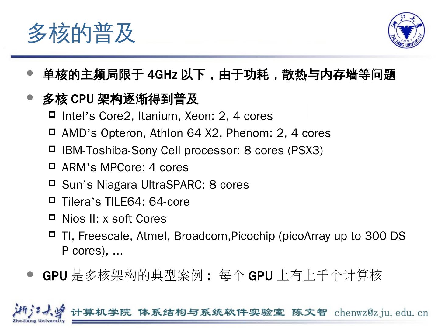 NVidia Fermi体系结构 ... IBM-Toshiba-Sony Cell processor: 8 cores (PSX3); ARM's MPCore: 4 cores; Sun's Niagara UltraSPARC: 8 cores ... GPU 体系架构.