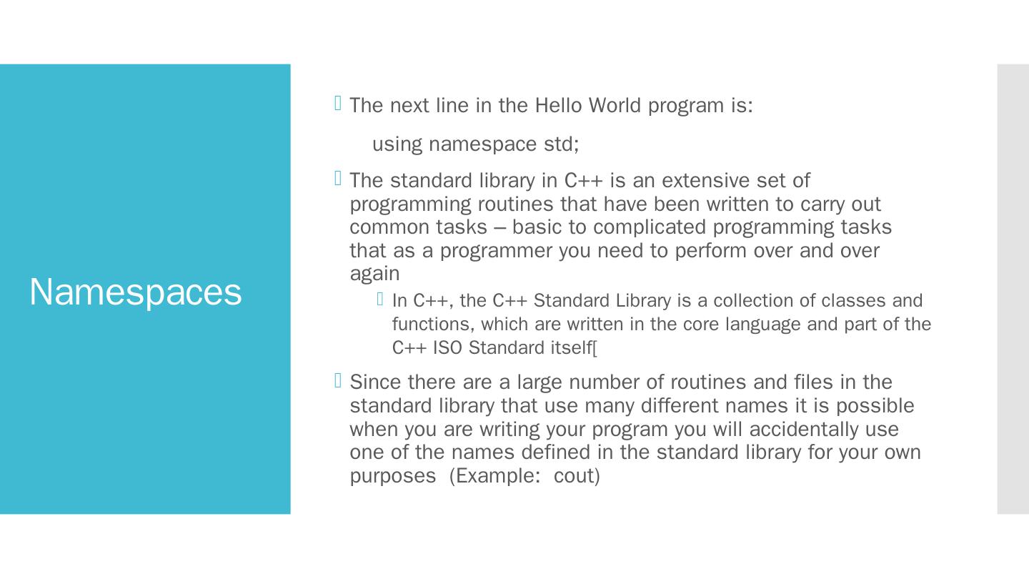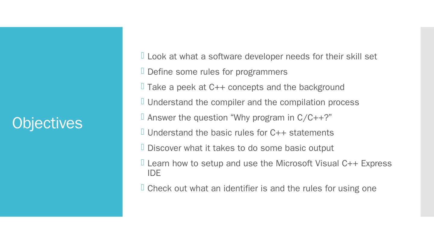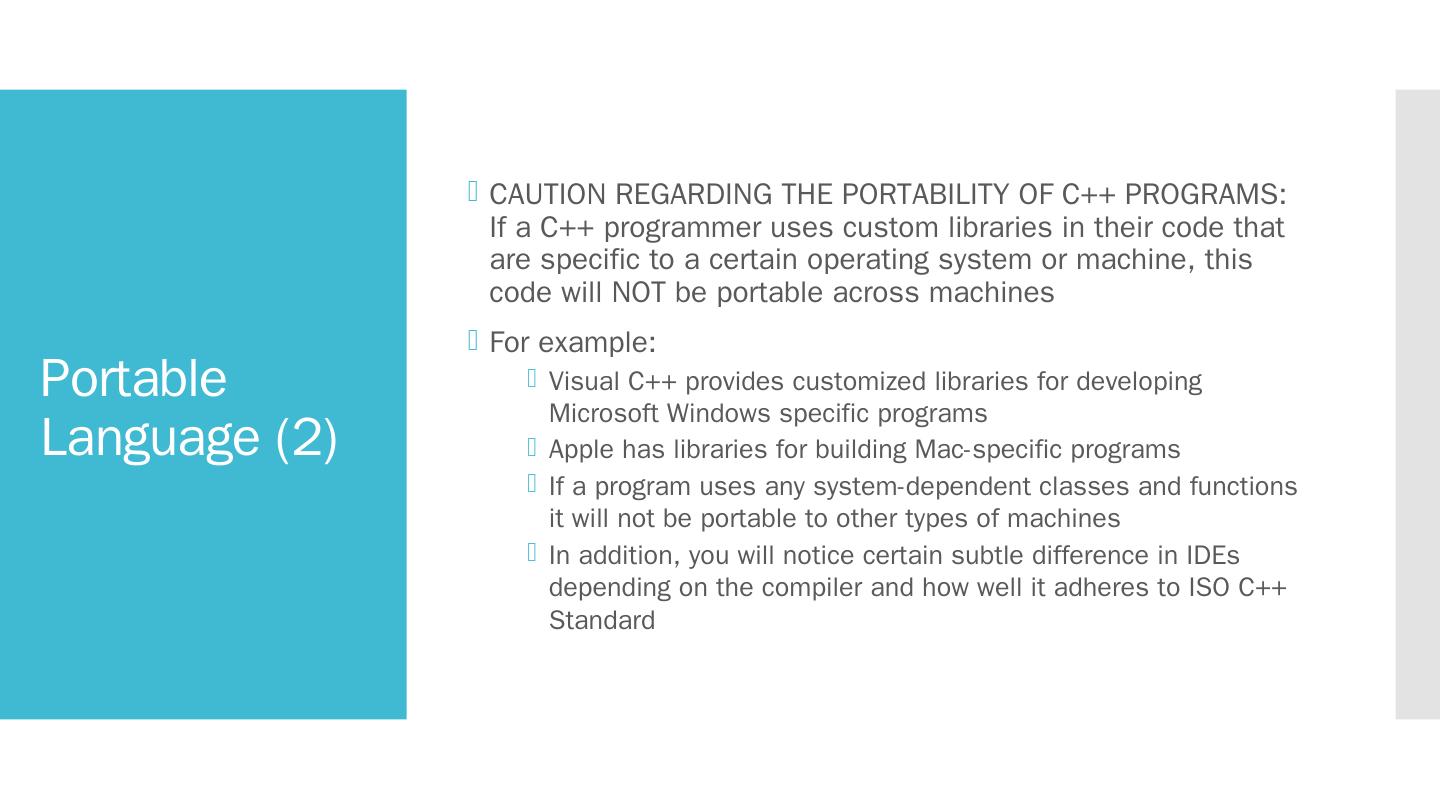 Think of the ISO as the governing laws for C/C++; These laws dictate the correct form of C/C++ statements and how aspects of the language must work.