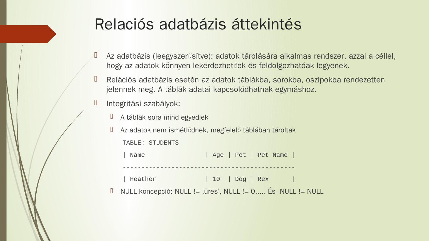 JDBC áttekintés