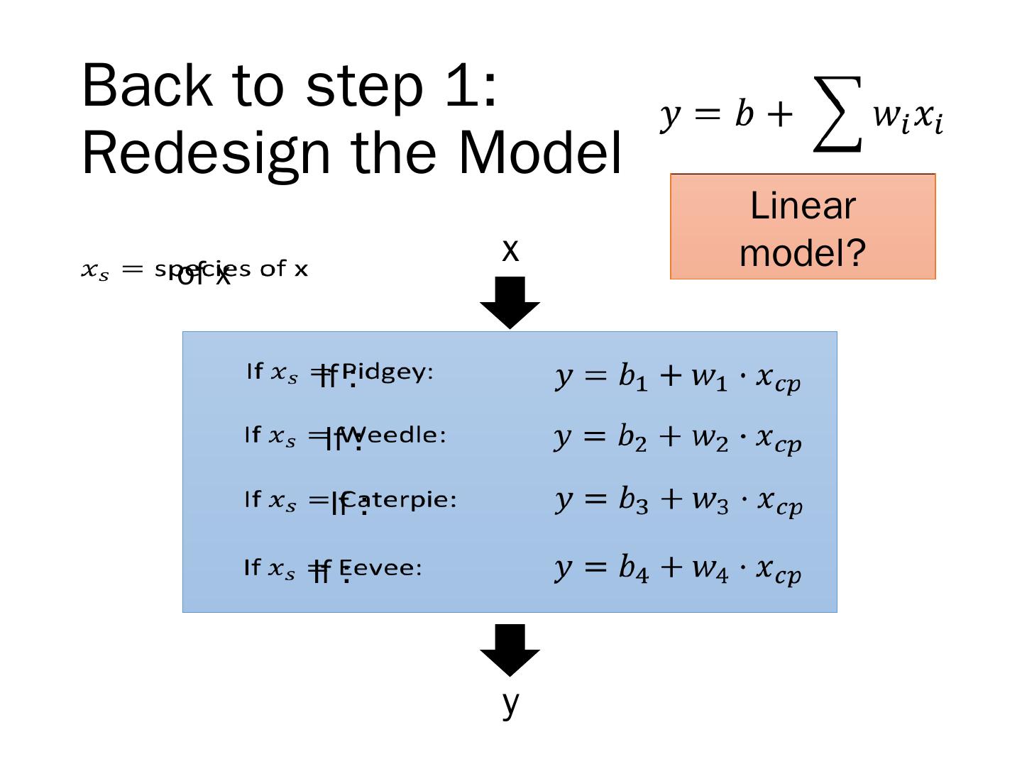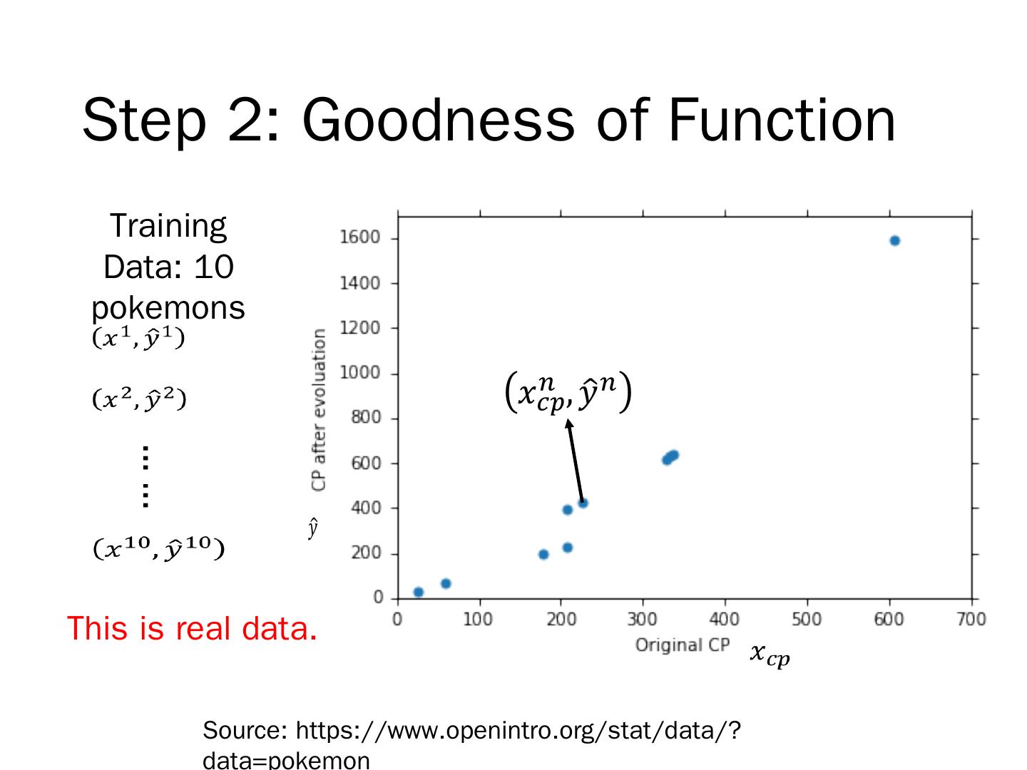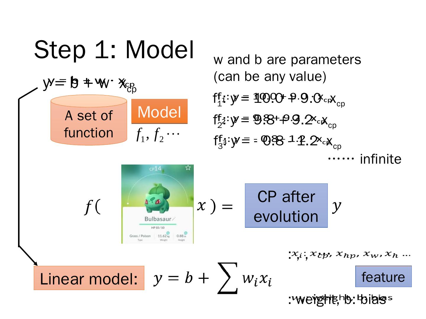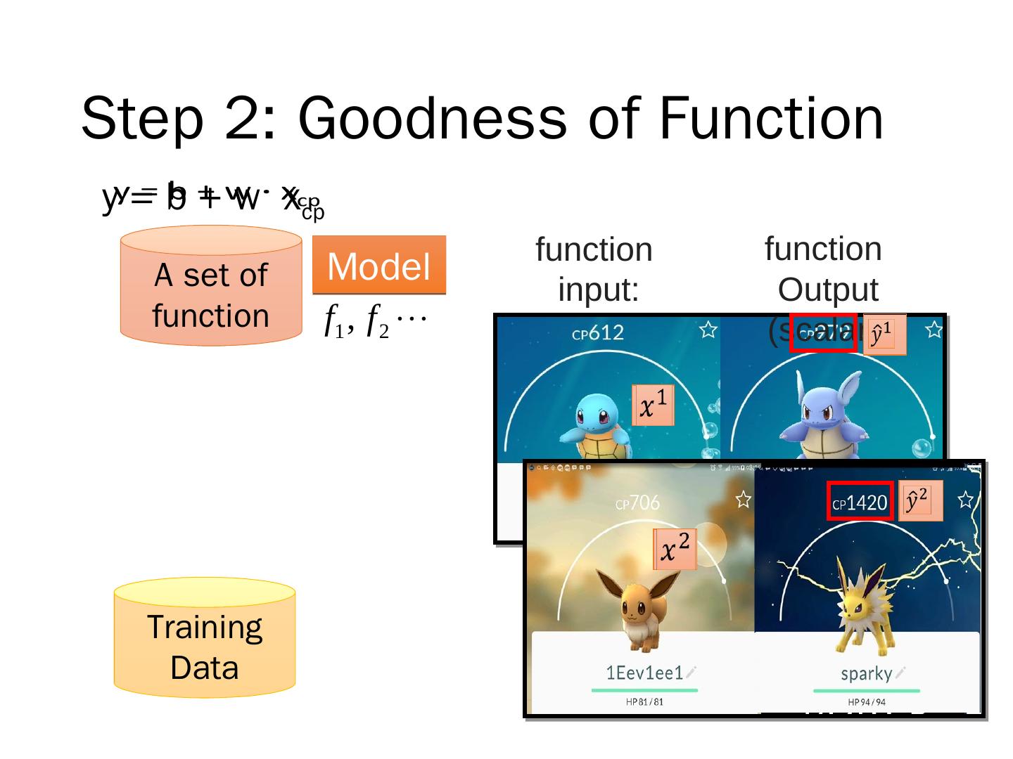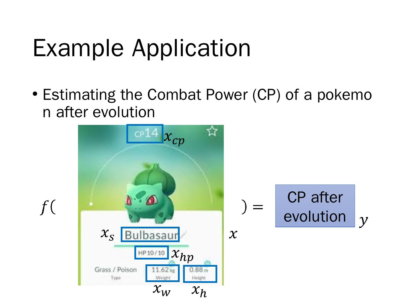 Estimating the Combat Power (CP) of a pokemon after evolution. CP after evolution. Step 1: Model. A set of function. Model. CP after evolution. Linear model:.