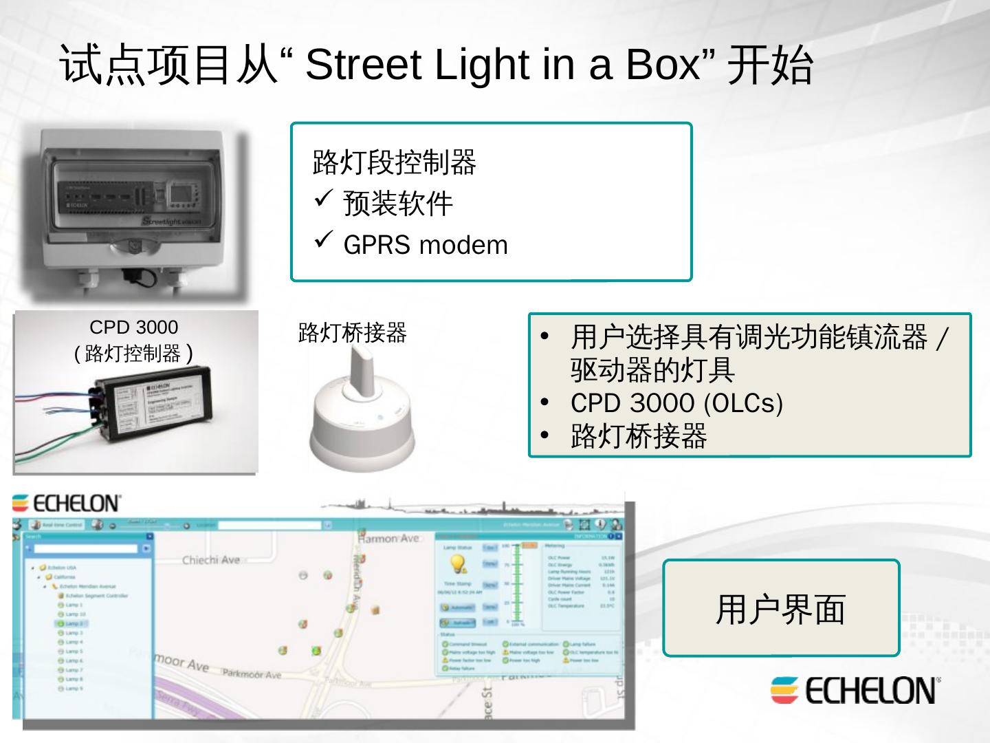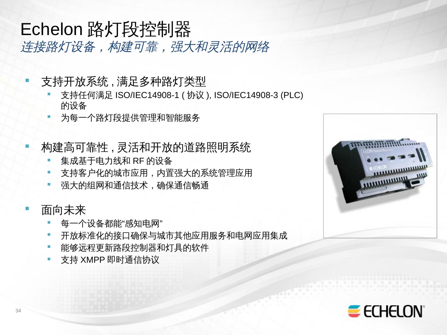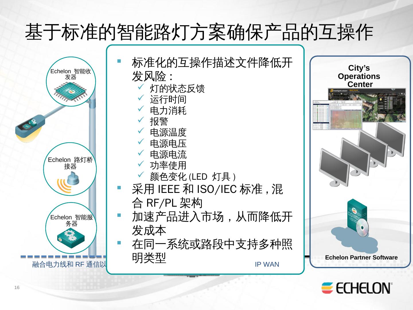 面向未来. 每一个设备都能“感知电网”; 开放标准化的接口确保与城市其他应用服务和电网应用集成; 能够远程更新路段控制器和灯具的软件; 支持XMPP即时通信协议.
