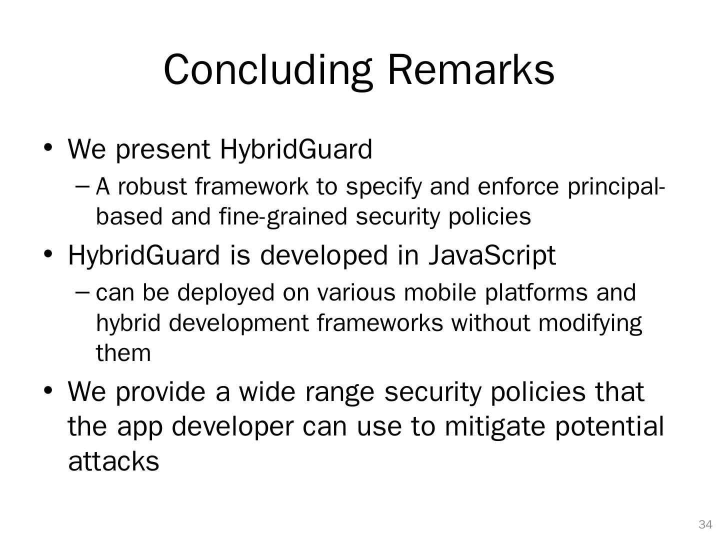 1 . Phu H. Phung University of Dayton Abhinav Mohanty , Rahul Rachapalli and Meera Sridhar University of NC at Charlotte MOBILE SECURITY TECHNOLOGIES (MOST) 2017 Thursday , May 25, 2017 The Fairmont Hotel, San Jose, CA HybridGuard : A Principal-based Permission and Fine-Grained Policy Enforcement Framework for Web-based Mobile Applications