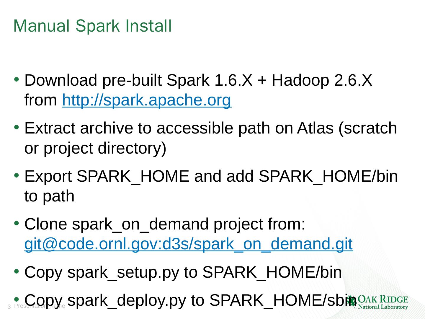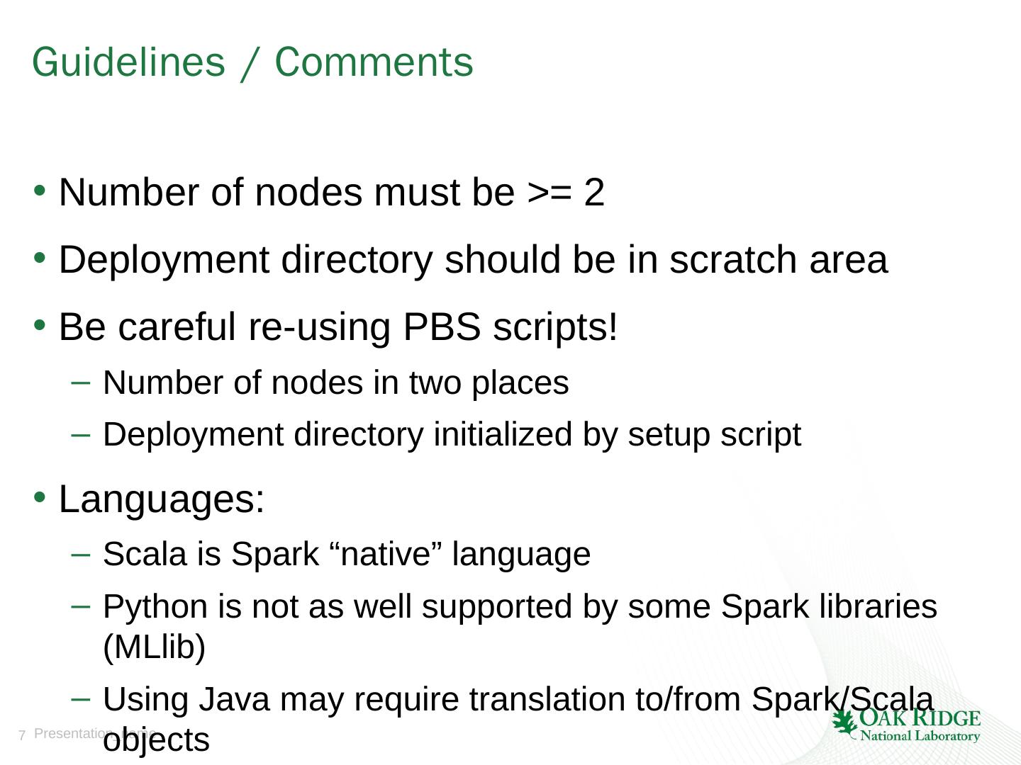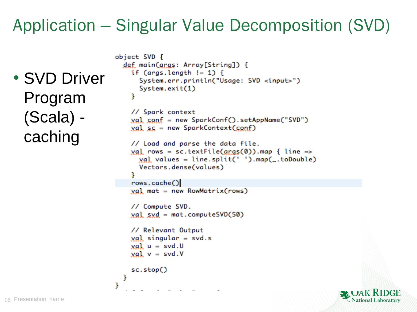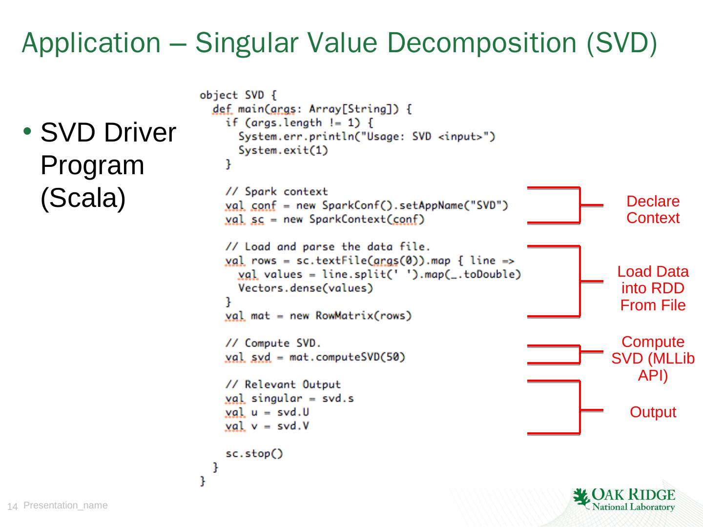 Spark-streaming; GraphX; MLLib. 10. Presentation_name. Initial Experiences and Benchmarks. When should we use Spark-on-Rhea? When not to use ...