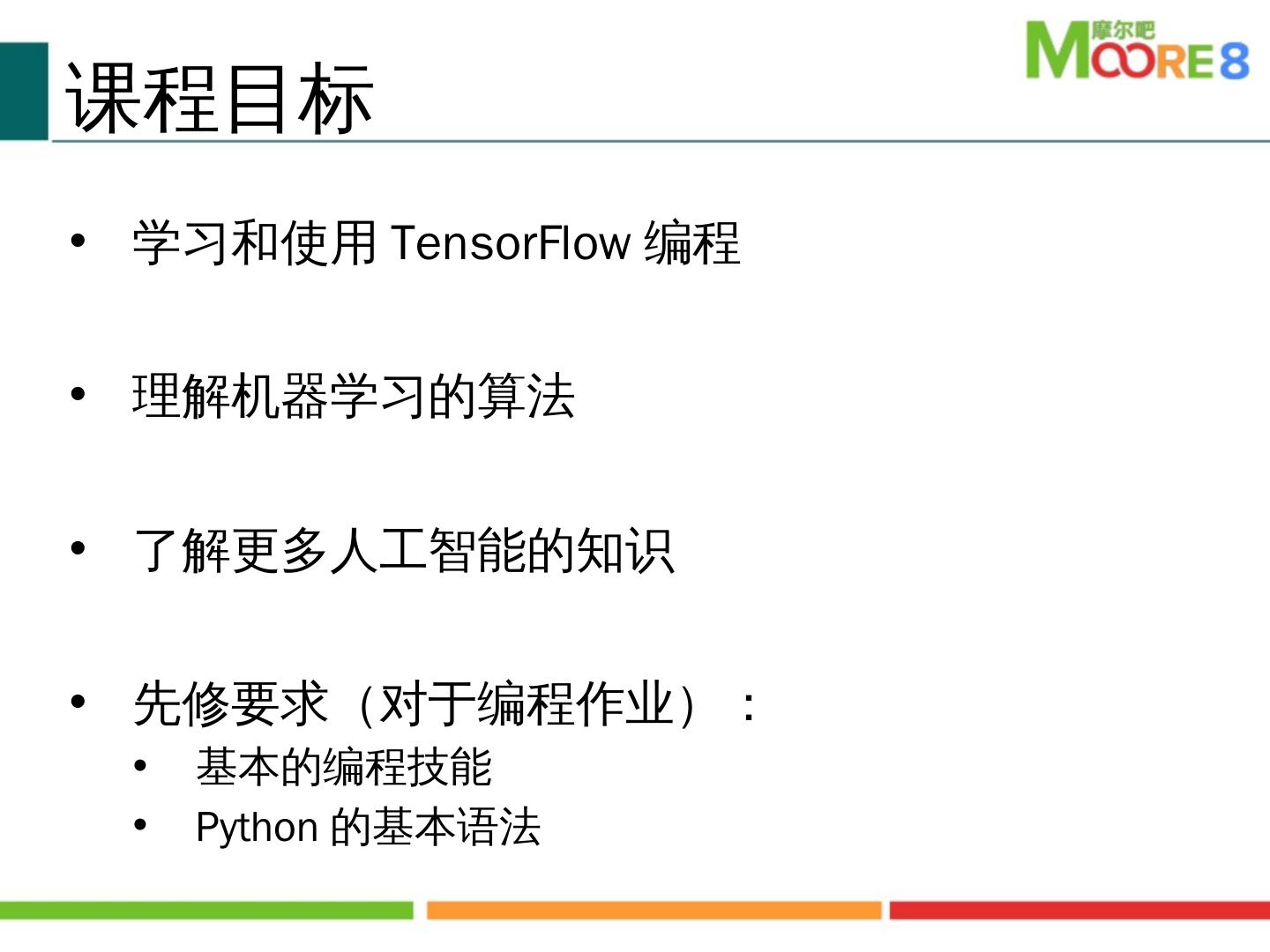 TensorFlow的结构与语法; 线性代数的知识回顾; 机器学习:线性回归和逻辑回归; 深度学习:; DNN(深度神经网络); CNN(卷积神经网络); RNN(循环神经网络); 优化 ...
