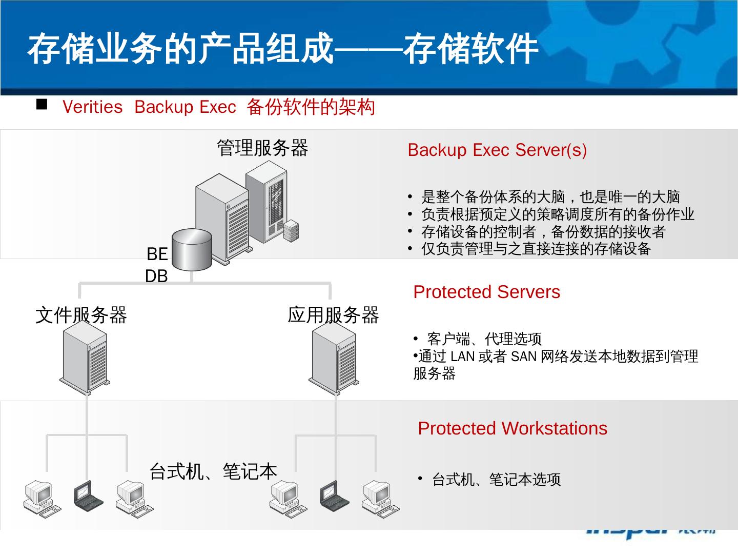 6 .存储硬件 存储软件 存储方案 外置存储系统 磁盘柜 磁盘阵列 NAS 设备 存储服务器 磁带库 存储连接设备 光纤 HBA 卡 SAS RAID 卡 InfiniBand 卡 光纤交换机 光纤连接线缆 存储内置软件 存储管理软件 数据镜像软件 数据复制软件 路径冗余软件 数据快照软件 存储应用方案 其他存储软件 双机高可用 存储虚拟化 数据备份容灾 数据归档 数据迁移 数据扩容方案 数据集中存储方案 双机高可用方案 双机双存储方案 数据备份方案 数据容灾方案 存储虚拟化方案 内容管理方案 存储安全方案 数据归档方案 数据迁移方案 存储的多样性