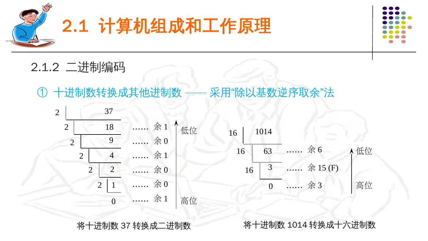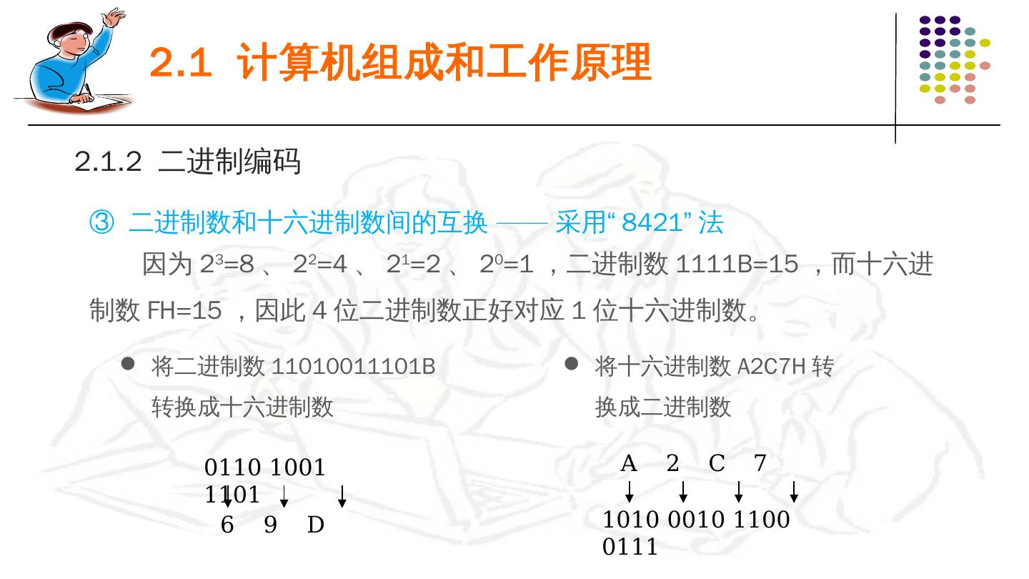 2.1 计算机组成和工作原理. 2.2 数据在计算机内的表示. 2.3 计算机系统的基本组成 .... 软件系统. 系统软件. 数据库管理系统. 操作系统(Windows、Linux、UNIX等).