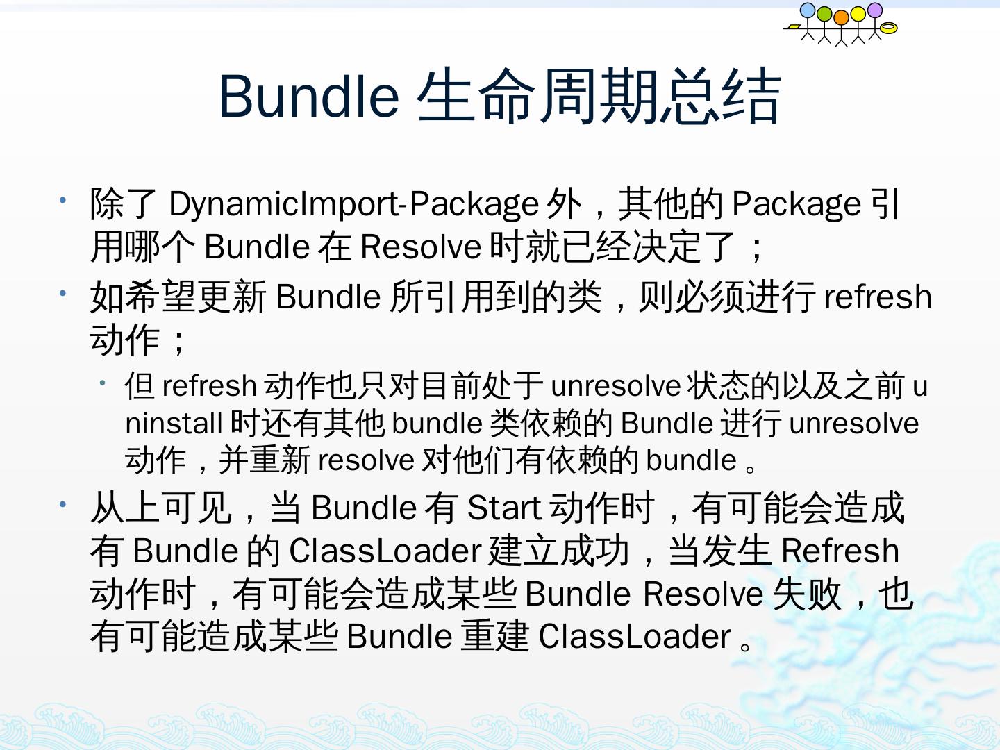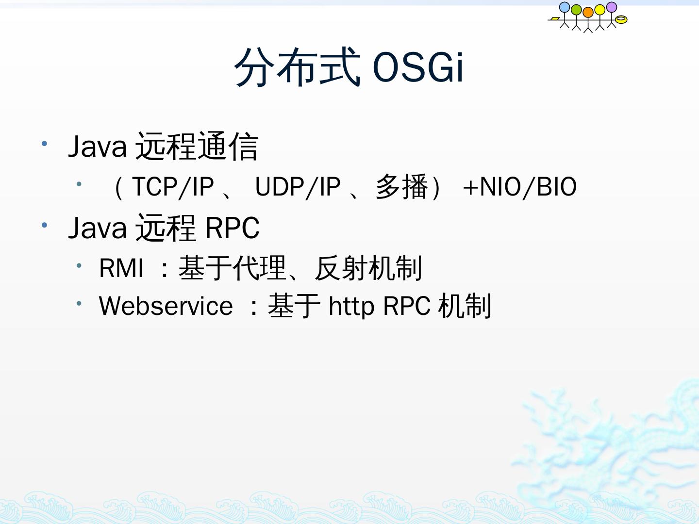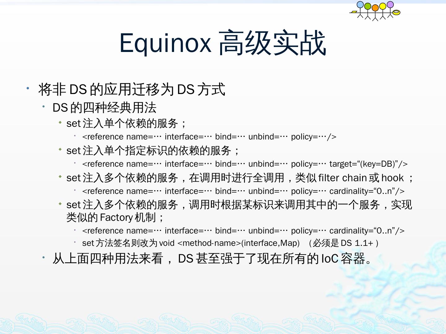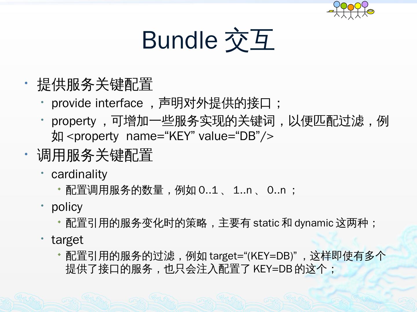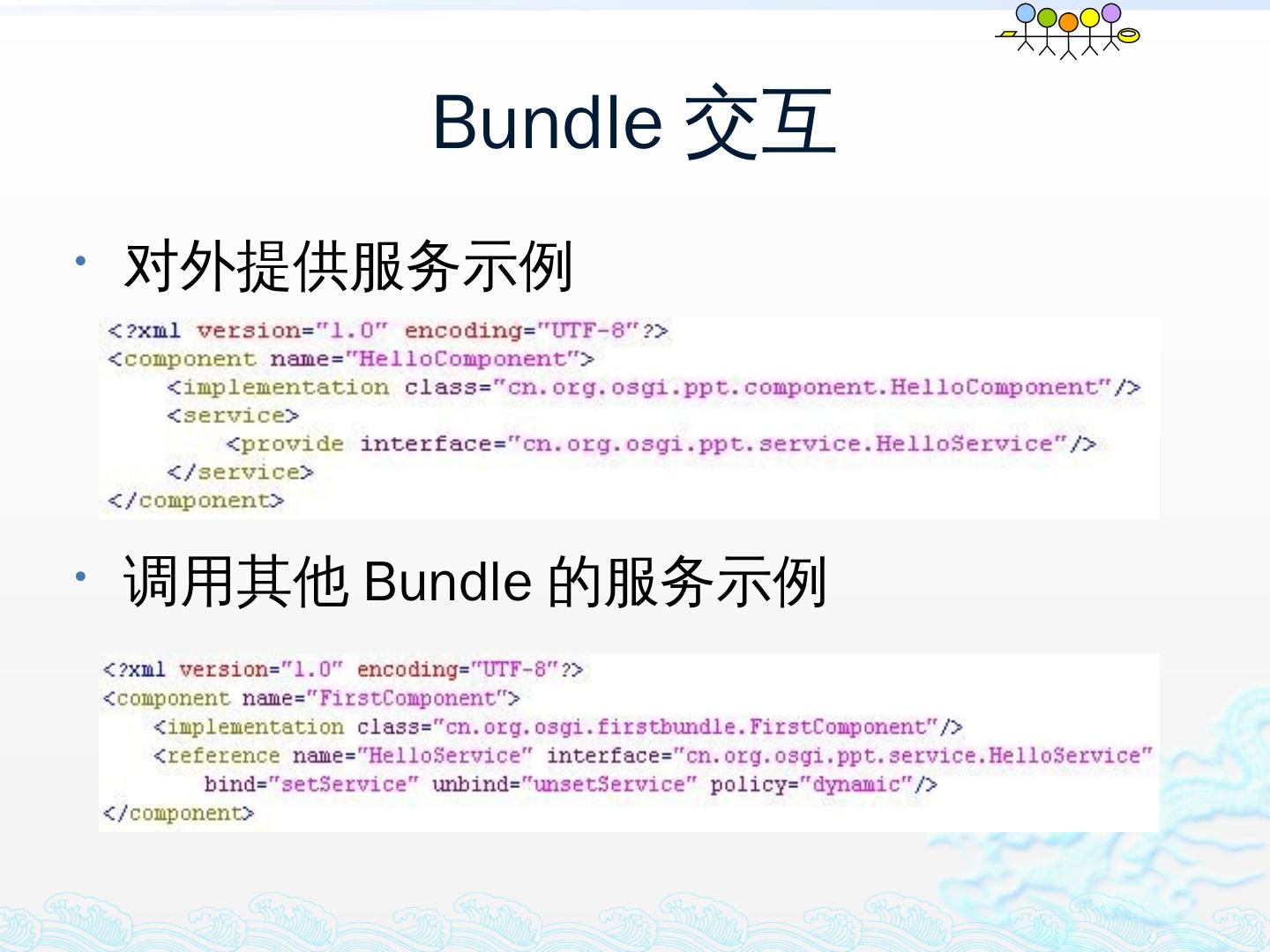 学习OSGi规范R4.1,掌握OSGi核心概念;; 学习OSGi R4实现框架的实现机制,以更好的使用这些框架;; 学习基于Equinox开发OSGi Based的应用;; 扩展Equinox,更 ...