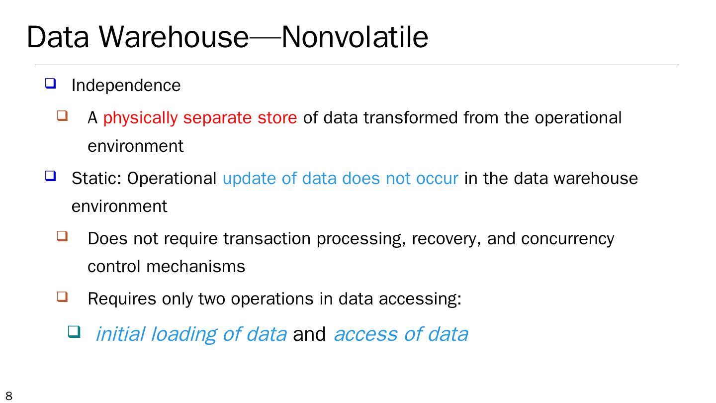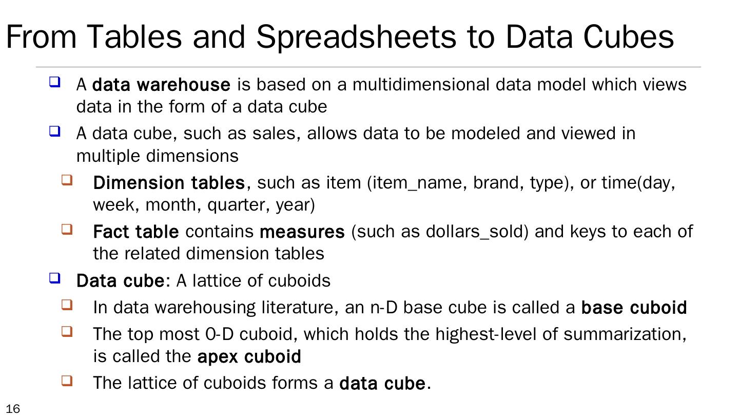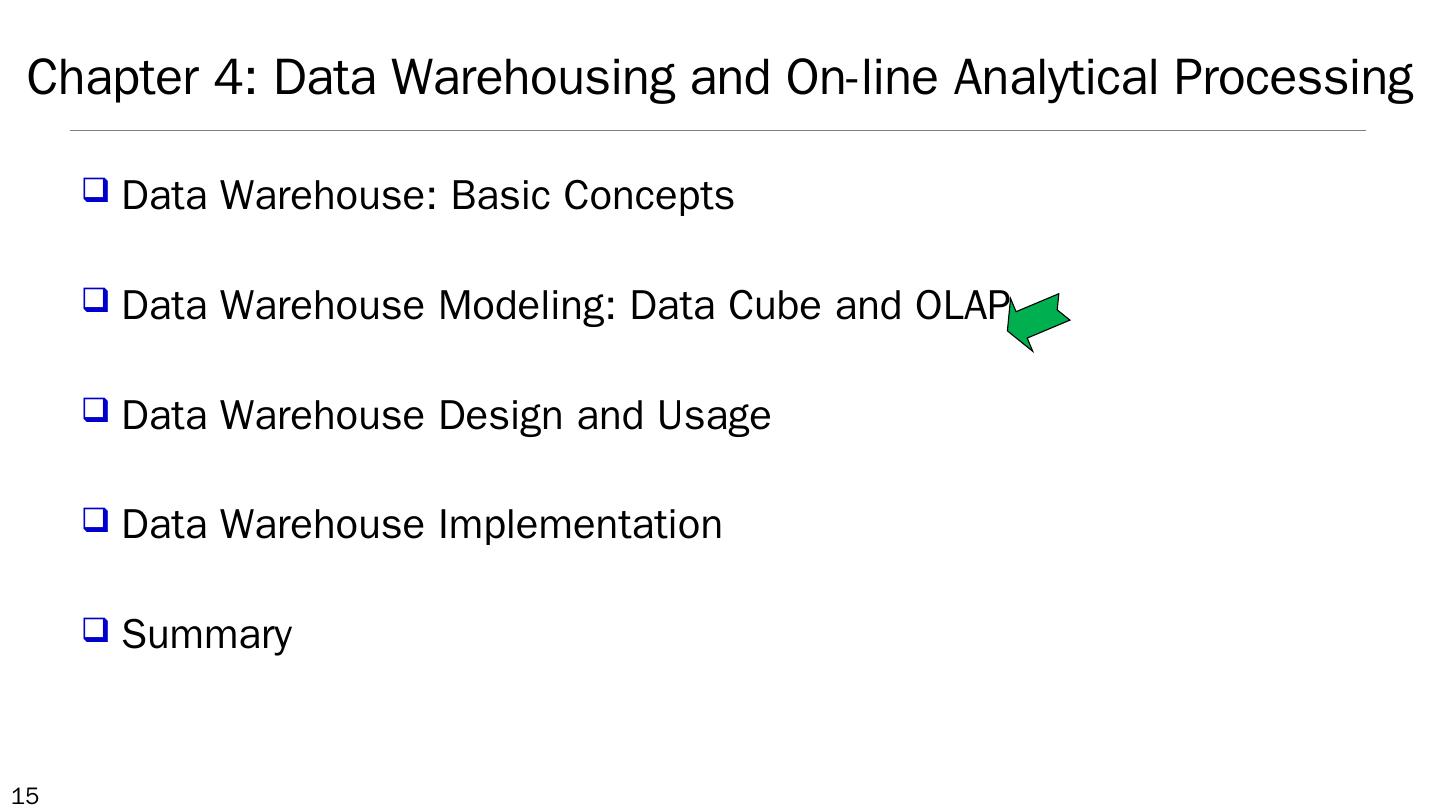 Data Warehouse: Basic Concepts; Data Warehouse Modeling: Data Cube and OLAP; Data Warehouse Design and Usage; Data Warehouse Implementation ...