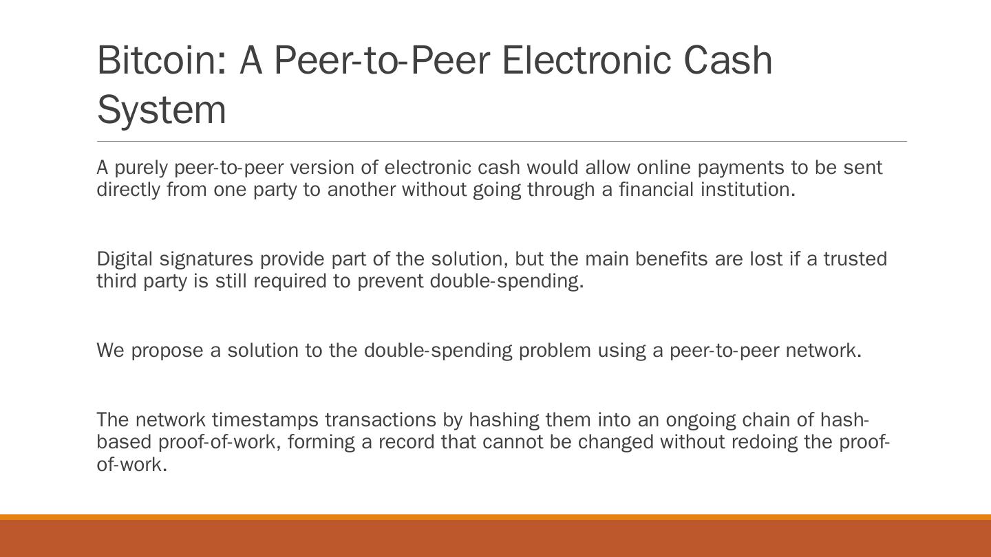 October 2008 Nakamoto published paper “Bitcoin: A Peer-to-Peer Electronic Cash System” ... The proof-of-work involves scanning for a nonce value that when hashed with a .... “We are birthing into existence systems which transcend us.