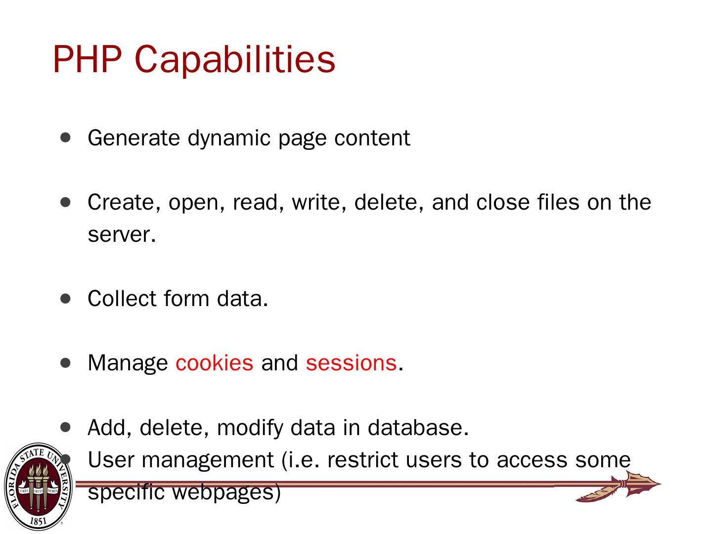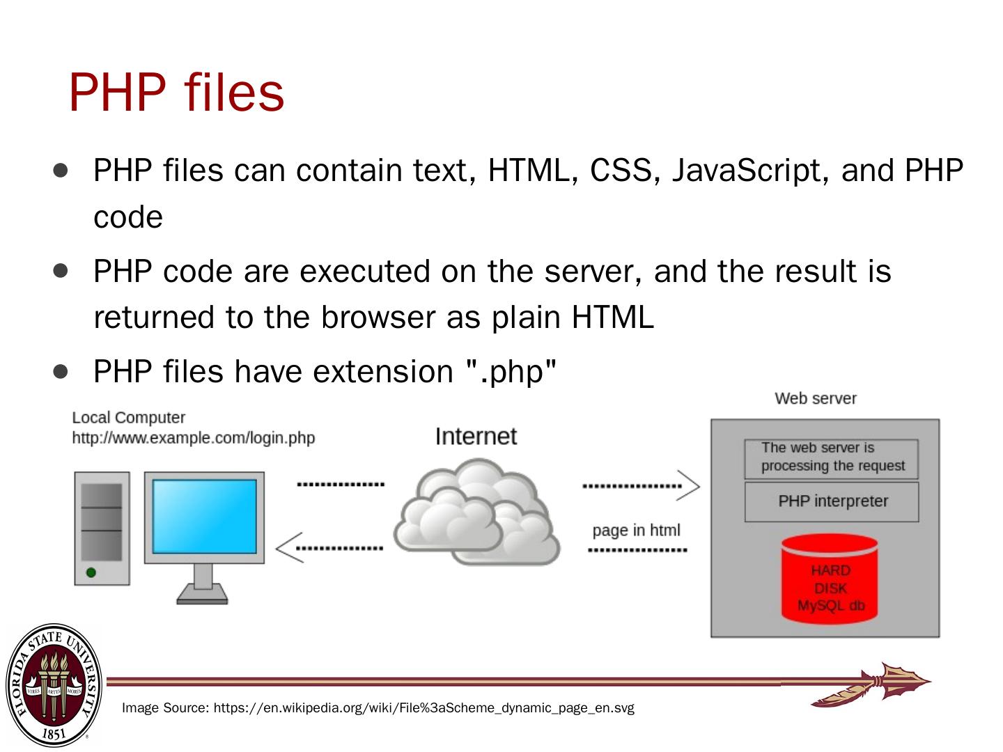 PHP files can contain text, HTML, CSS, JavaScript, and PHP code; PHP code are executed on the server, and the result is returned to the browser as plain HTML ...