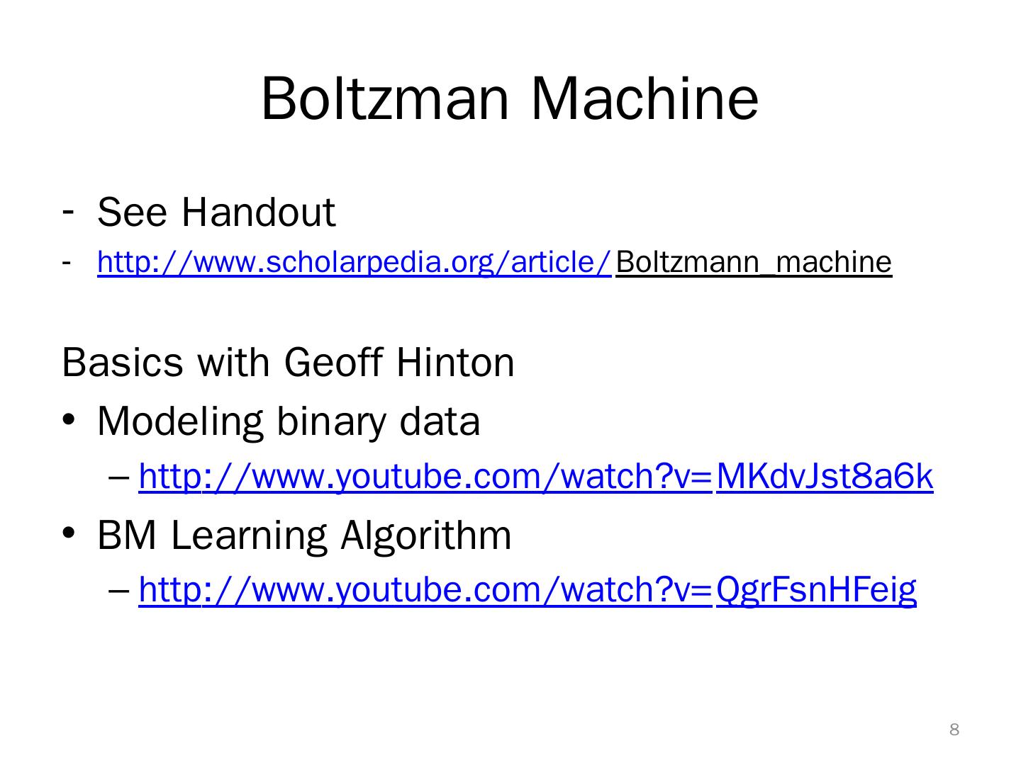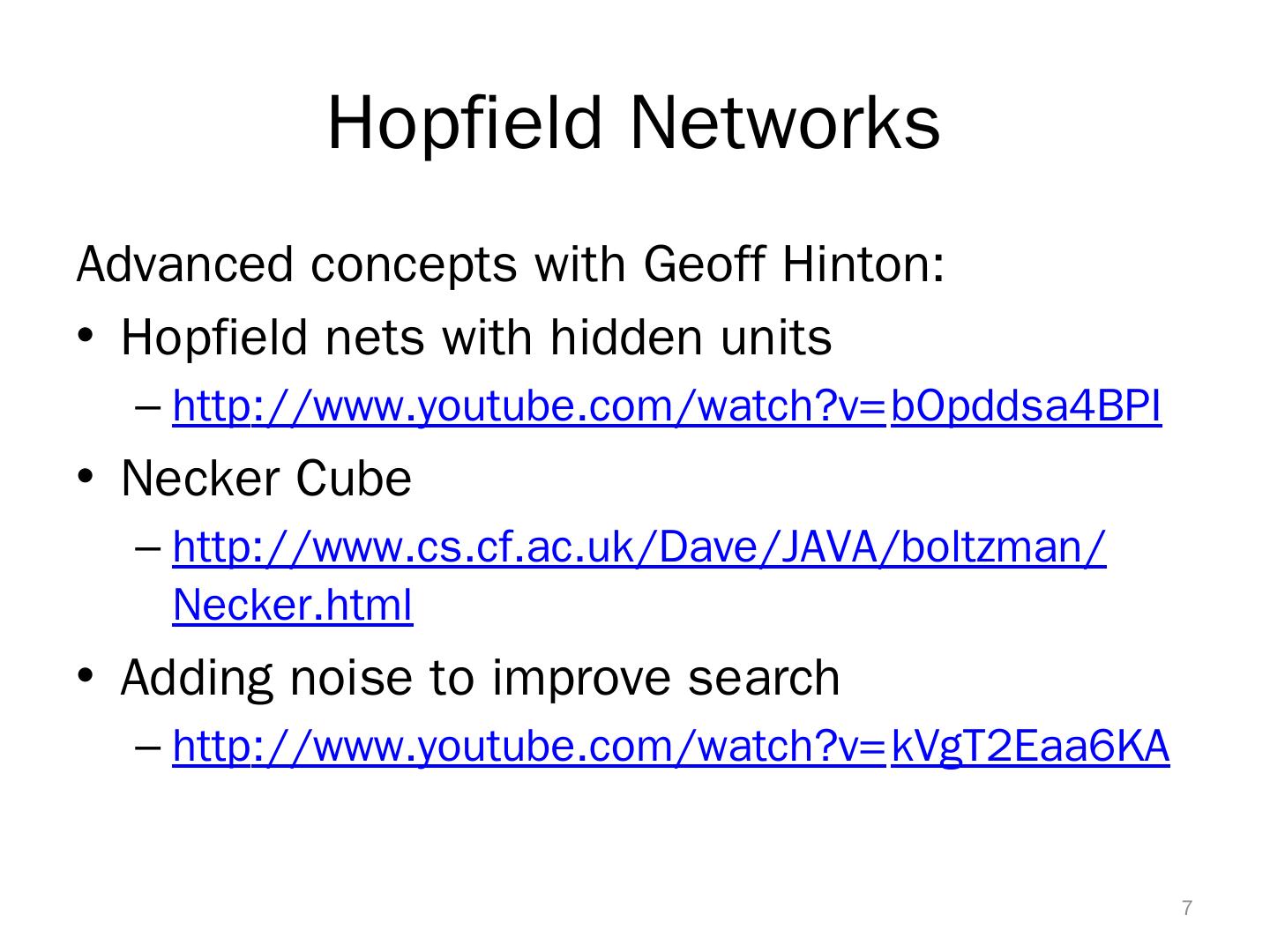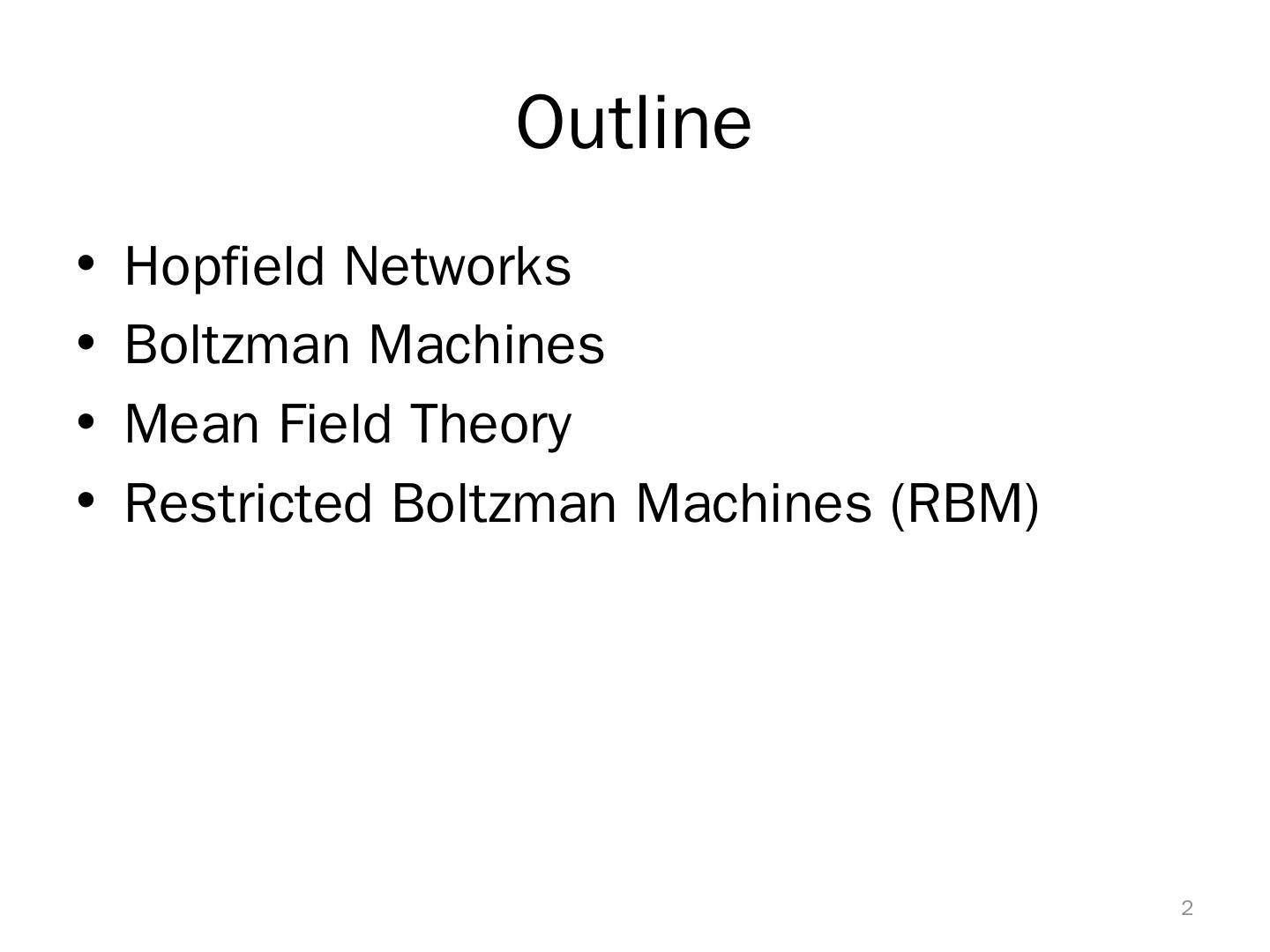 Hopfield Networks; Boltzman Machines; Mean Field Theory; Restricted Boltzman Machines (RBM). 2. Dynamic Neural Networks. See handout for image of ...