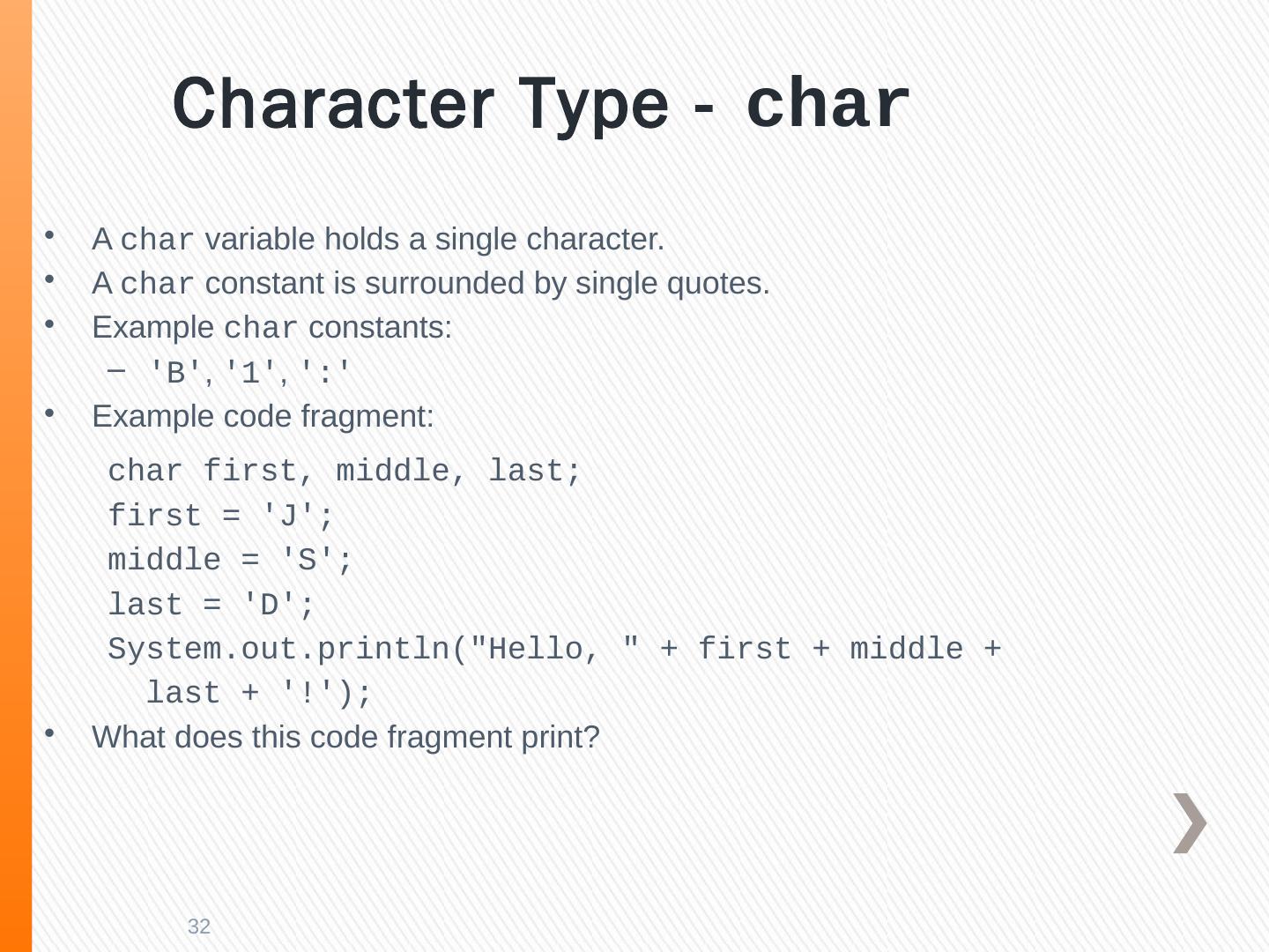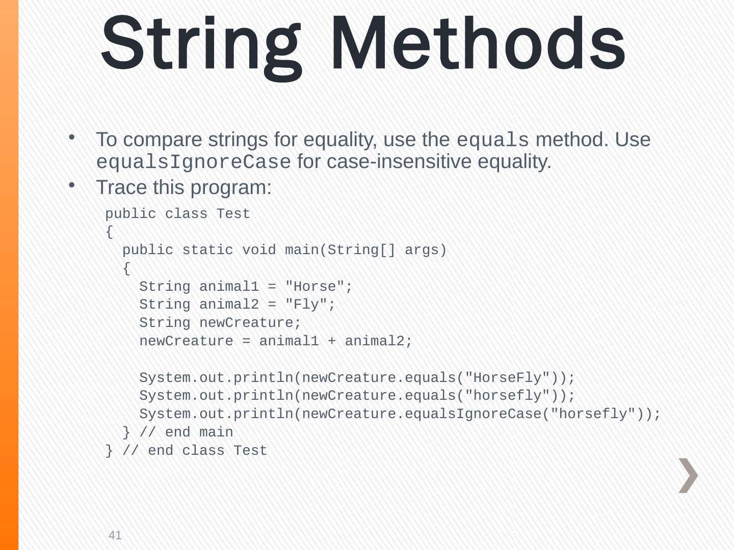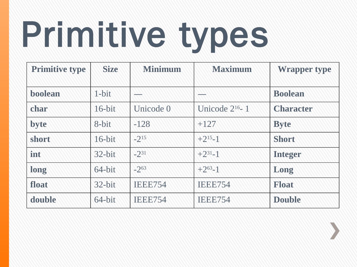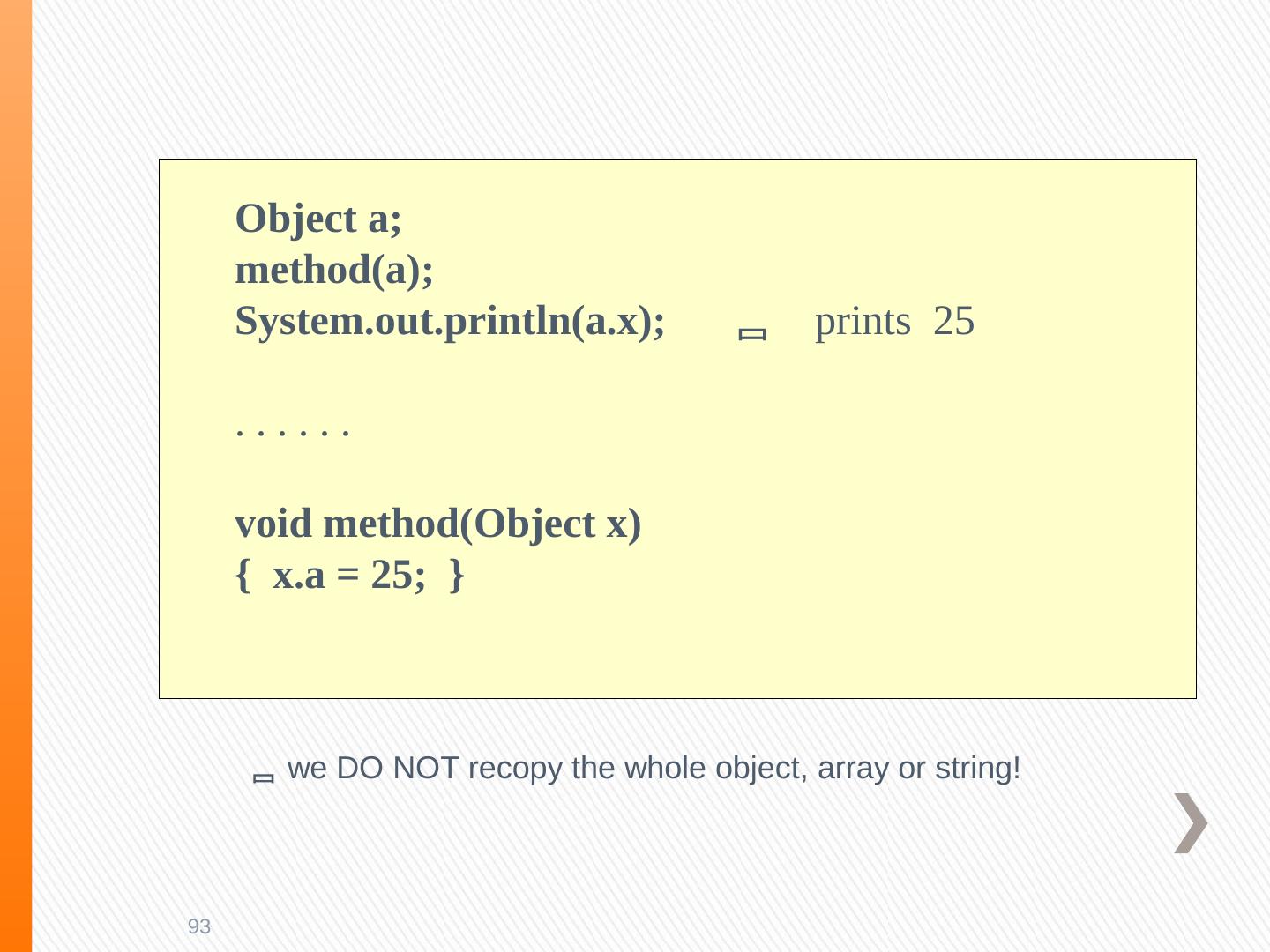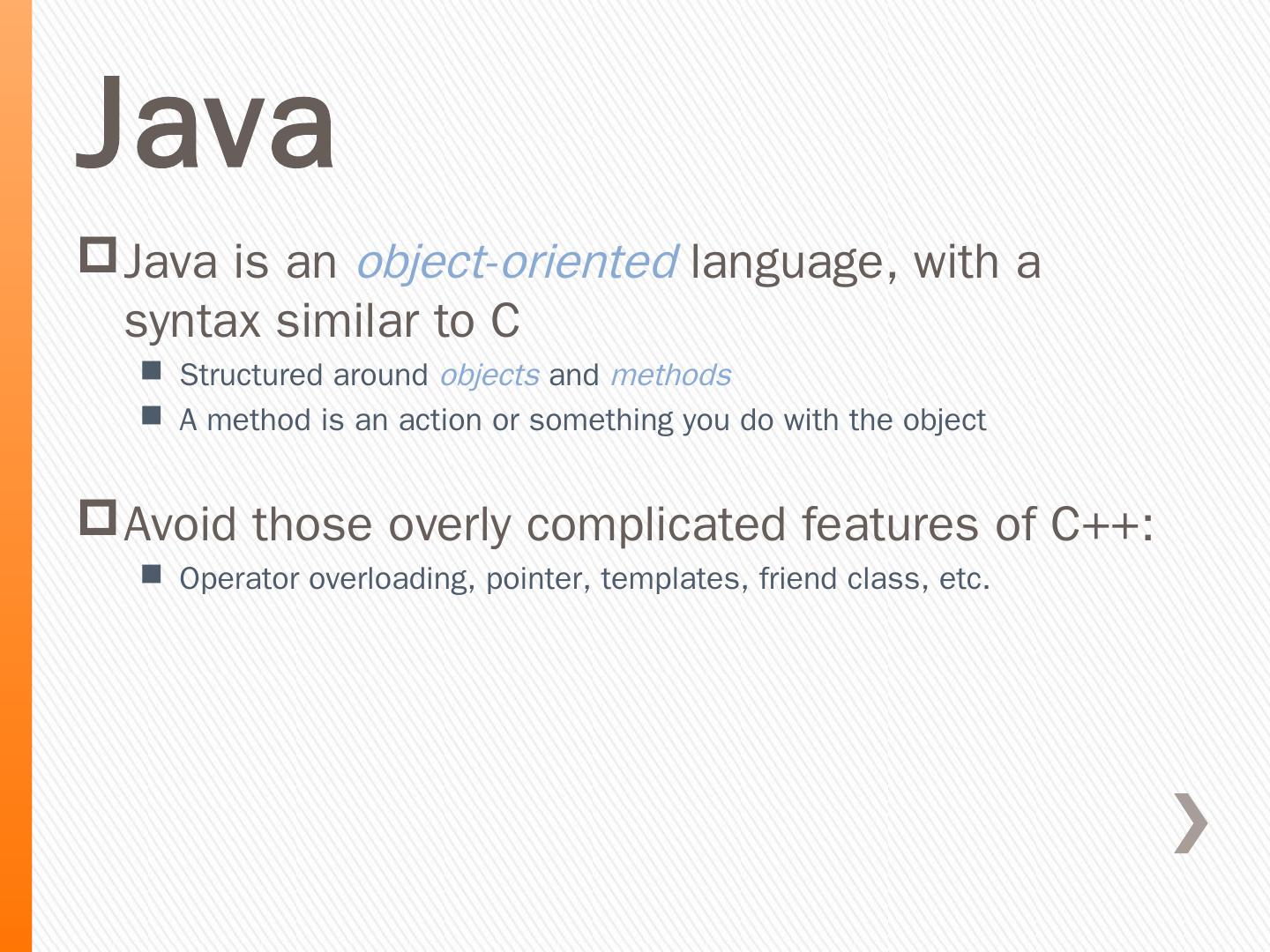 Our first Java program – HolaWorld.java */. public class HolaWorld {. //main(). public static void main ( String[] args ) {. System.out.println( ”Hola world!" ); }.