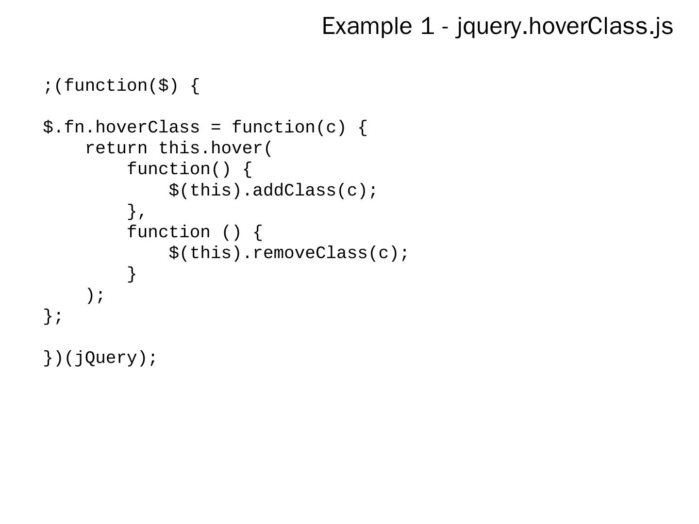jQuery Plugin Development. By Mike Alsup. What is a plugin? Why Write One? A way to extend the core library. A way to reuse code. A way to contribute!