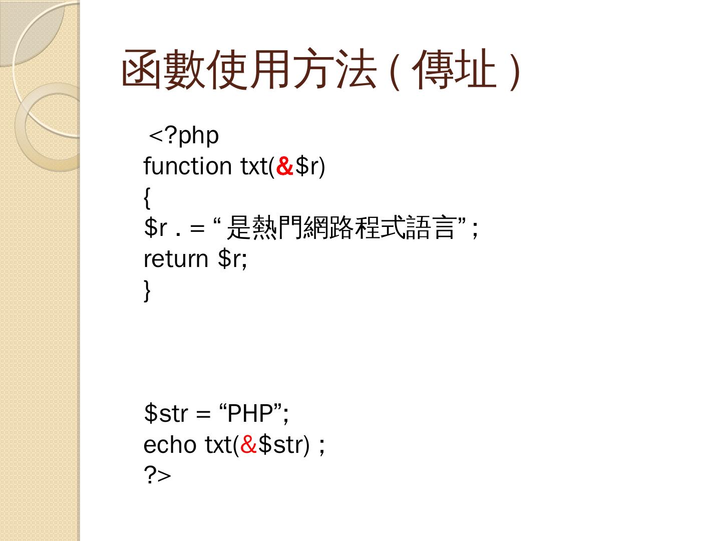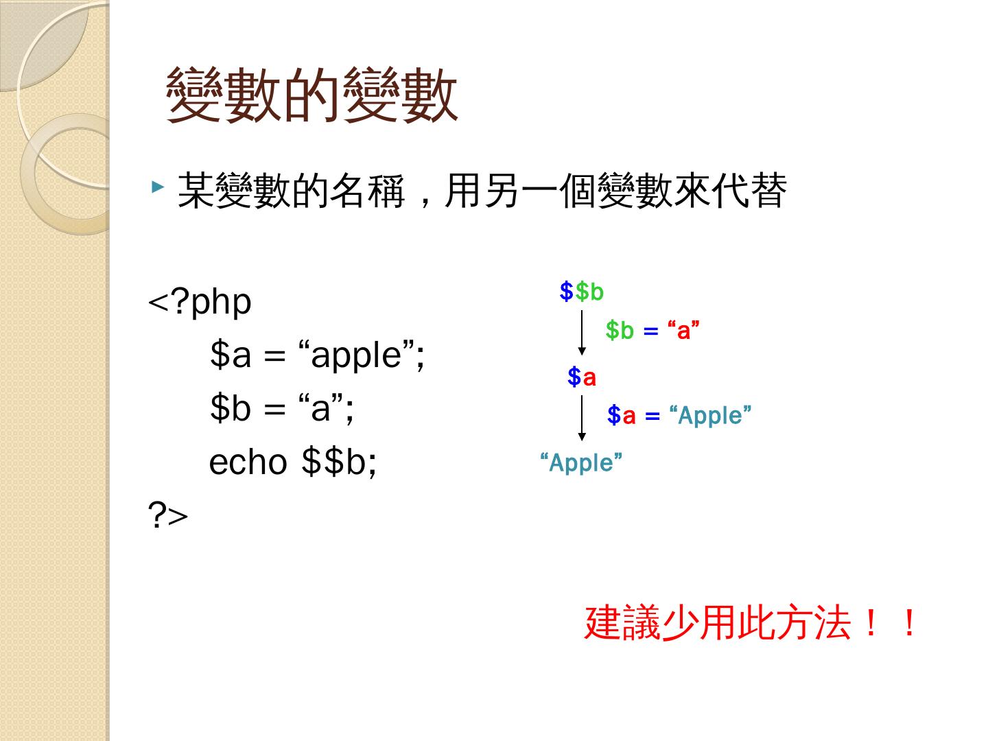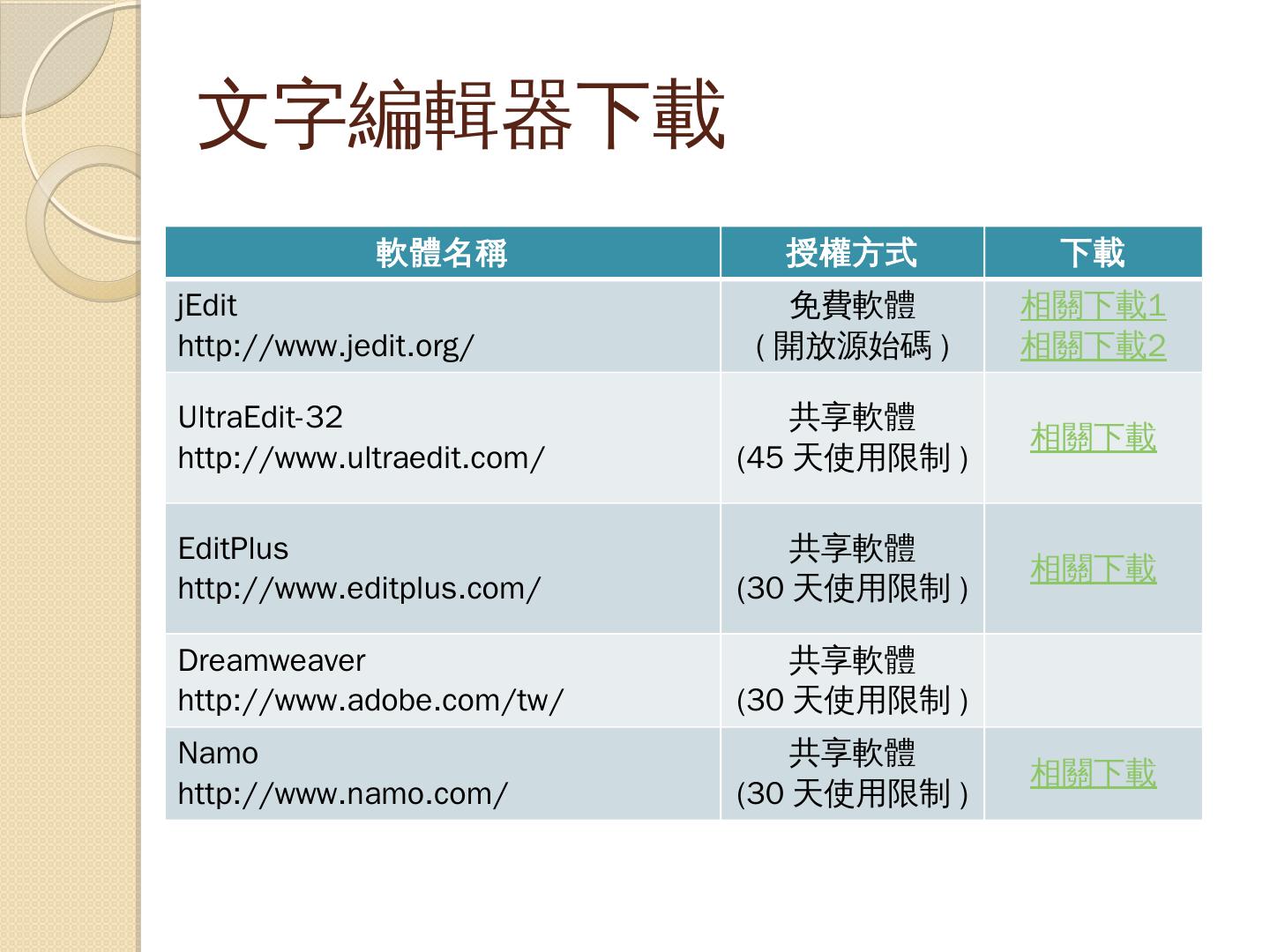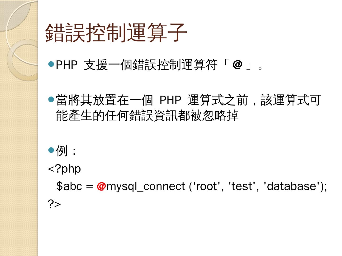 支援多種資料庫:PHP支援十餘種資料庫(如:MySQL、Oracle、SQL Server…等). 撰寫PHP. 只要能夠存成純文字檔的文字編輯器都可以做為PHP程式的編輯器( ...
