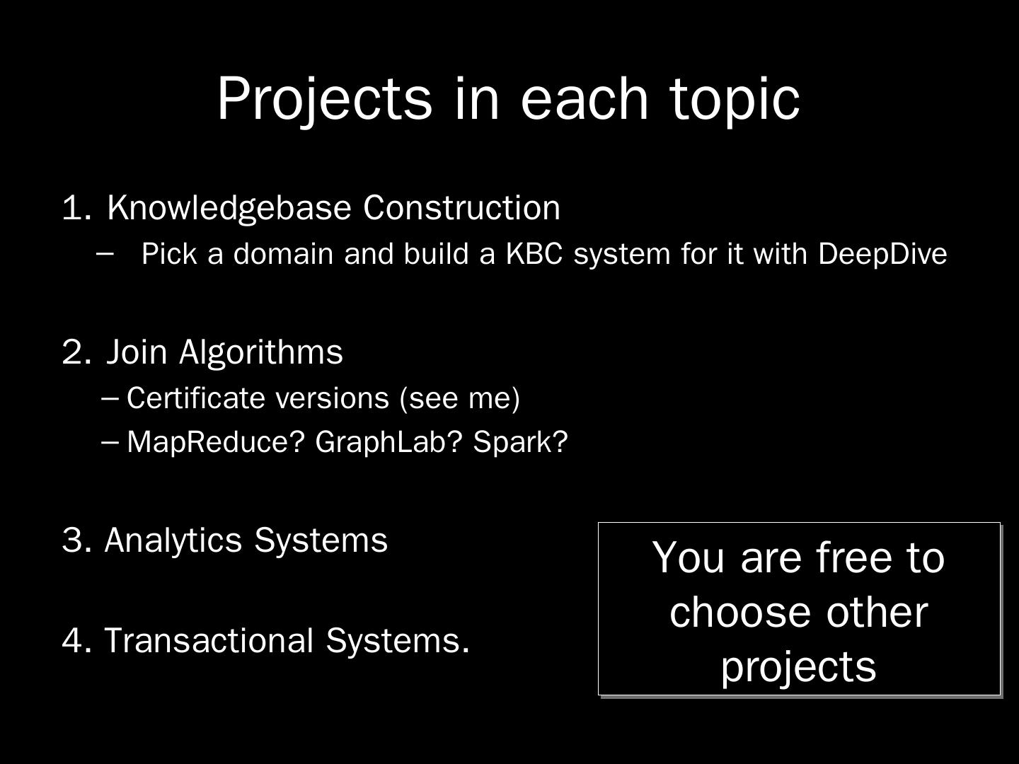 New stuff: Knowledge bases & Inference. Databases is a strange and beautiful area: Theory, Algorithms, Systems, & Applications. It's a bit scattered, and I love it.