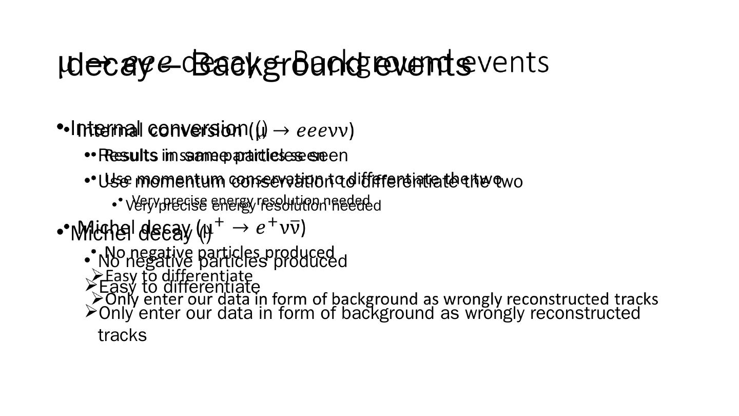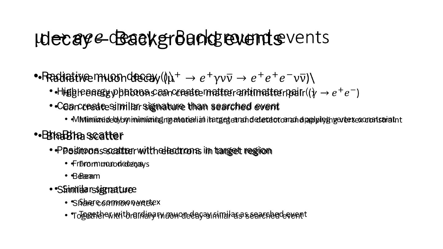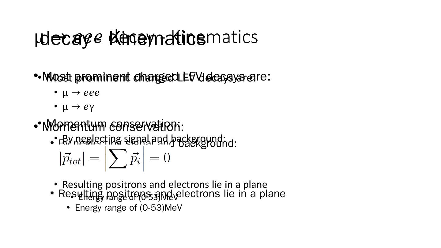 Physics beyond the SM. Neutrino Oscillation; New Physics. μ→eee decay. Backgrounds. Mu3e experiment. Setup; Data. Machine learning. NN, RNN; XGBoost.