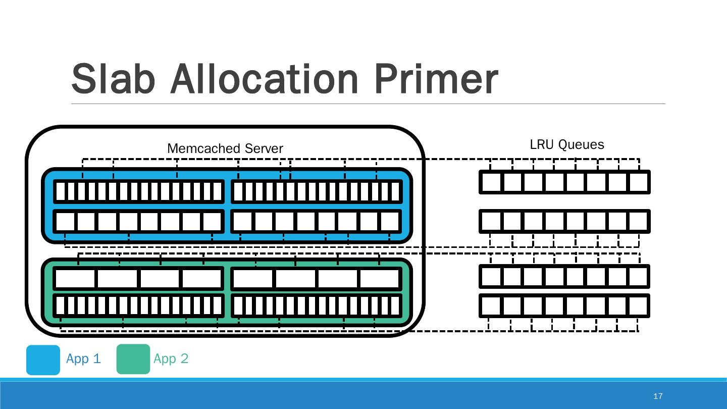 Memcached Server. App 1. App 2. Slab Allocation Primer. 16. Memcached Server. App 1. App 2. Memcached Server. Slab Allocation Primer. 17. LRU Queues.
