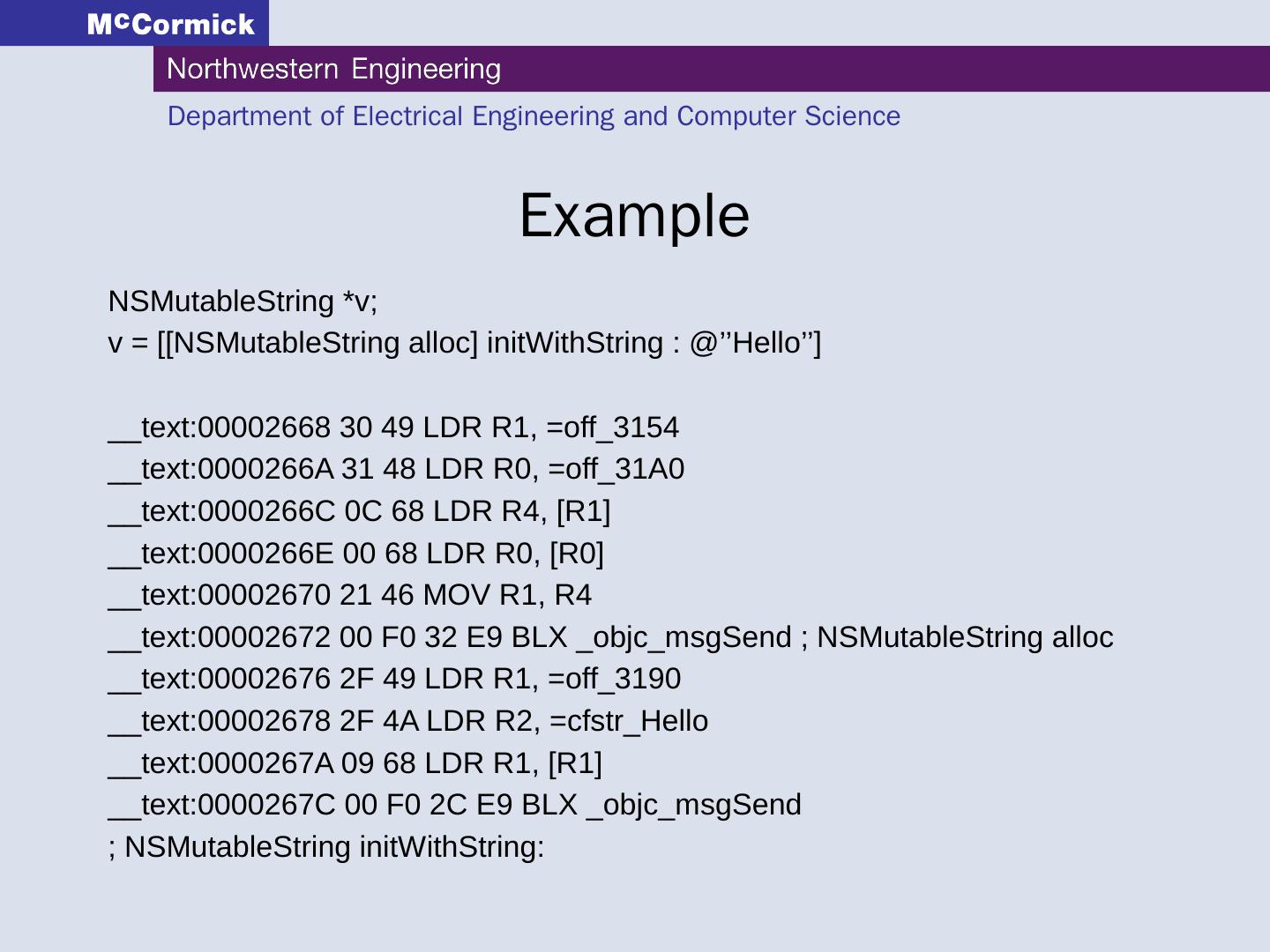 The PiOS System. Problems with Objective-C. Functions are usually object methods. Funneled through single dispatch (send message); Difficult to create CFG.